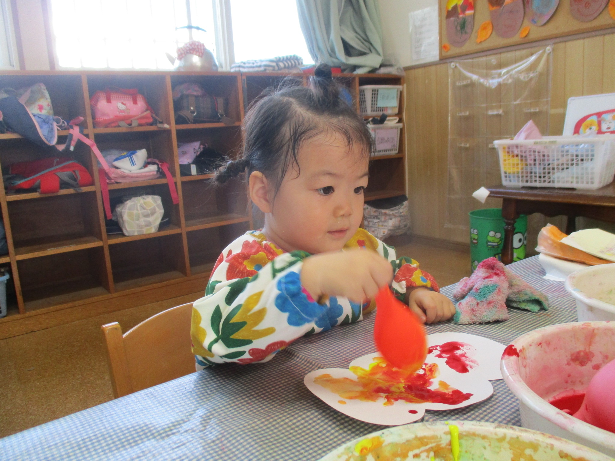 子どもたちは大胆にいろいろな色を使って完成させていました。