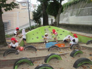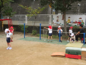 運動会も終えてみんなの大好きなサーキットを大西先生と楽しそうにする子どもたち!