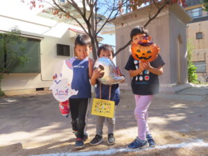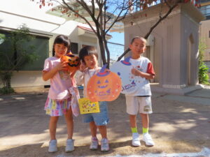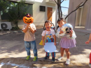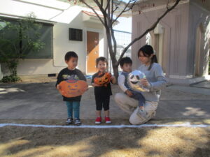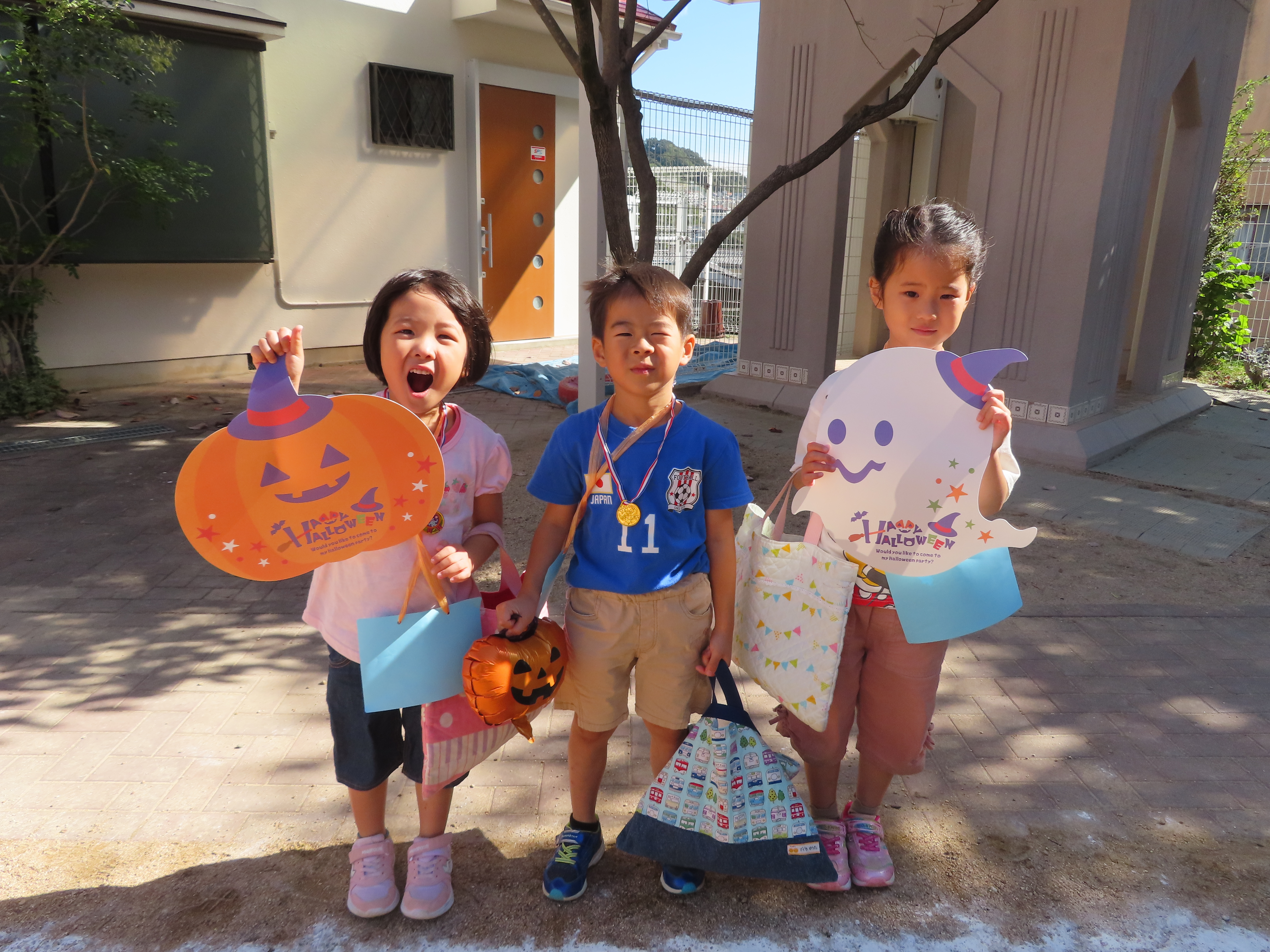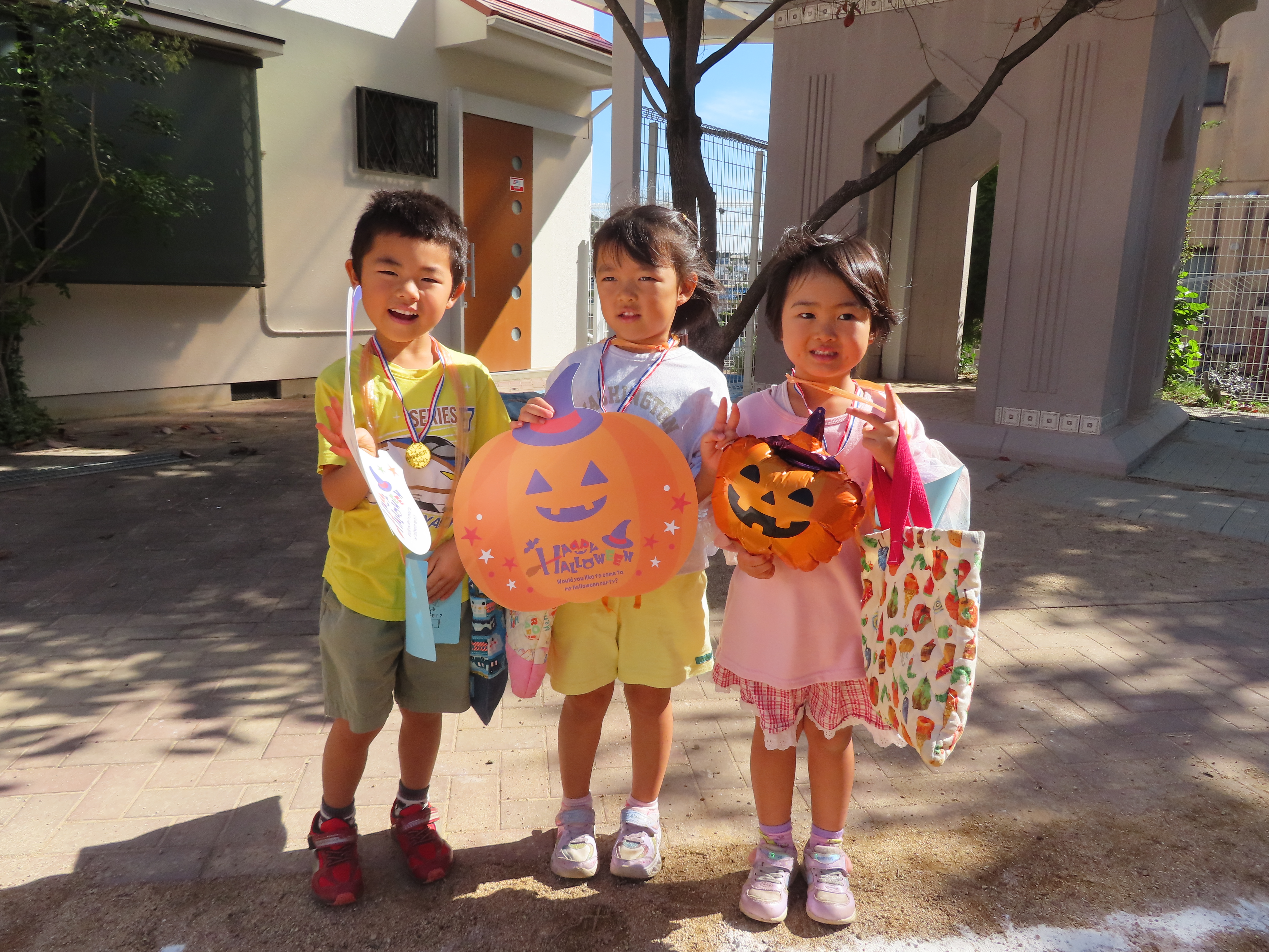 最後はメダルをもらってみんなでハロウィンの飾りと写真を撮りました(^^♪