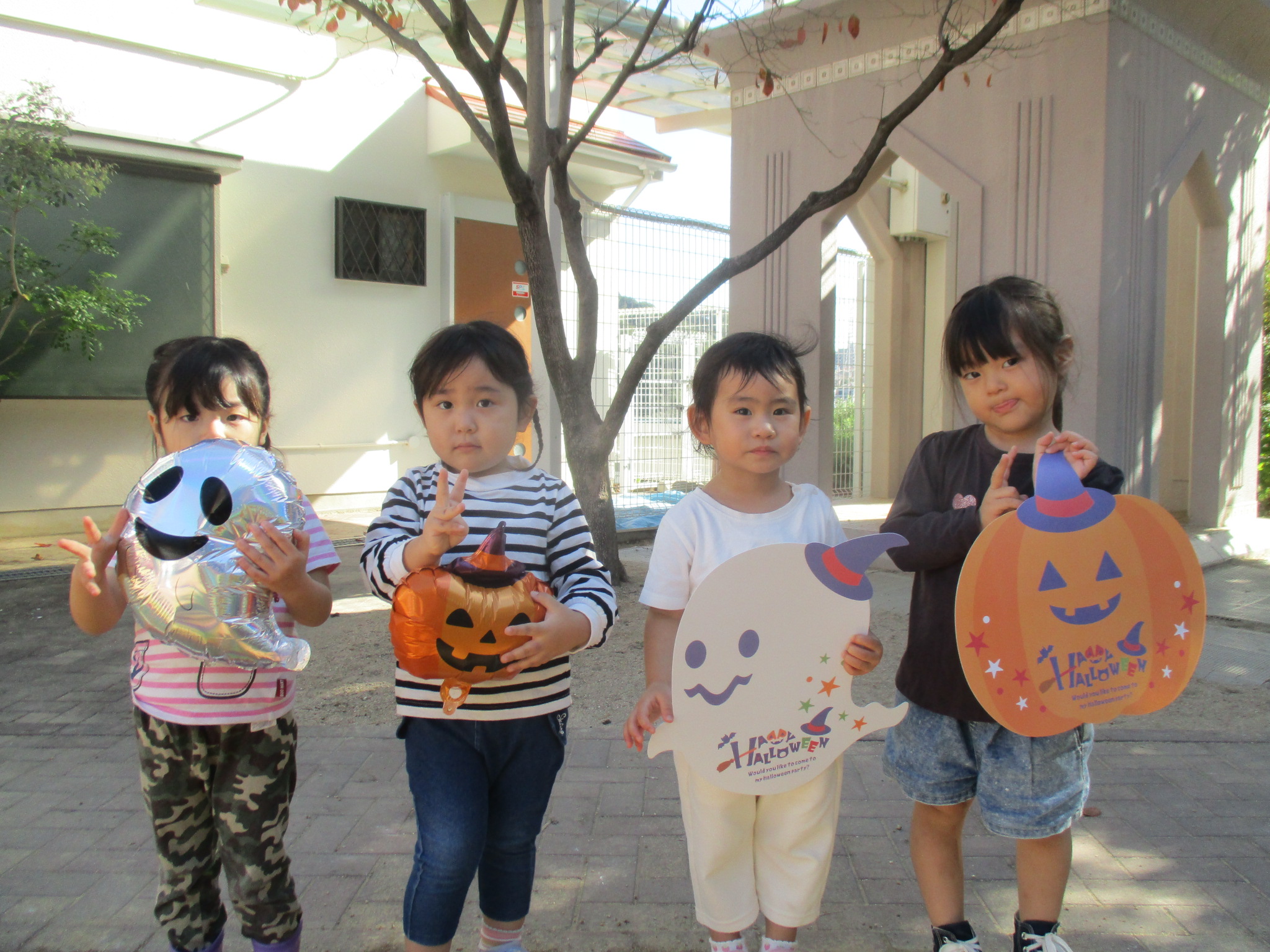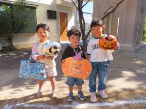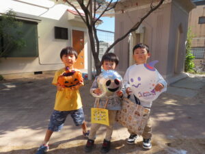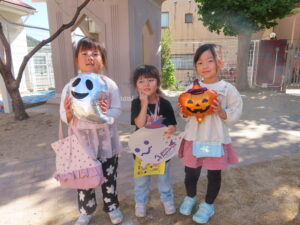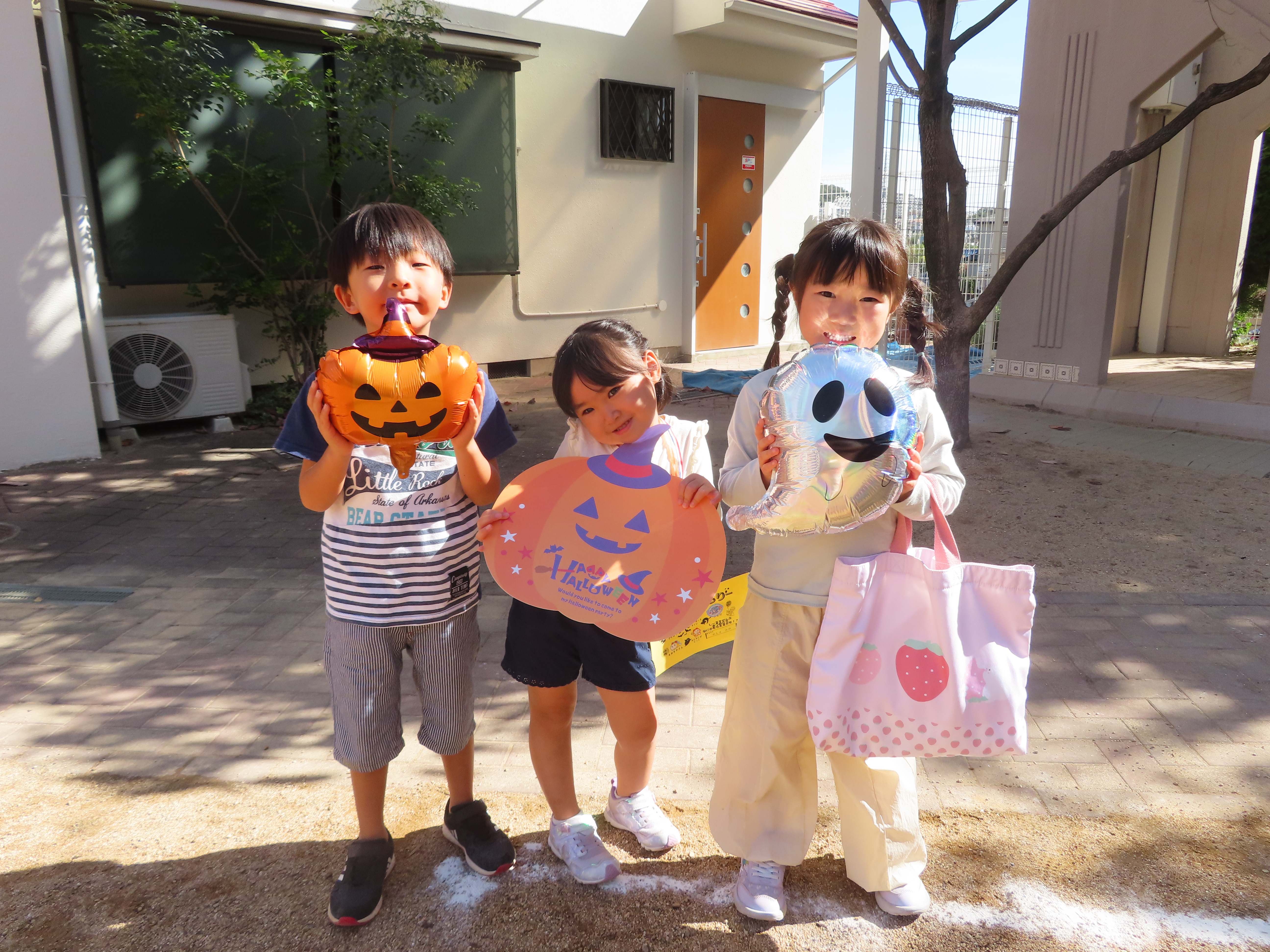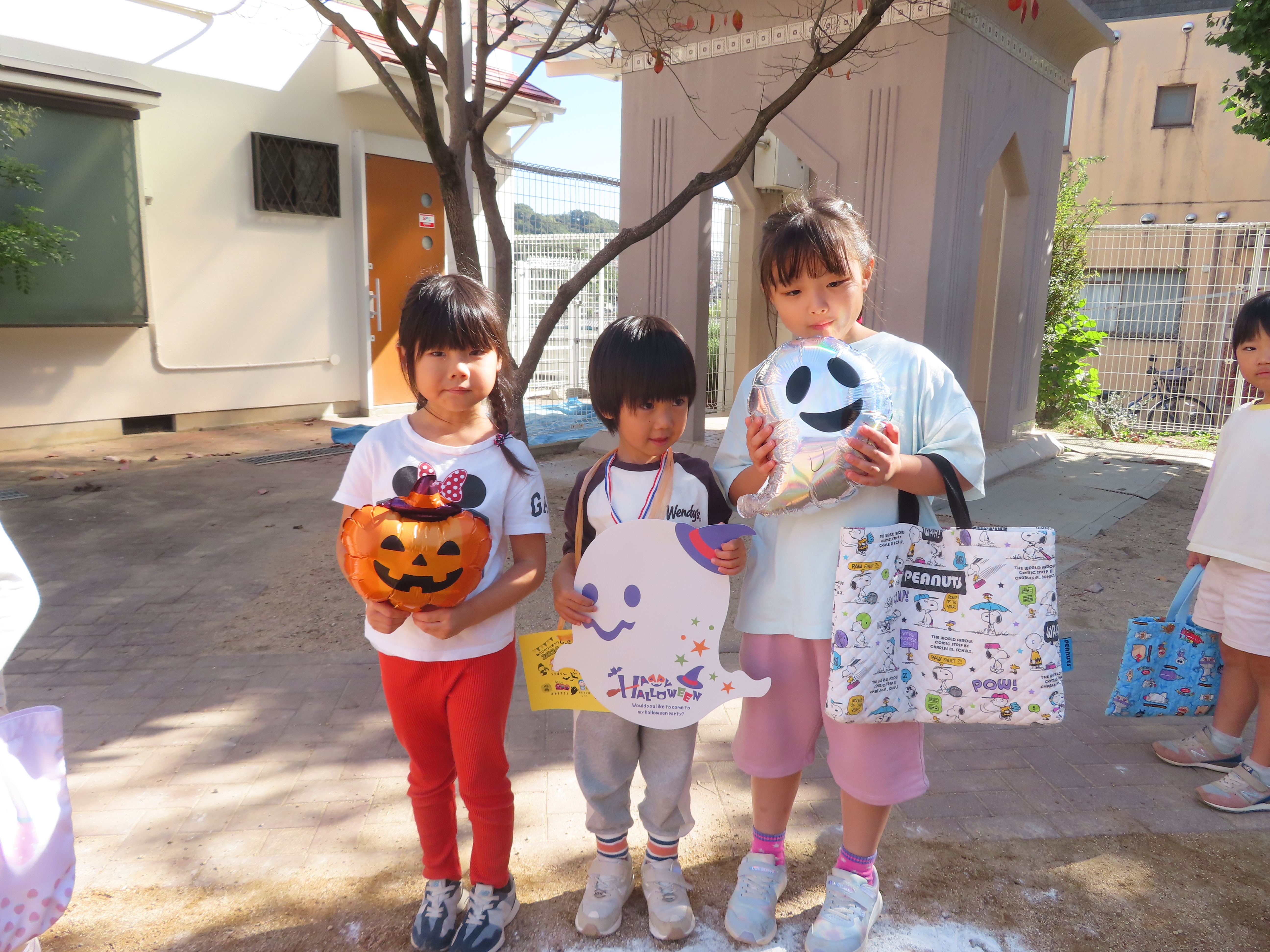 最後はメダルをもらってみんなでハロウィンの飾りと写真を撮りました(^^♪