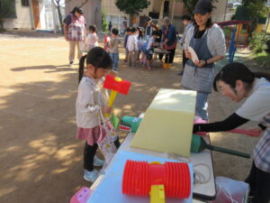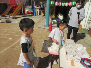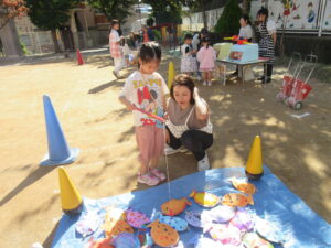すみれさんは一人で回ります!どこにしようかなぁ~と迷いながらもいろんなゲームを回っていく子どもたちでした(^^)/