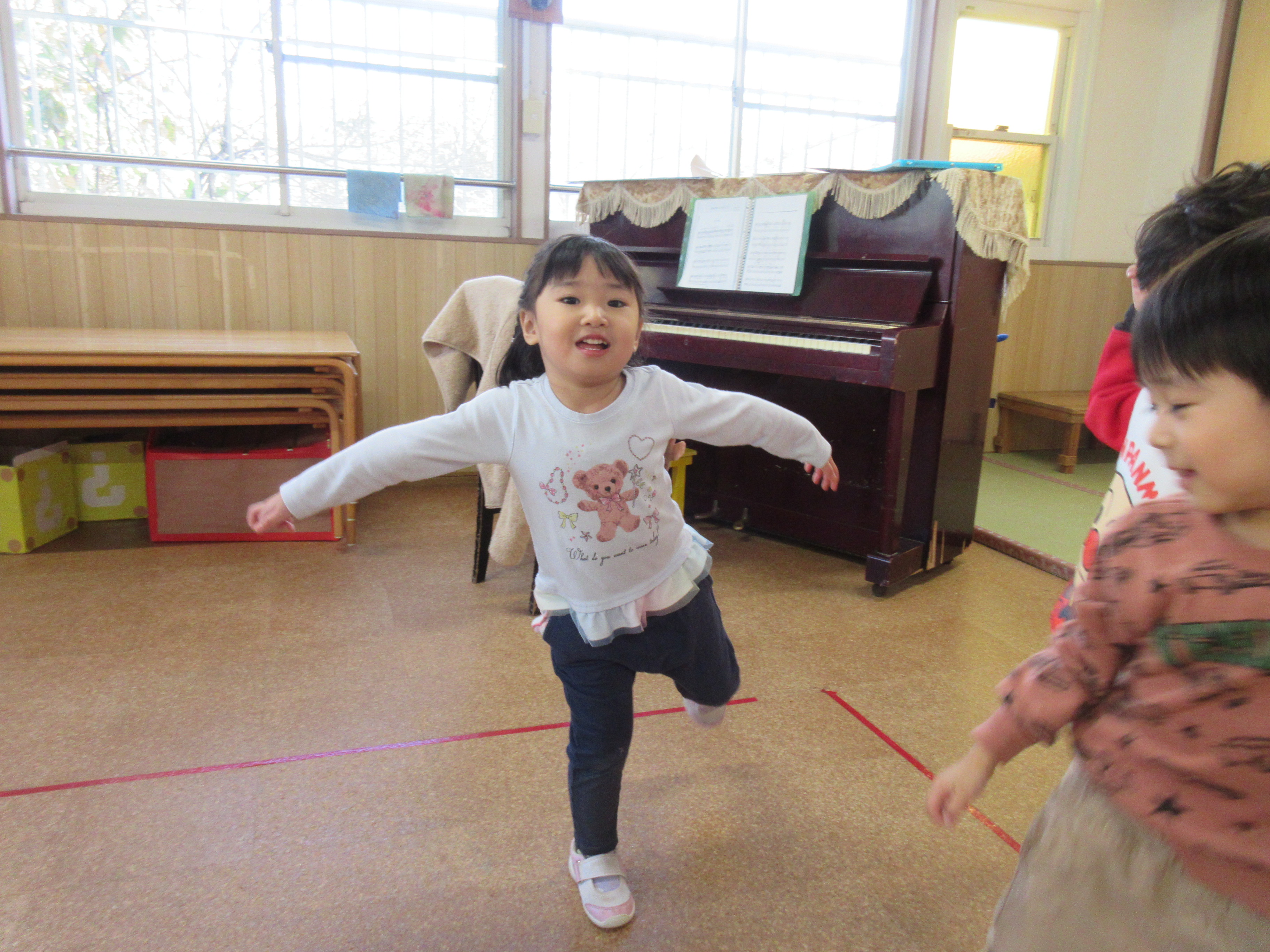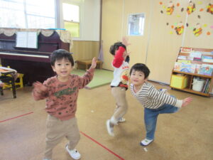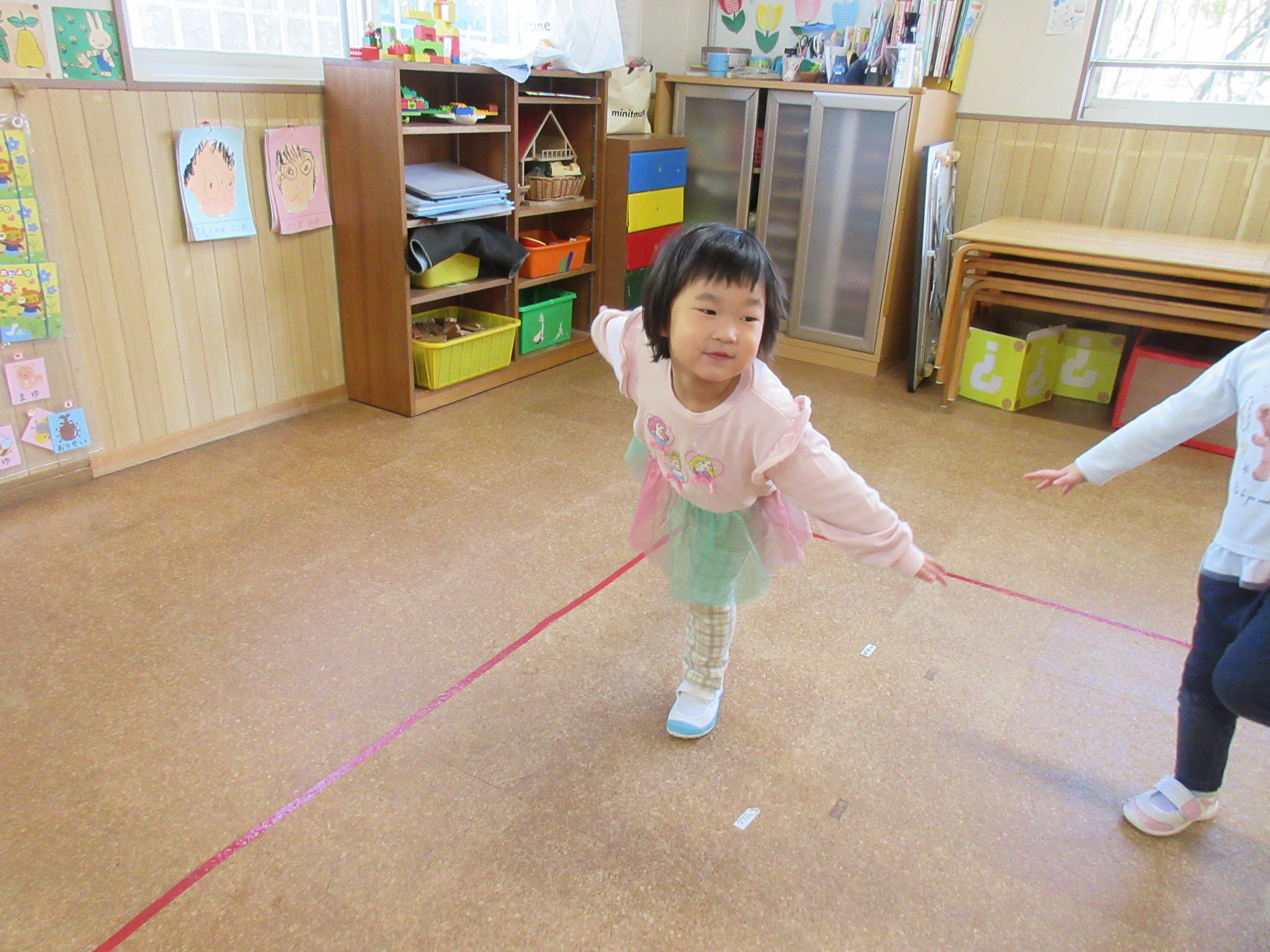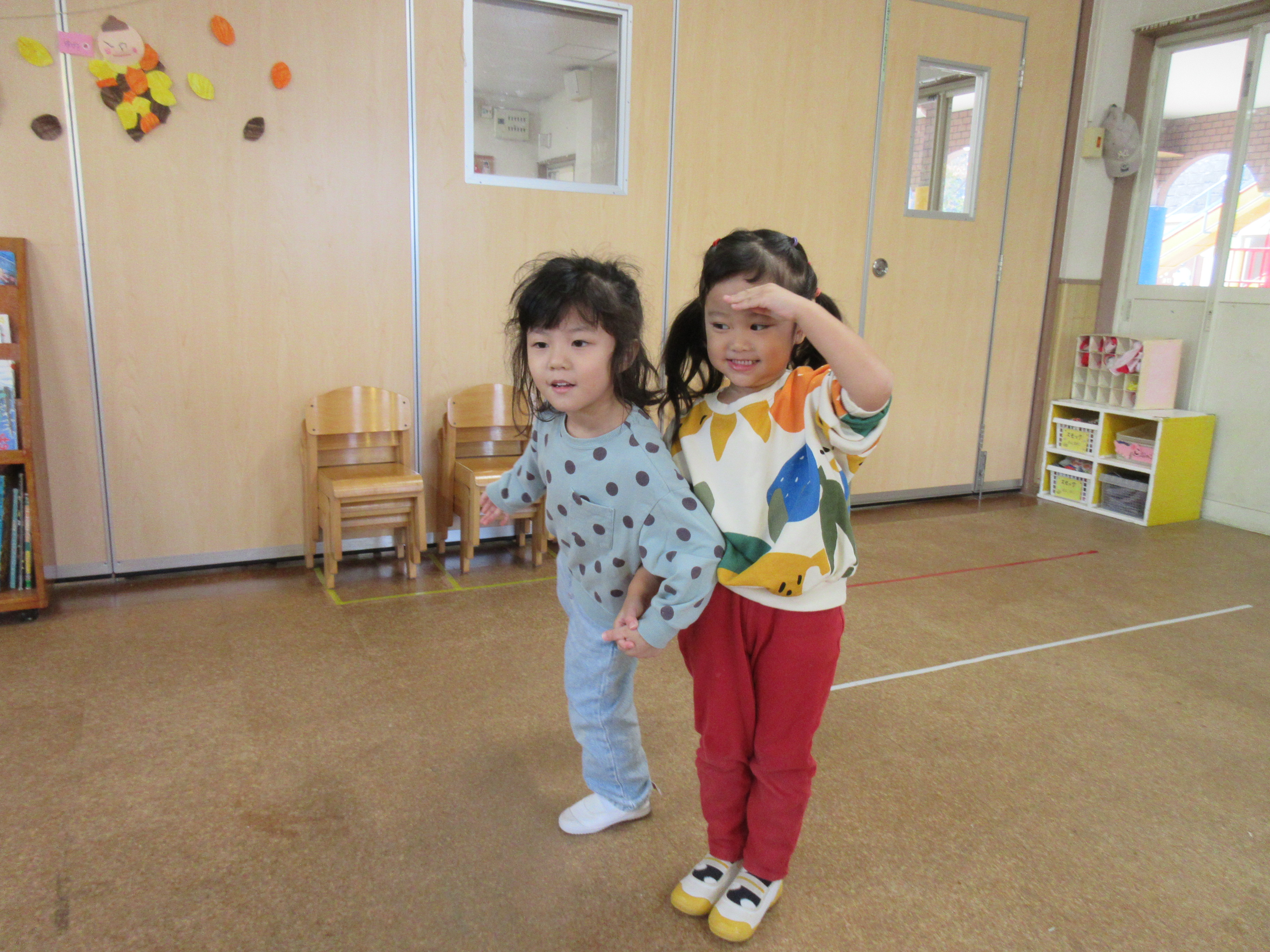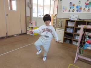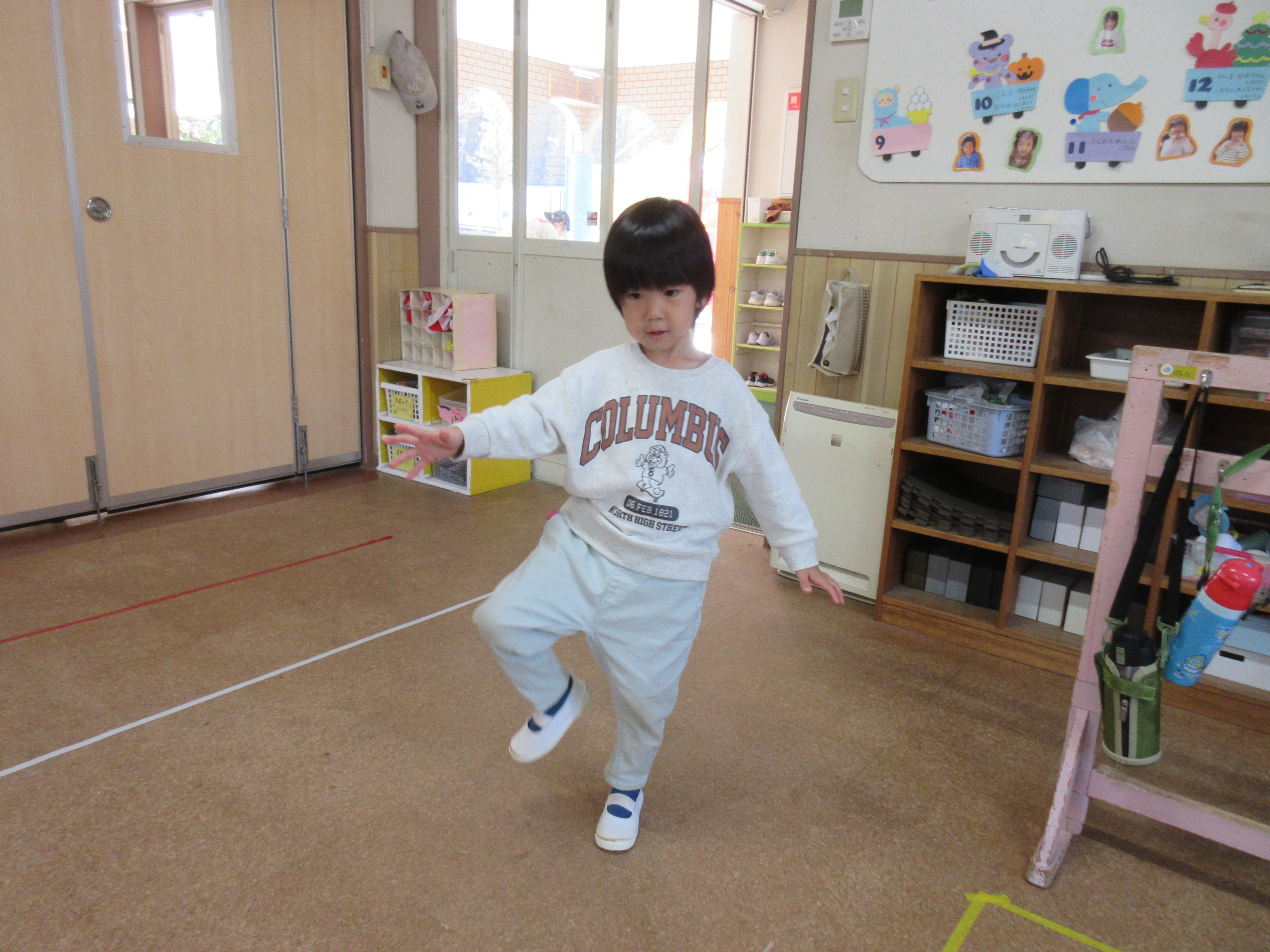 少し気温も下がり、肌寒くなってきましたが元気いっぱいな子どもたちです♪お部屋ではリトミックをして体を動かします(^^)/バランスが上手になってきました♡それぞれ好きなポーズで止まります!