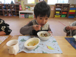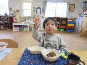 またクリスマス会に向けて練習に取り組んでいます♪鈴、カスタネット、タンバリン3つの楽器を使って演奏するのですが、まだまだリズムが合わず苦戦する姿も見られますが、一生懸命頑張っています♪