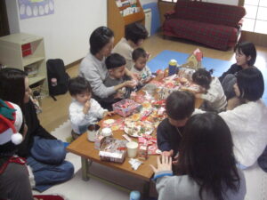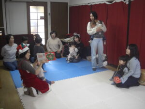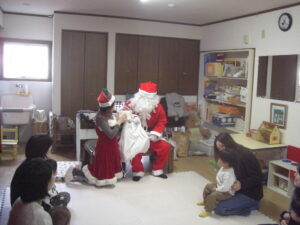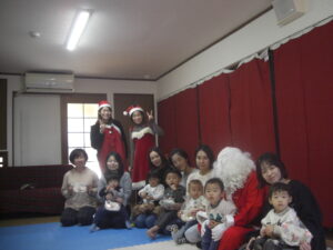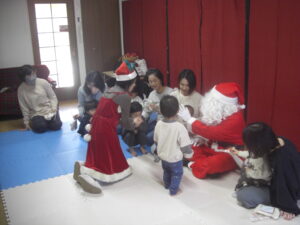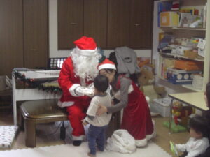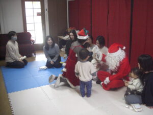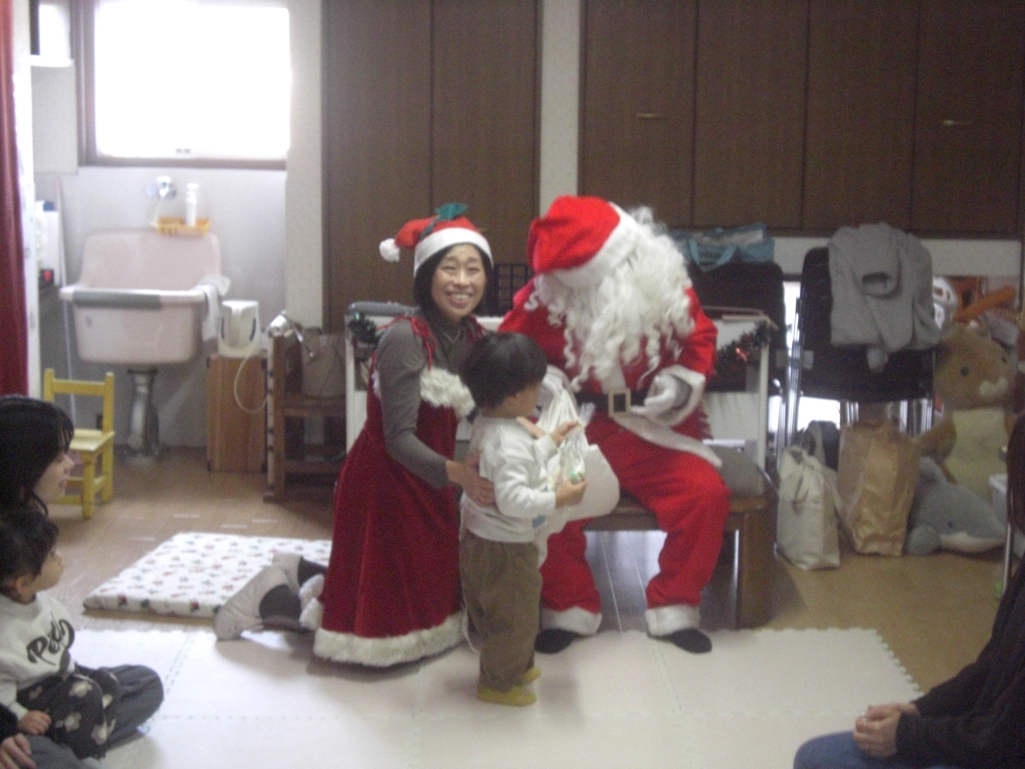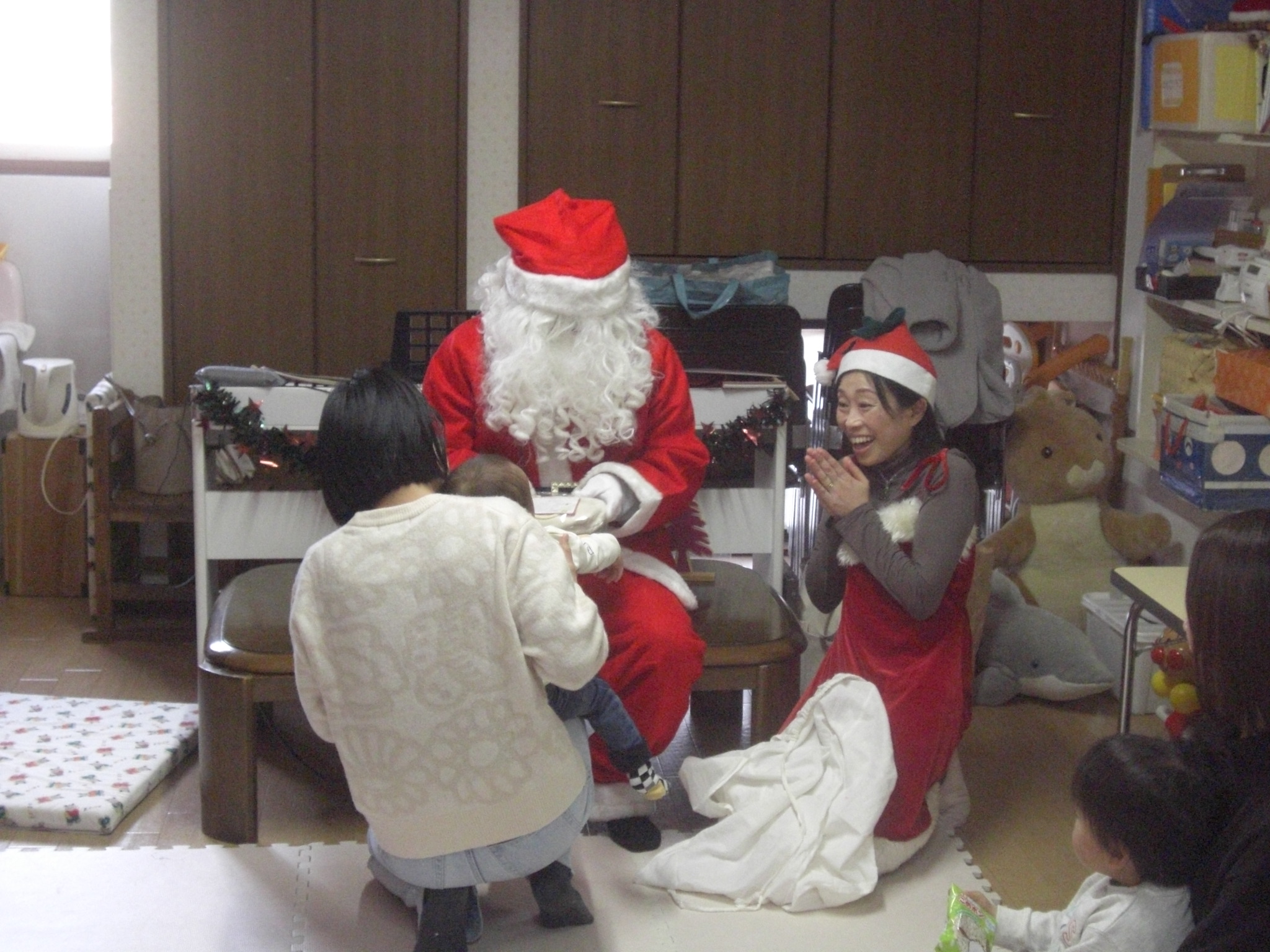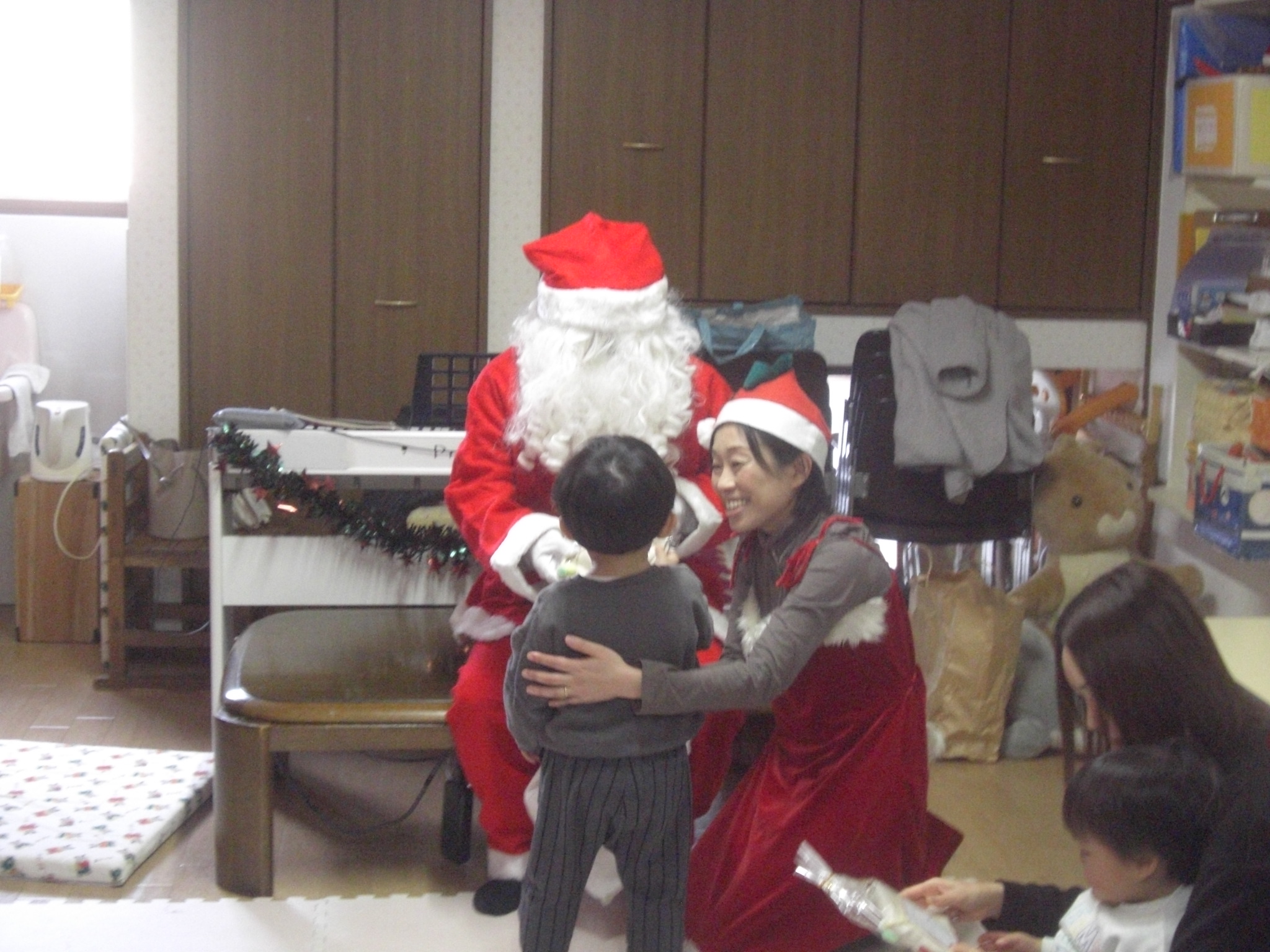 今日は、クリスマスパーティーをしました♡お集まりをしていたら♡リンリン♪と、すずの音が♡たまごクラブの可愛いみんなのために、サンタクロースさんが来てくれました♡サンタさんを、見つめてびっくりしているみんなが、とっても可愛かったです♡手作りプレゼント&カード&おやつ&ママたちにも、ミニプレゼントを、持ってきたくれました♡優しいサンタクロースさん♡ありがとうございました♡