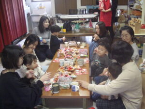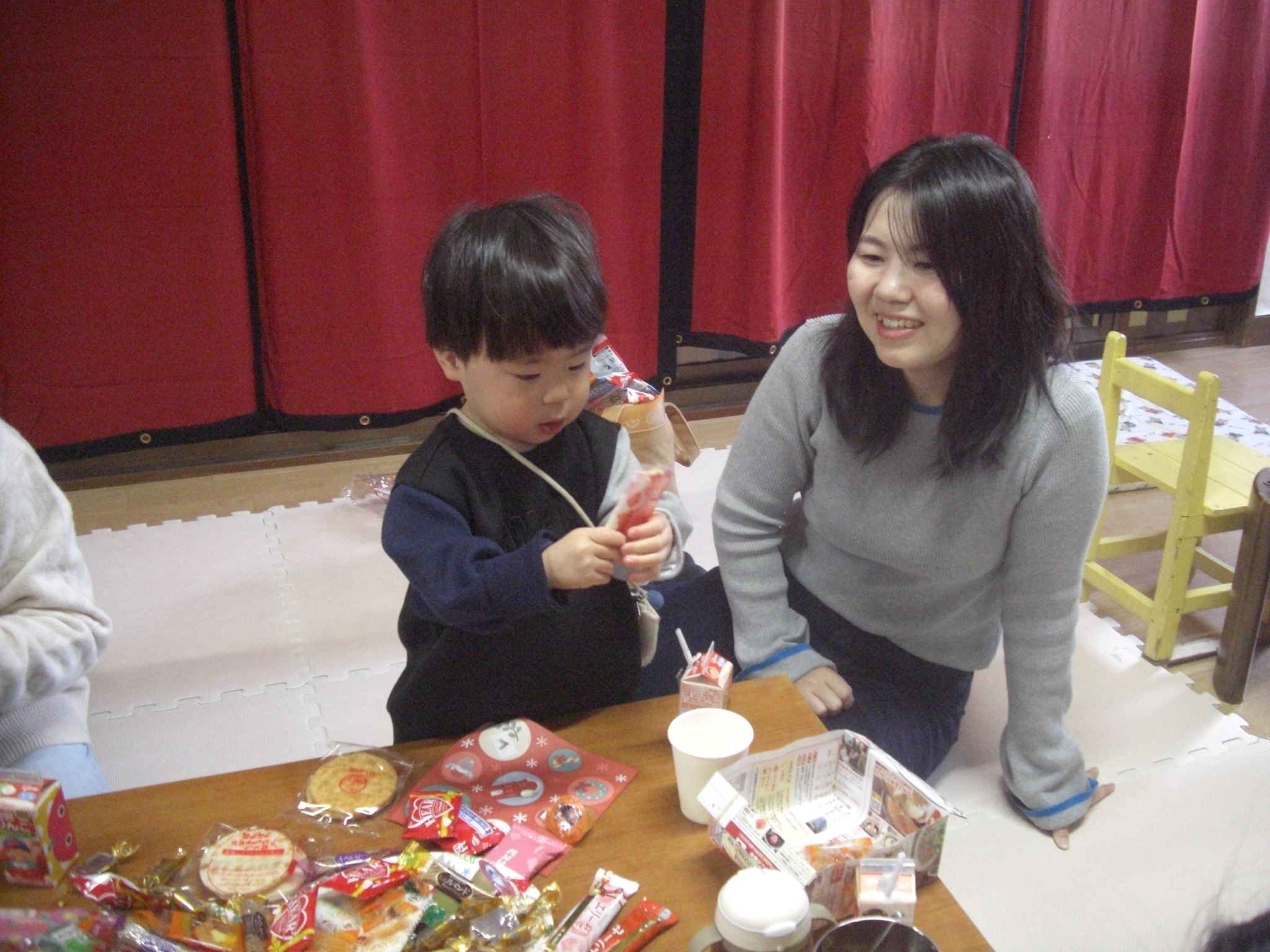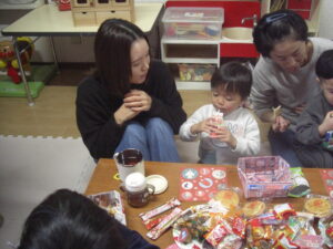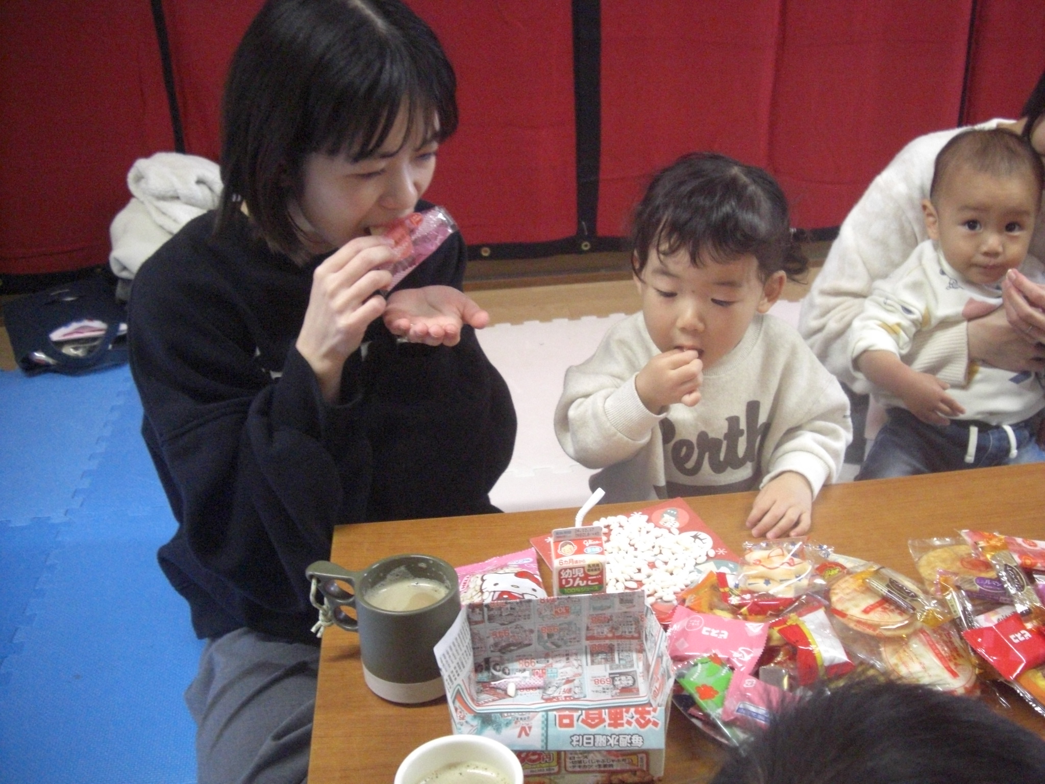 続いて、おやつパーティー♡では、たくさんのおやつに囲まれて、みんなで美味しく頂きました♡おやつのご協力、ありがとうございました♡今日でたまごクラブ卒業して、ひよこどんぐり組さんで過ごすことになるお友だちとも、今までありがとう♡これからもずっと大好きだよ♡の気持ちを込めてアルバムのプレゼントと、みんなのハイタッチ♡で、さよならしました♡大切なお友だちとママが、これからも幸せでありますよに♡♡♡