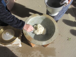もち米をたべたり、杵と臼の説明を聞いたり餅つきの説明を聞きました!