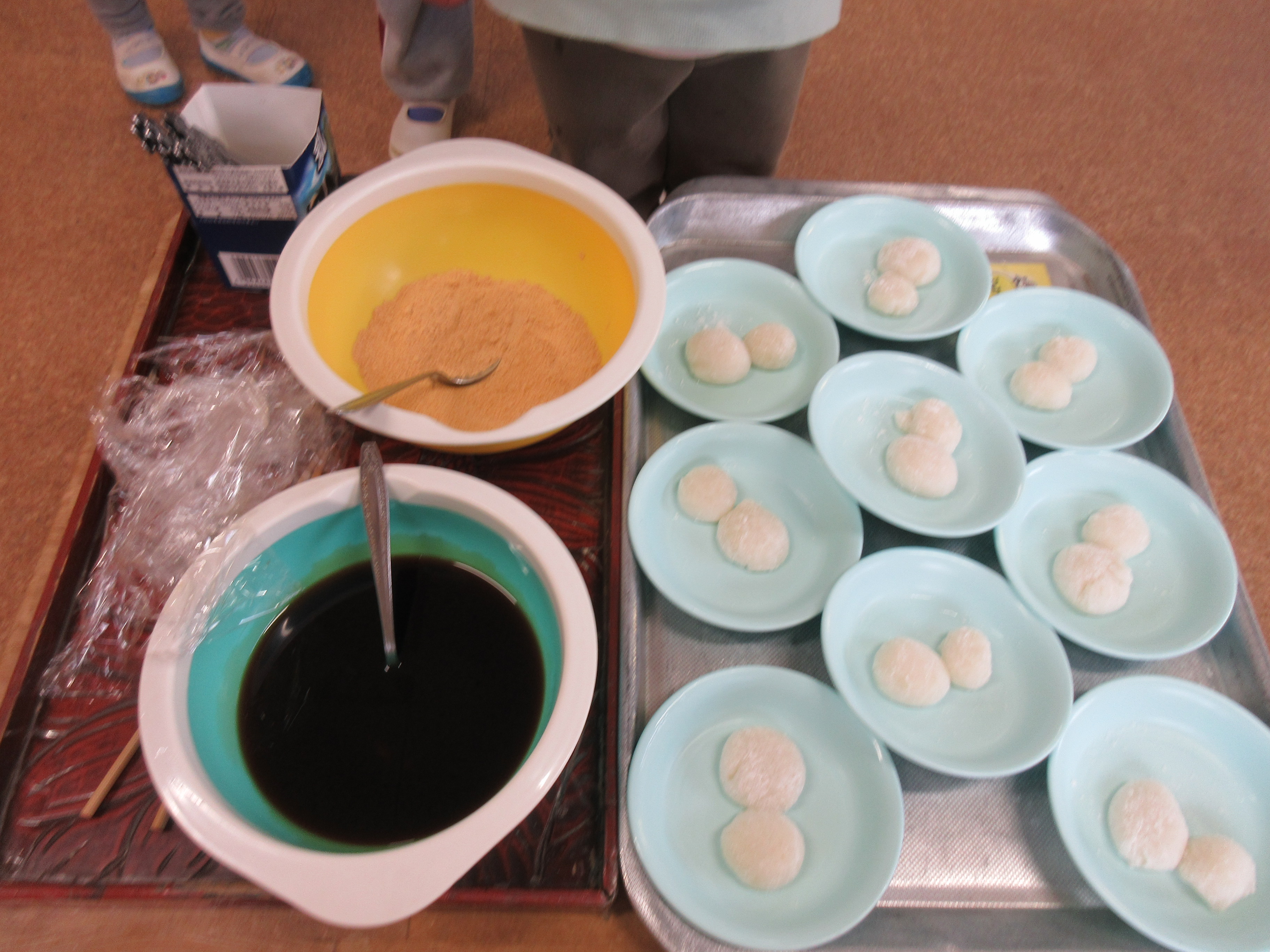 出来上がったおもちは醤油ときなこをかけて美味しく頂きました(^▽^)/