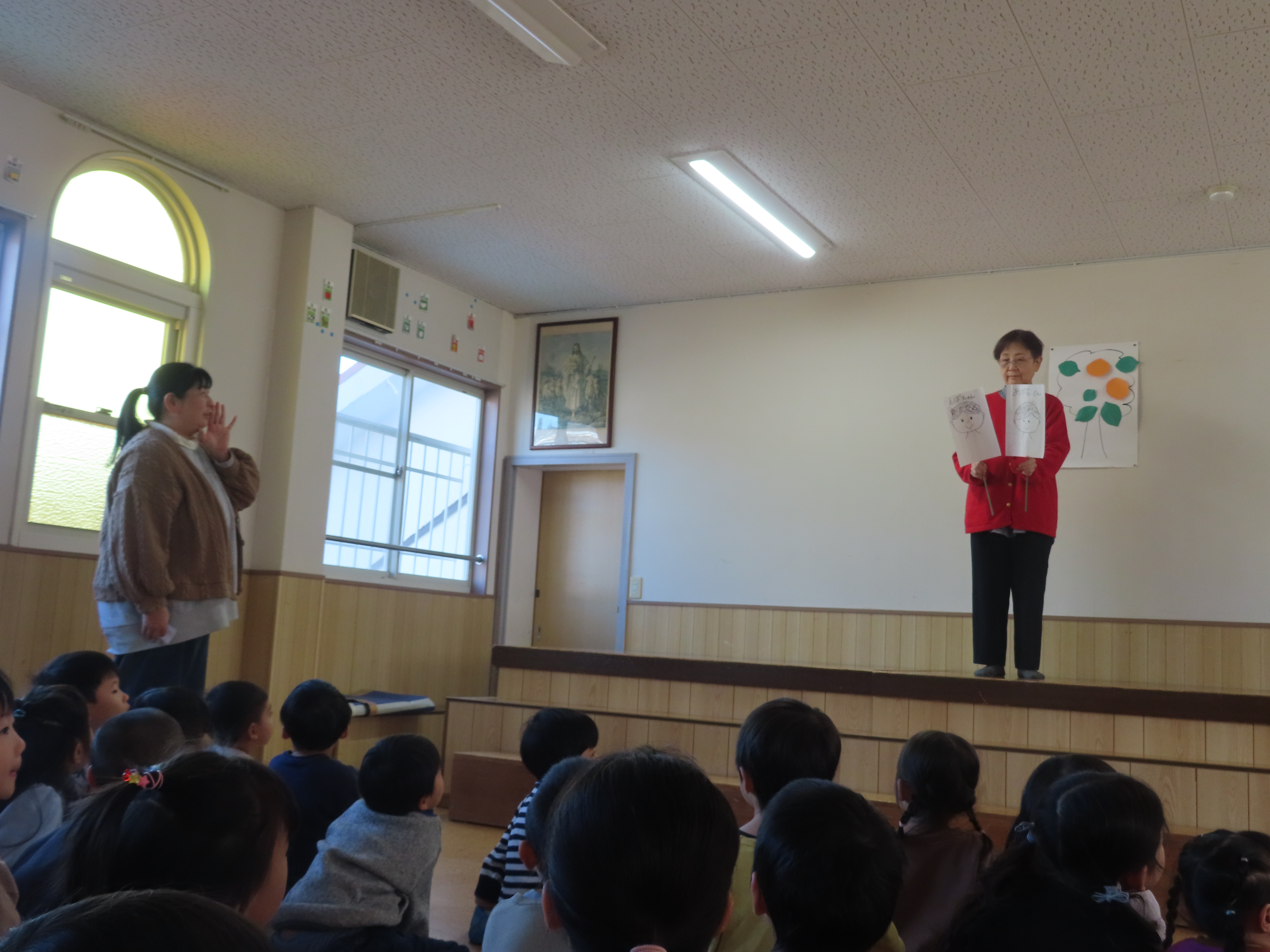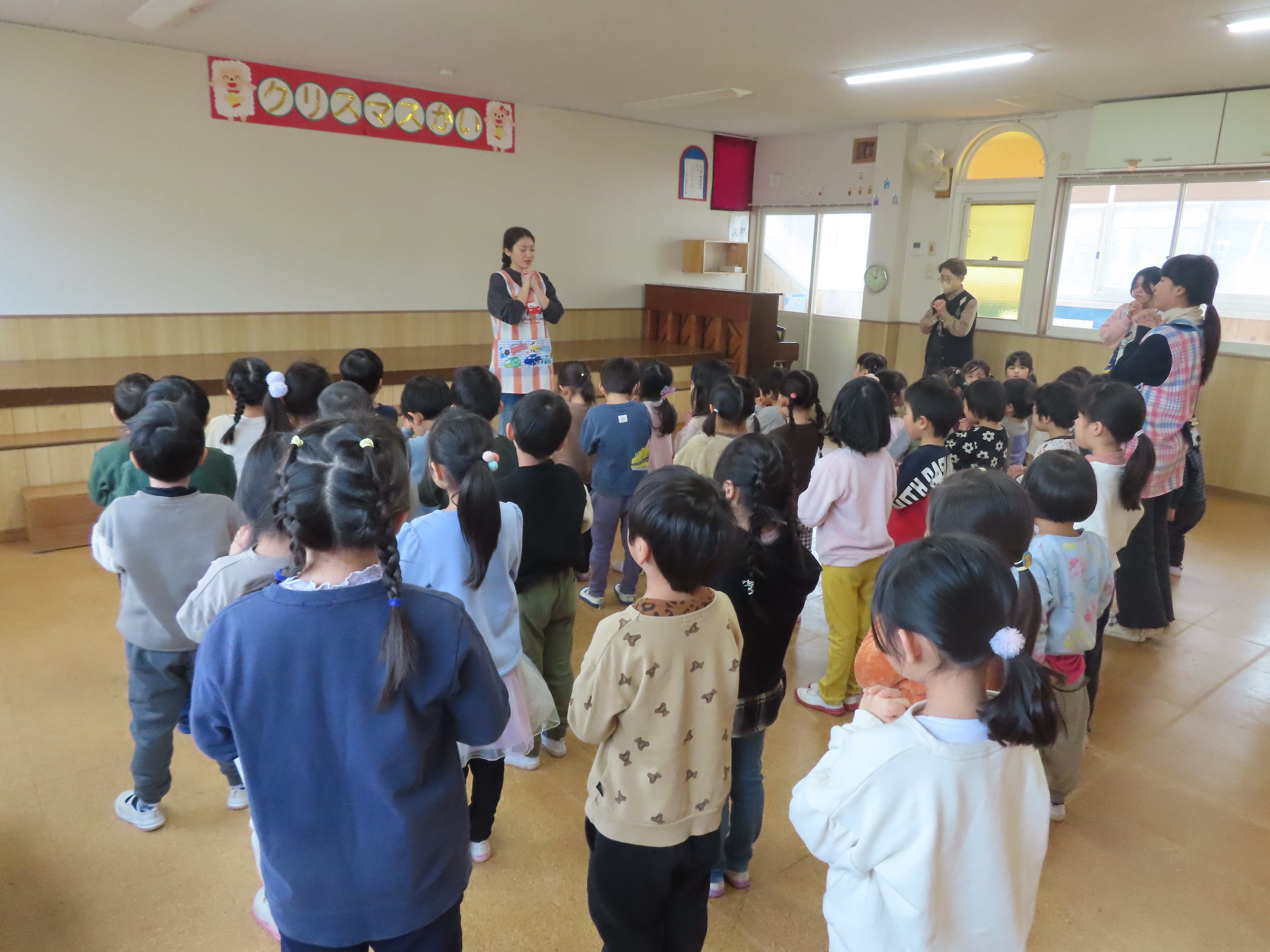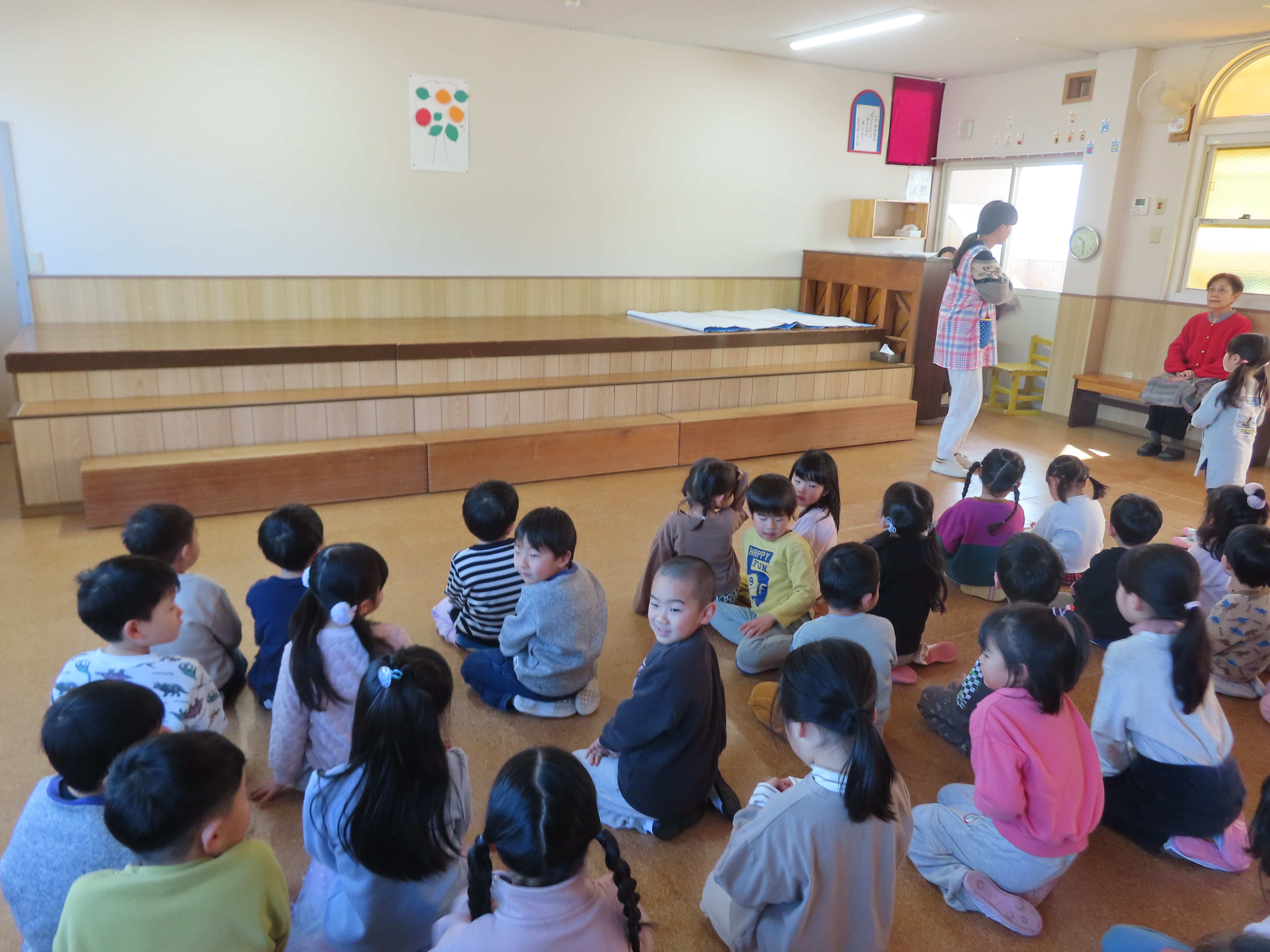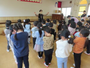 みんなで始園式をしました。3学期が始まりました。また、頑張ろうね!!とお話ししました。