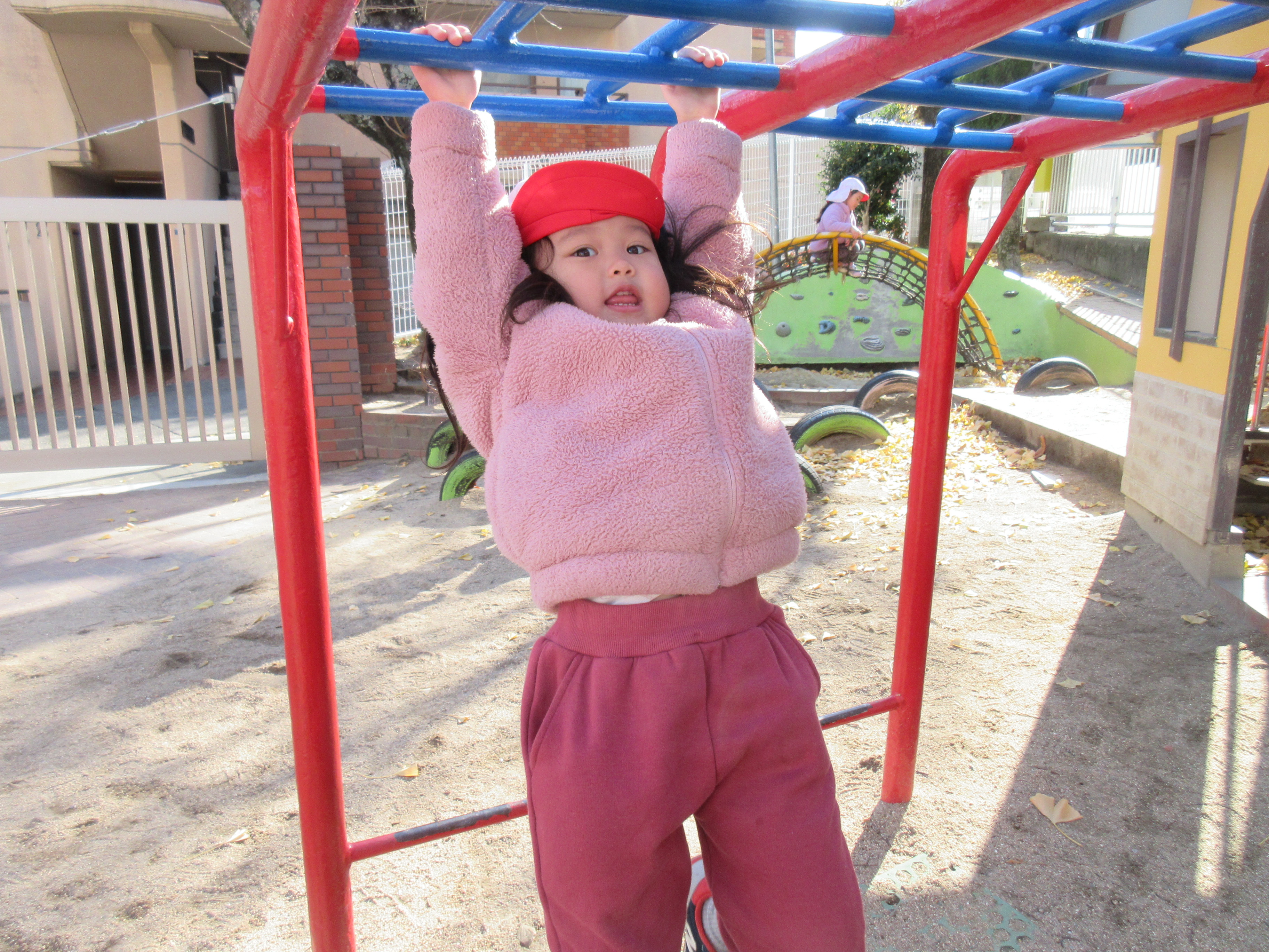 とっても冷たい風が吹いていましたがお外で元気いっぱい遊びました♪楽しそうな笑顔が沢山見られ嬉しかったです♡