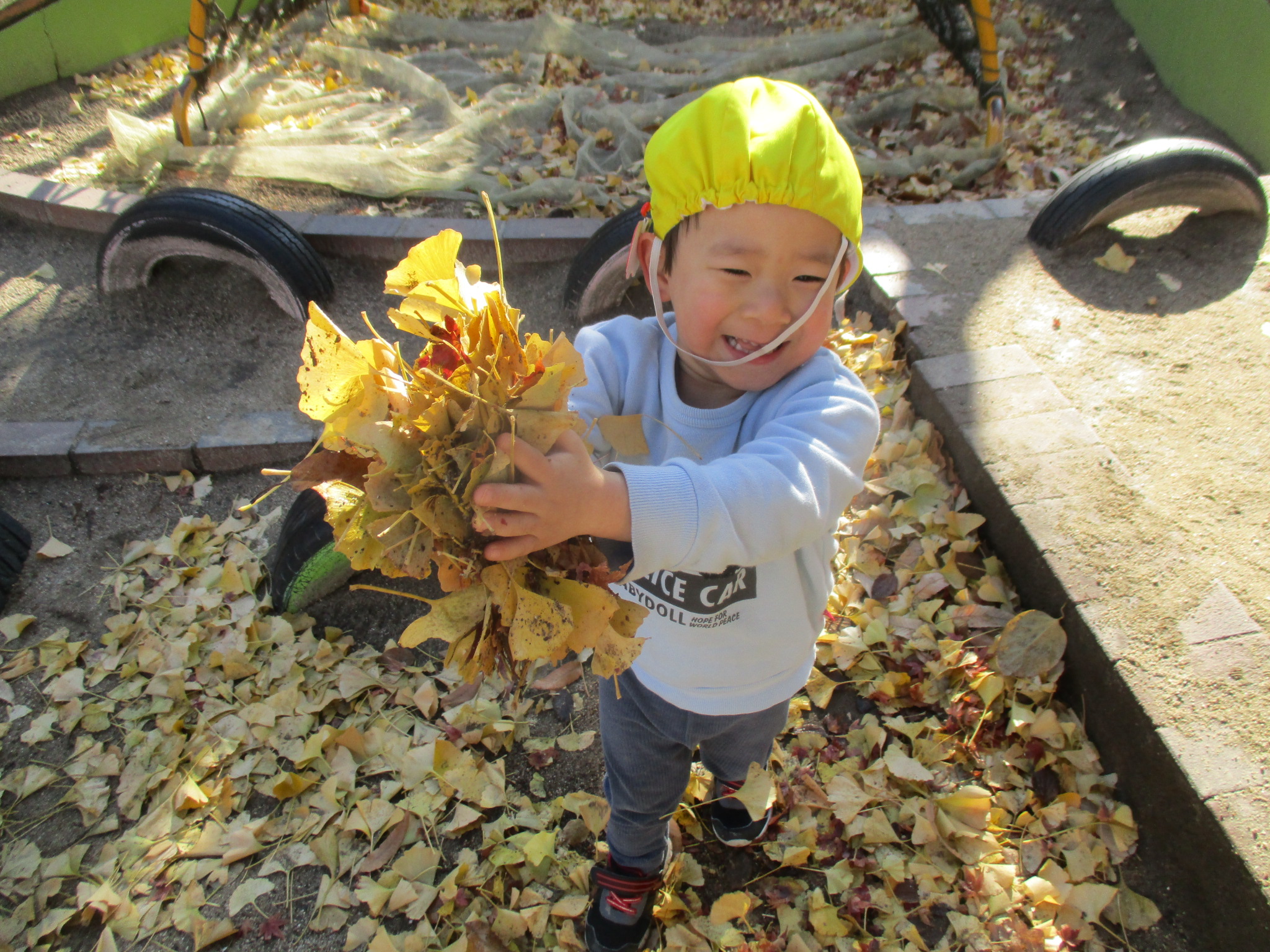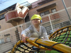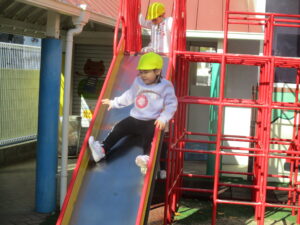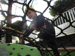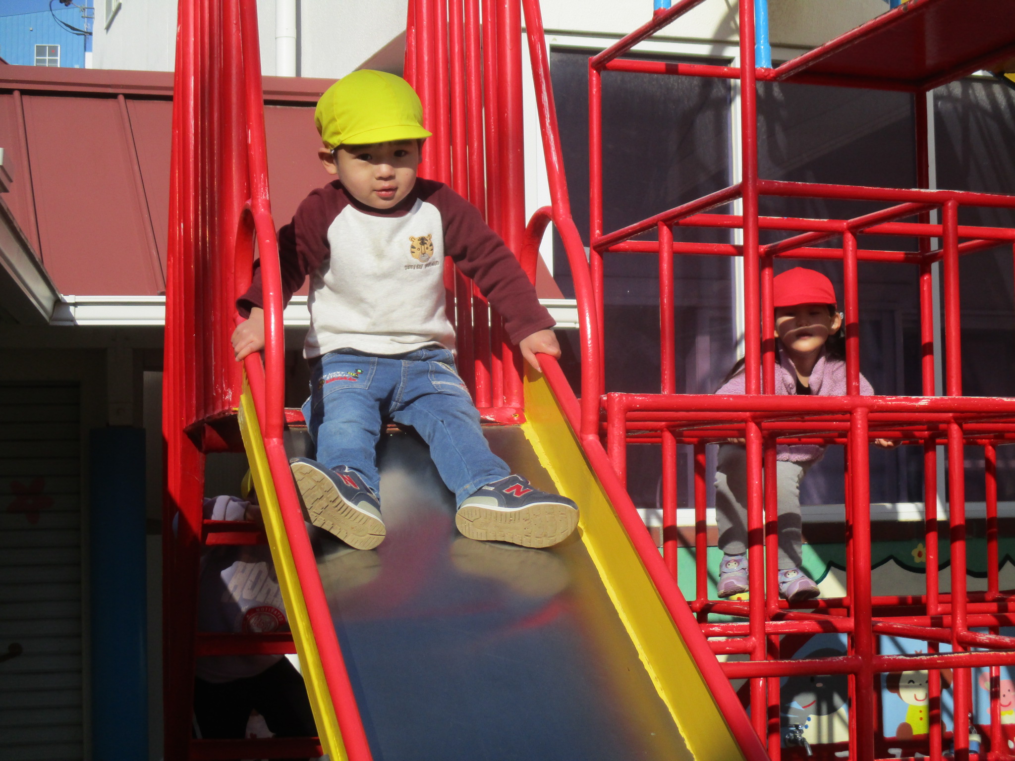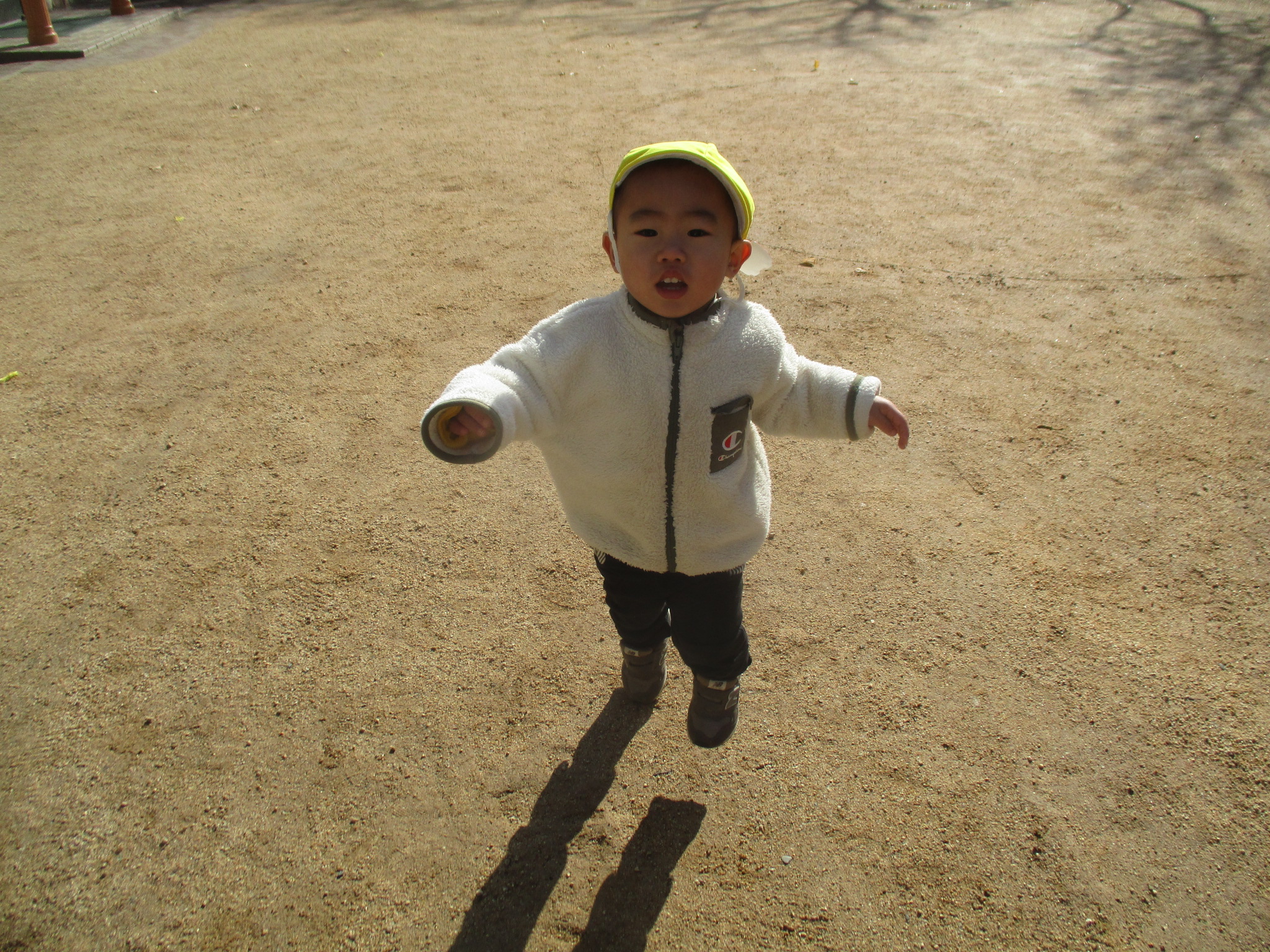 お外は寒いですが子どもたちは上着を脱いで走りまわっています。