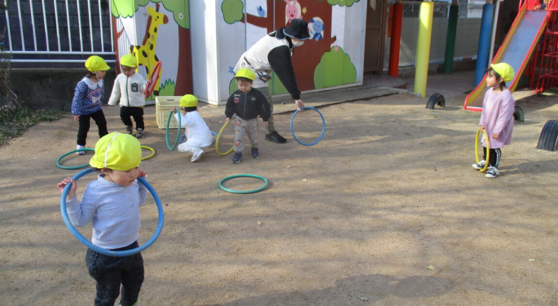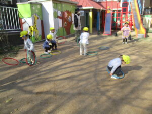 追いかけっこ・かくれんぼ・フラフープなどなど次から次えと楽しそうに遊んでいました。