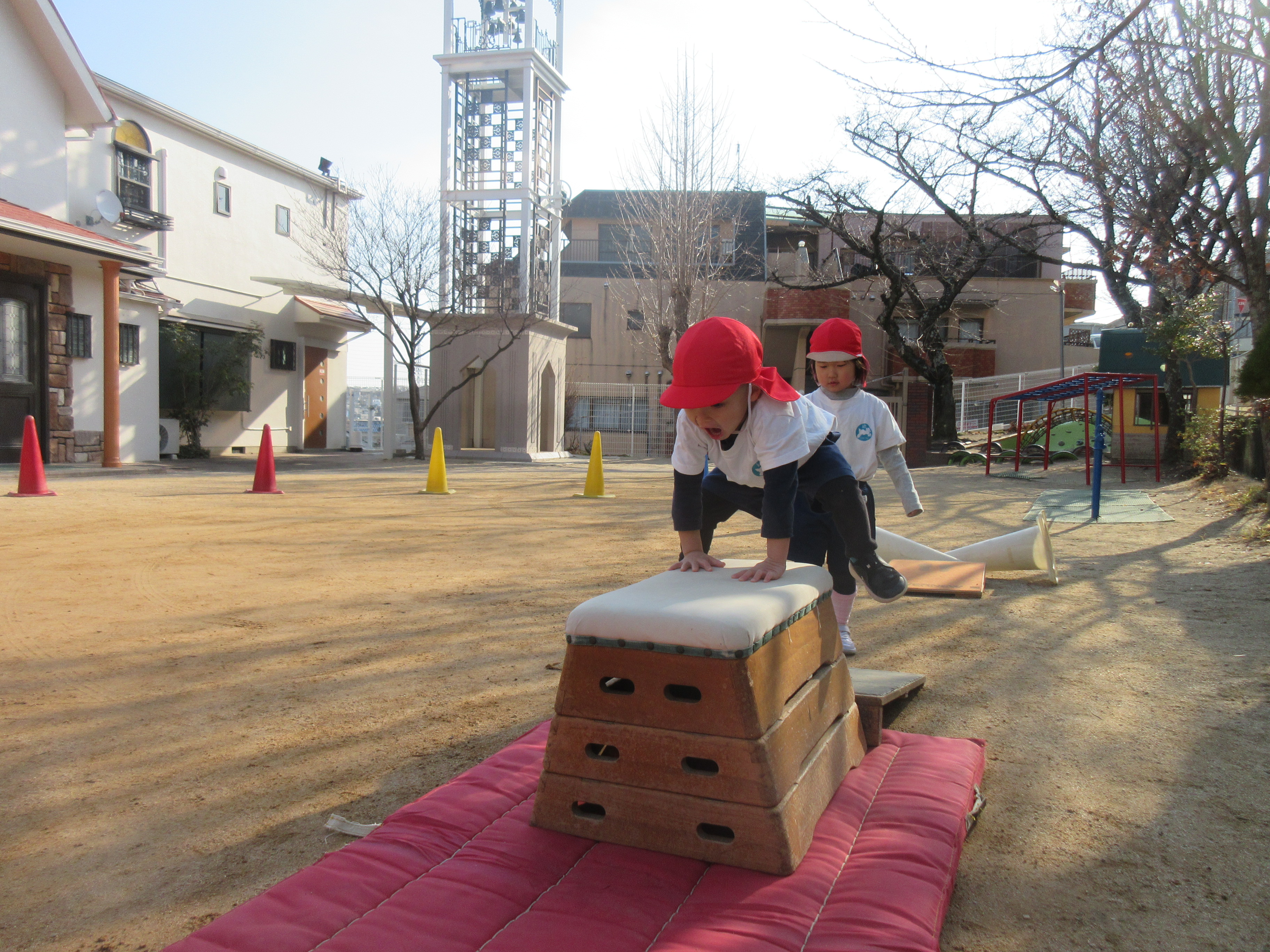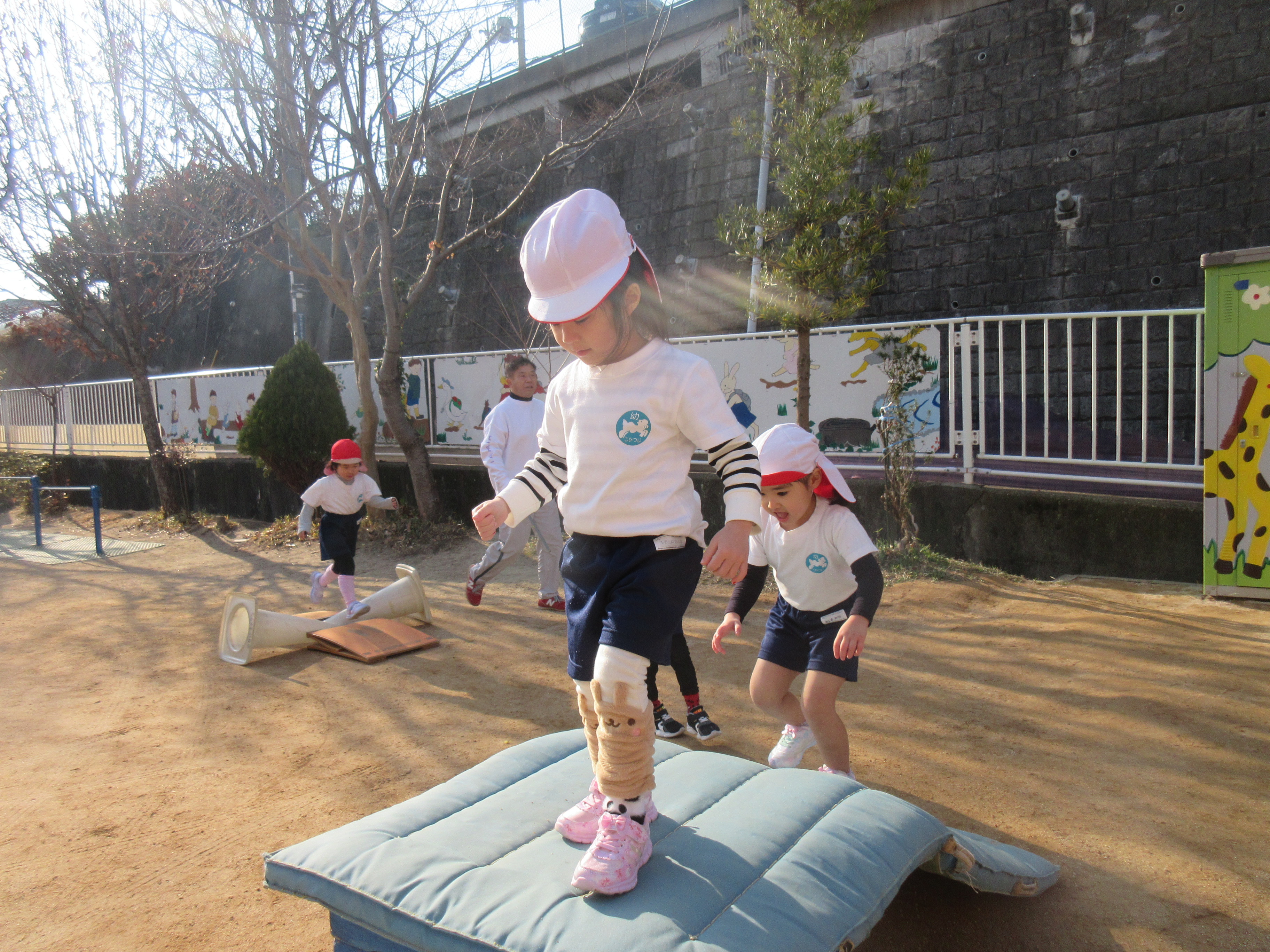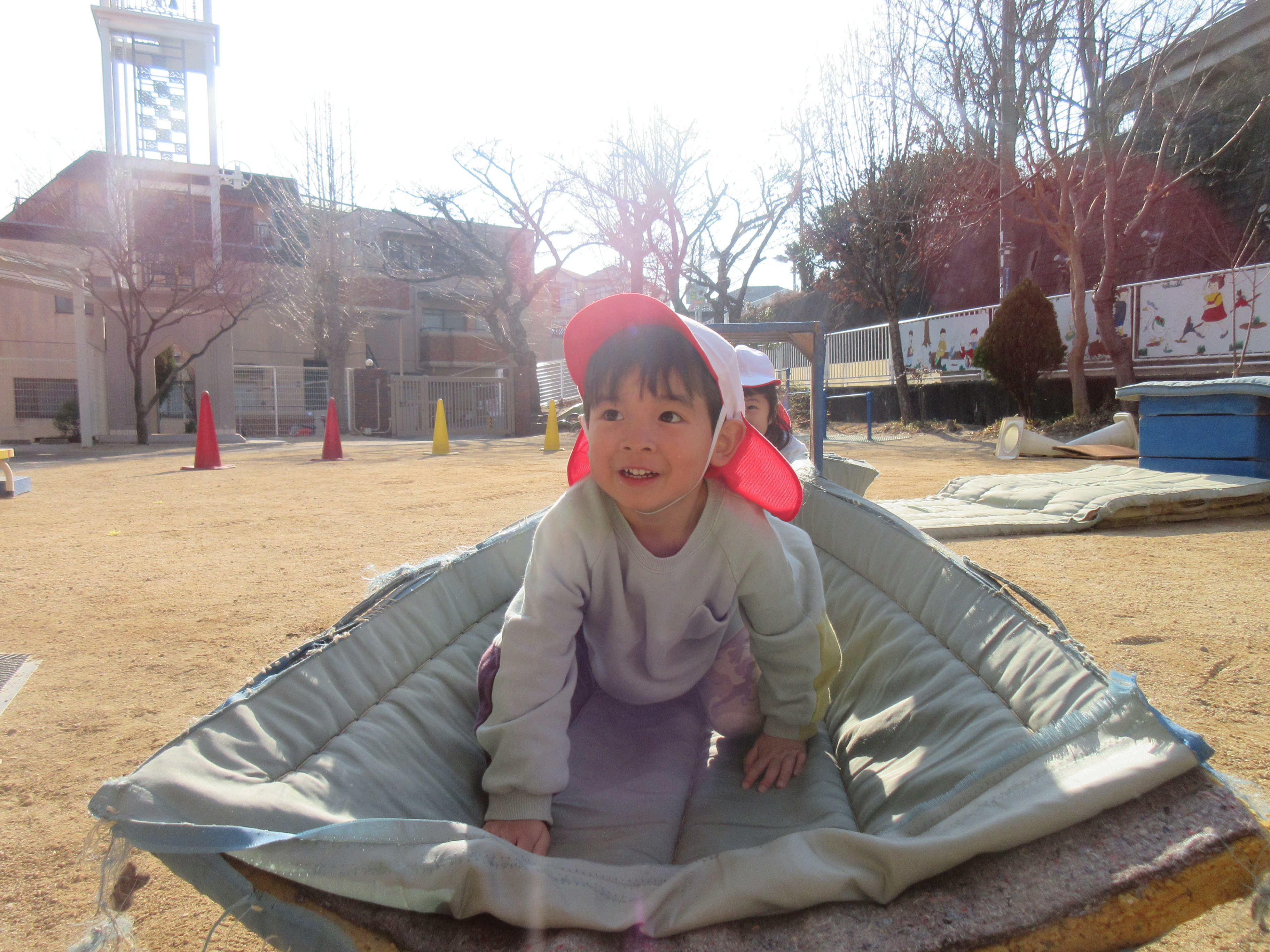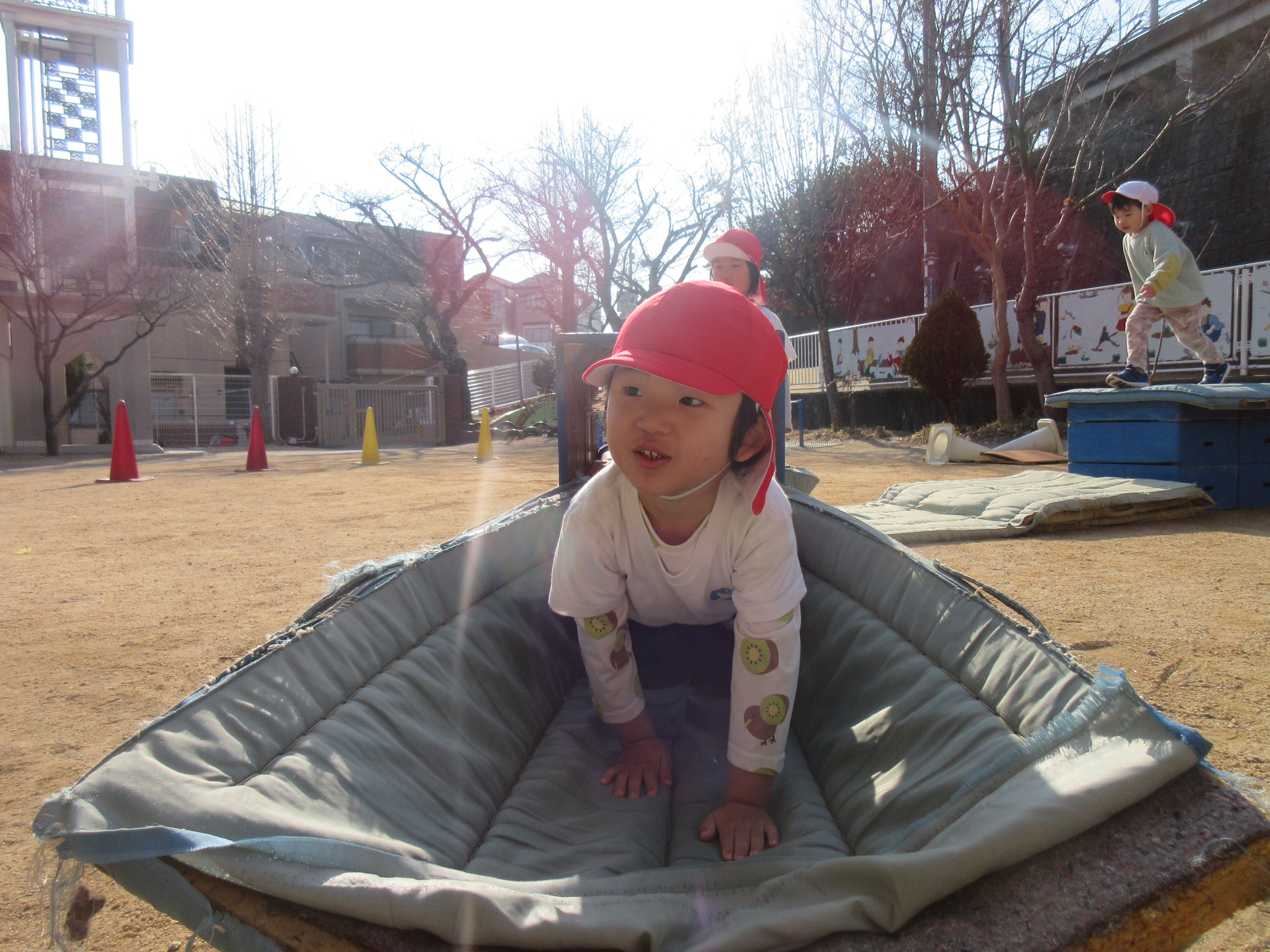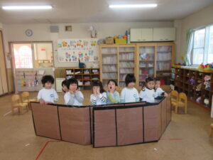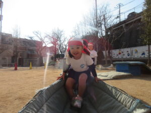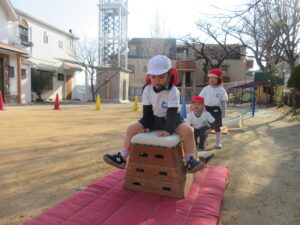 みんなで走ったり、トンネルをくぐったり、いつもより高いところからジャンプしたり、跳び箱を飛んだり、思いっきり体を動かして遊びました♪大きな声でご挨拶もでき先生に褒めてもらい嬉しそうな子どもたちでした♡