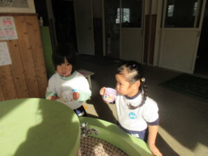 お部屋に入る前は手洗いうがいをします!いろんな感染症が流行しているので予防していきたいと思います🌼