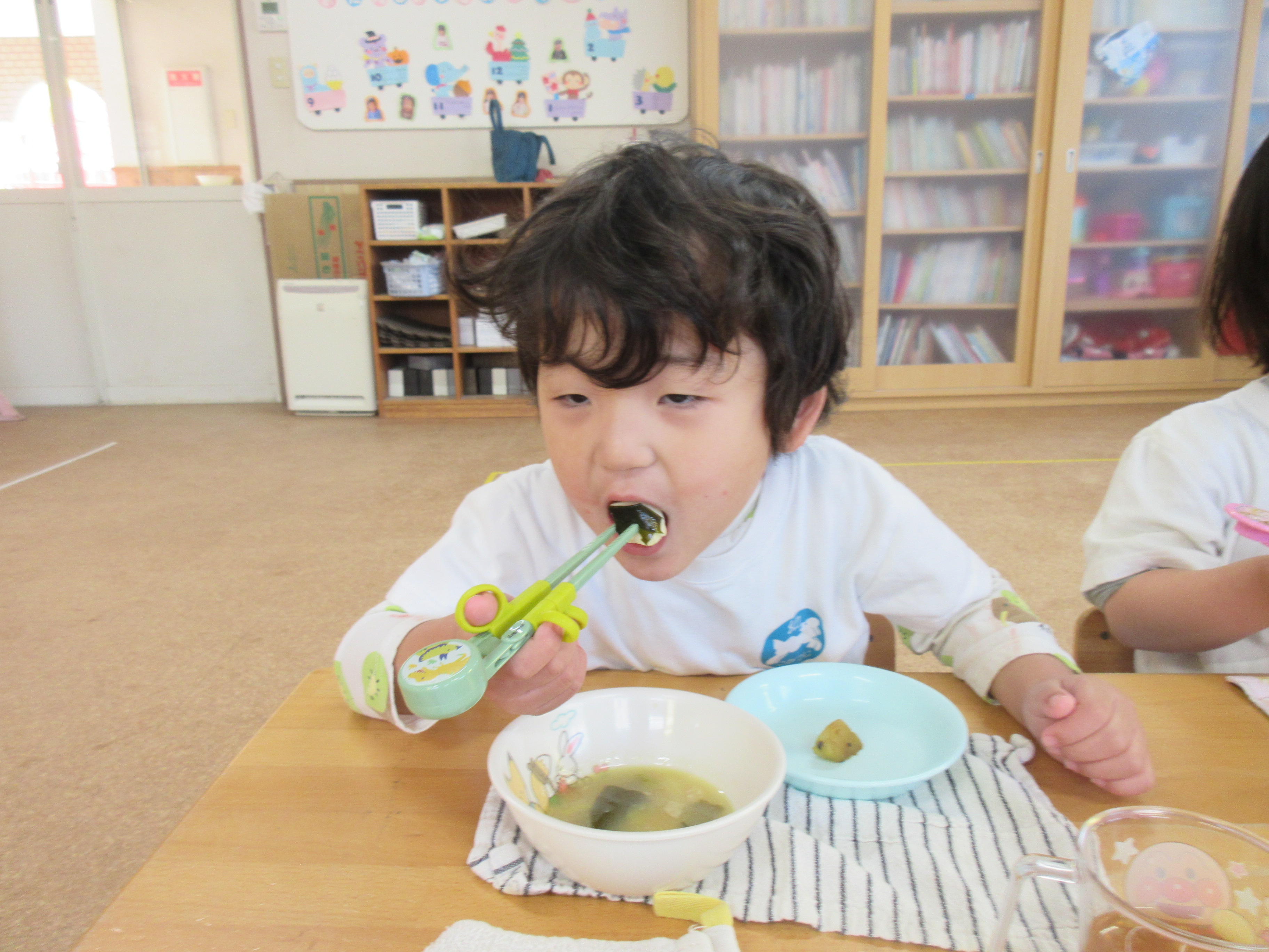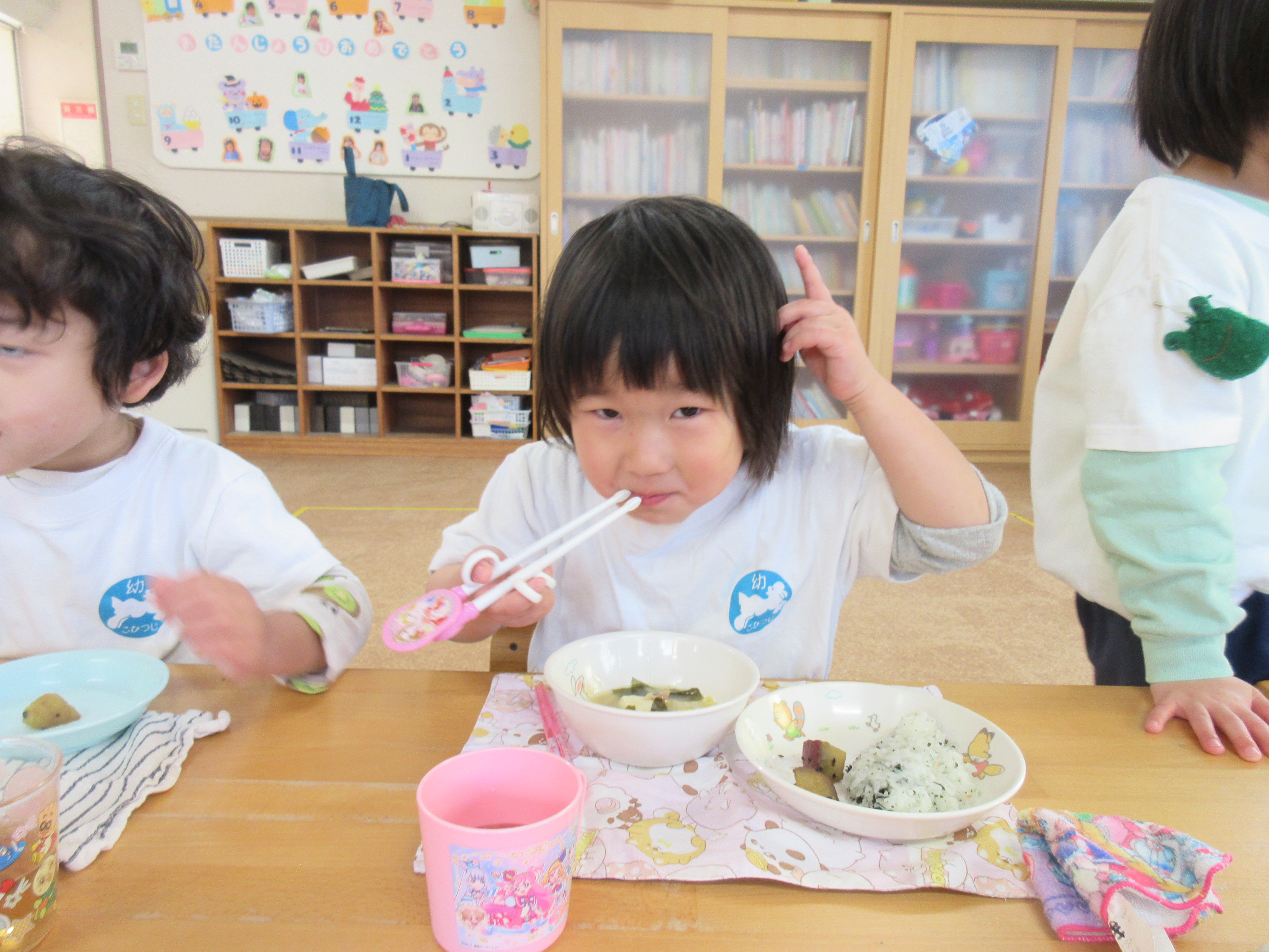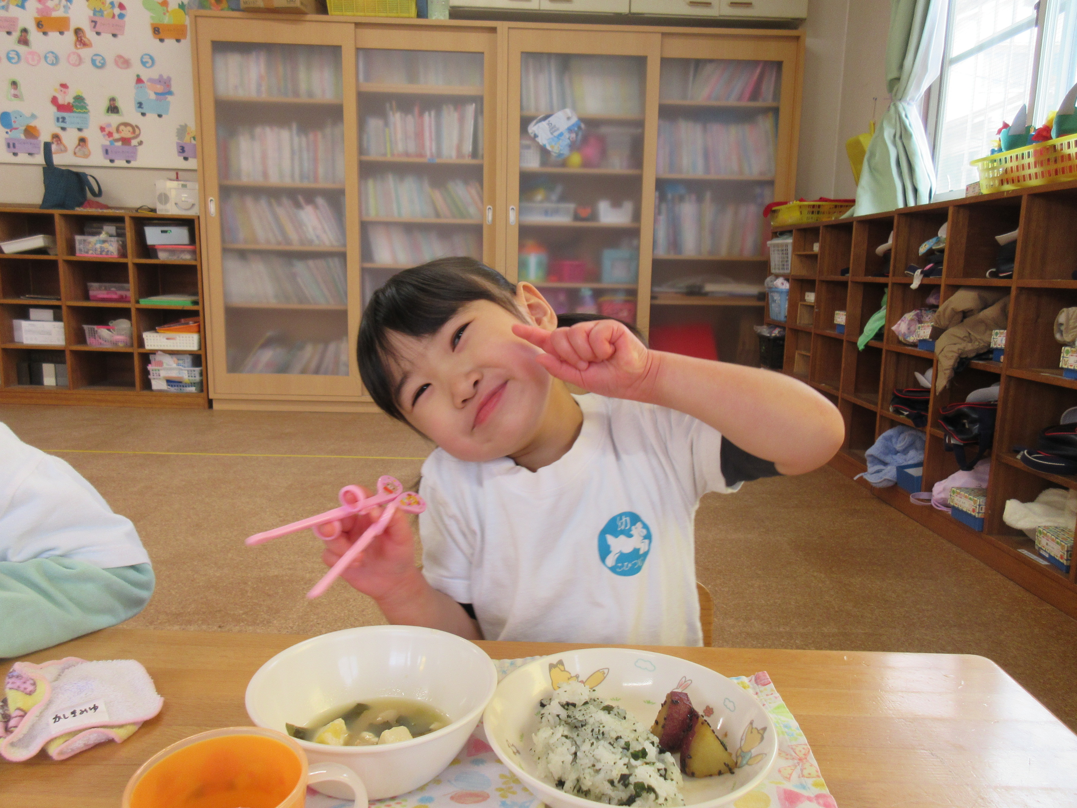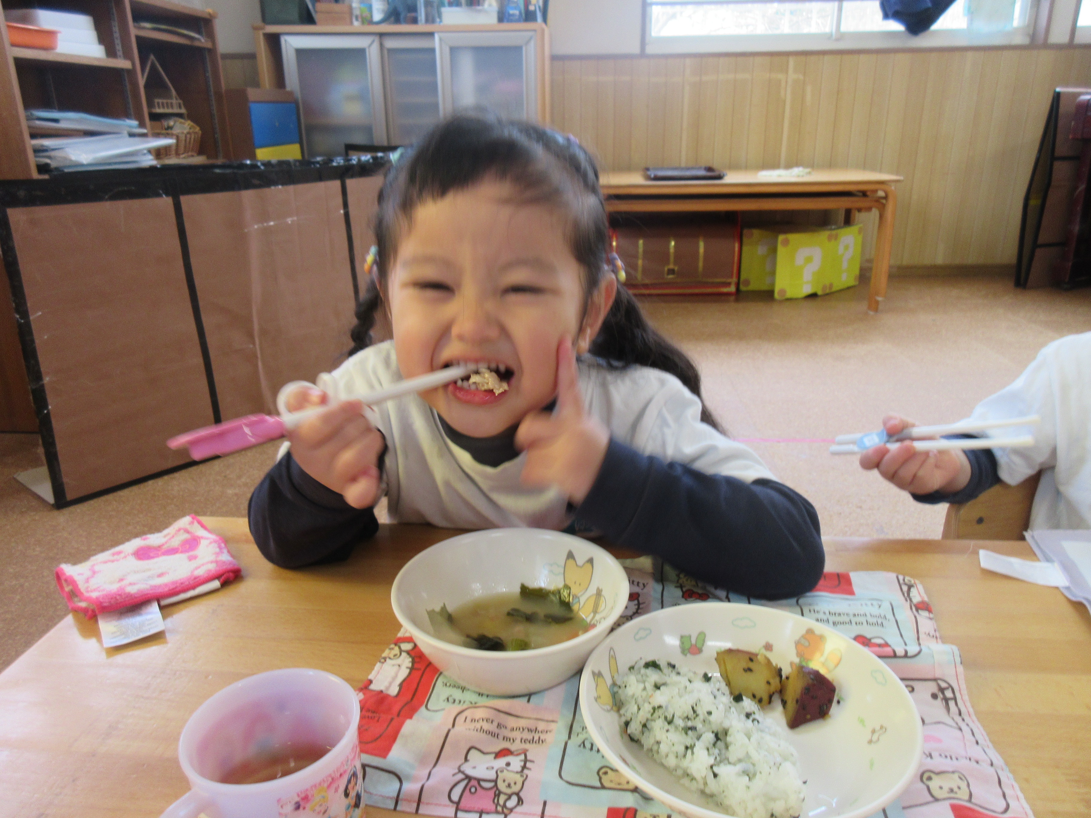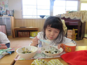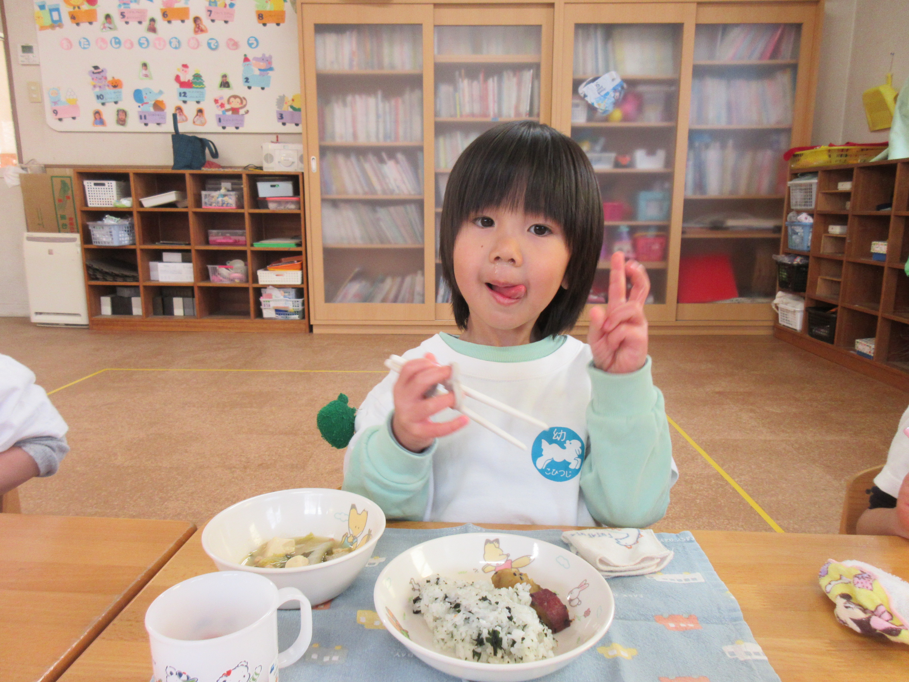 今日の給食です!とっても食べ終わるのが早くキッチンの先生も驚いていました(^^)/美味しかったね!