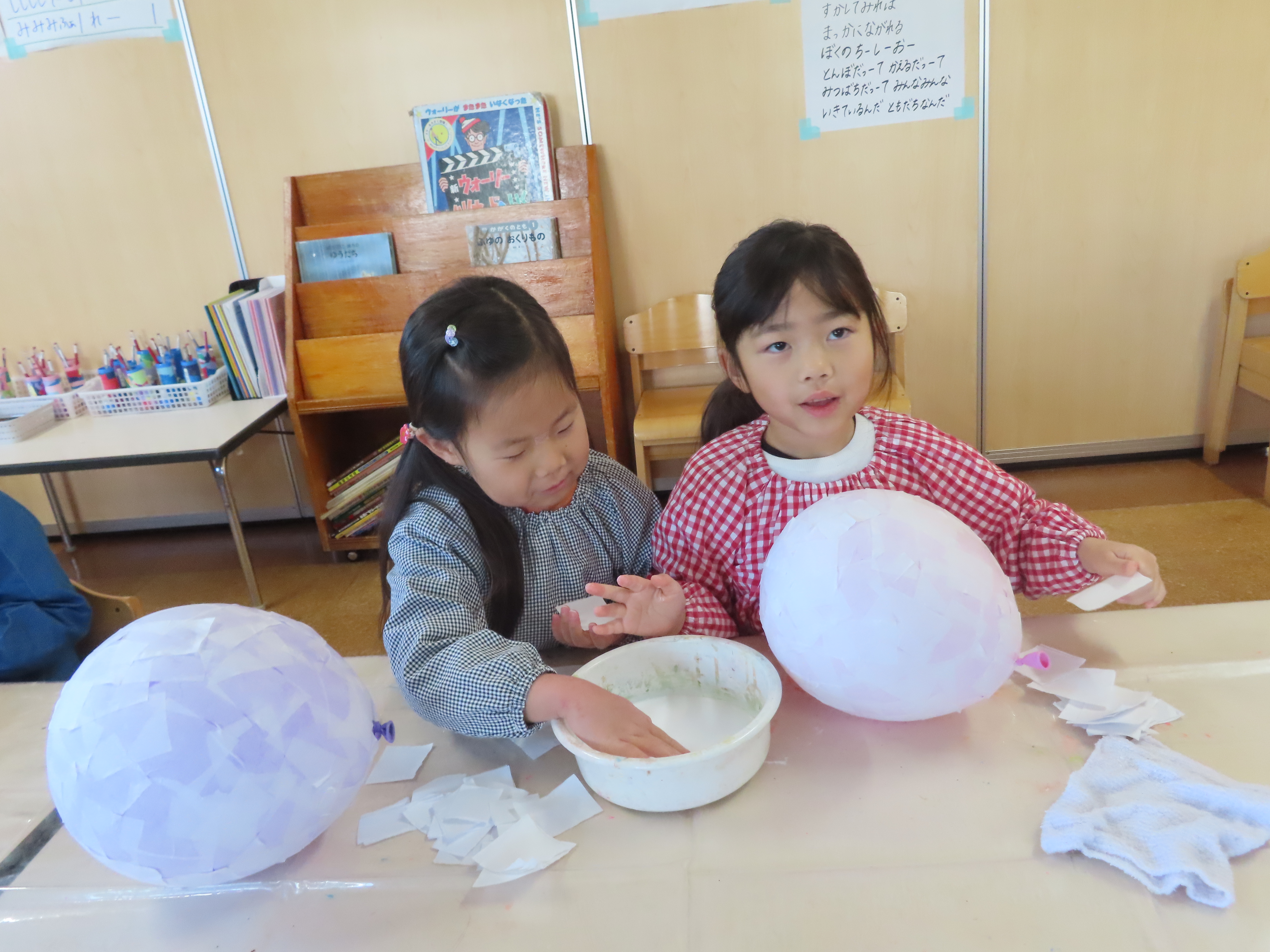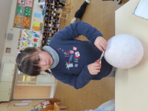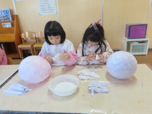 風船をかわかして・・・2回目です。「えー固まってるわー」「すごー」といいながら慣れた手つきで貼ってくれました。