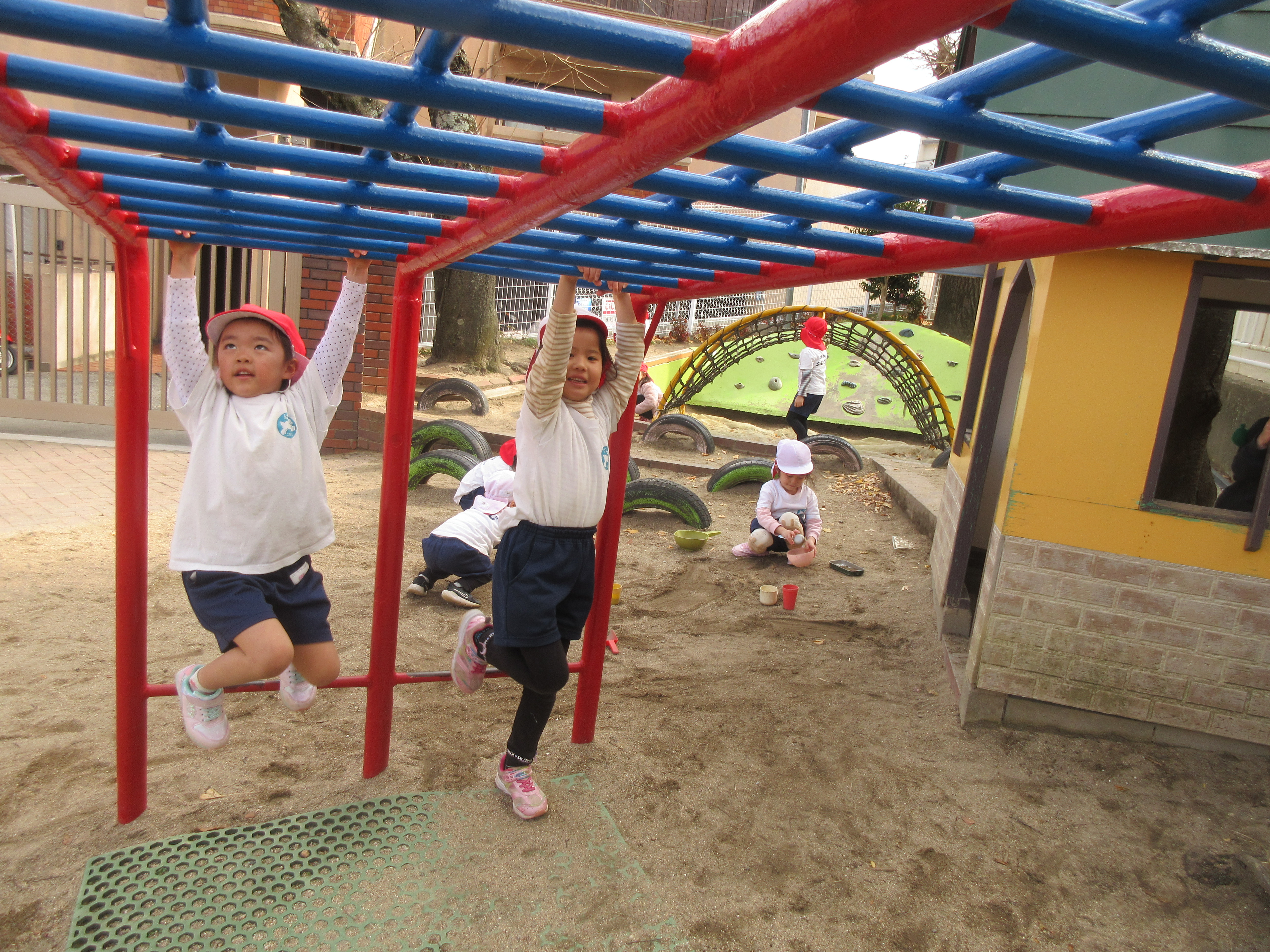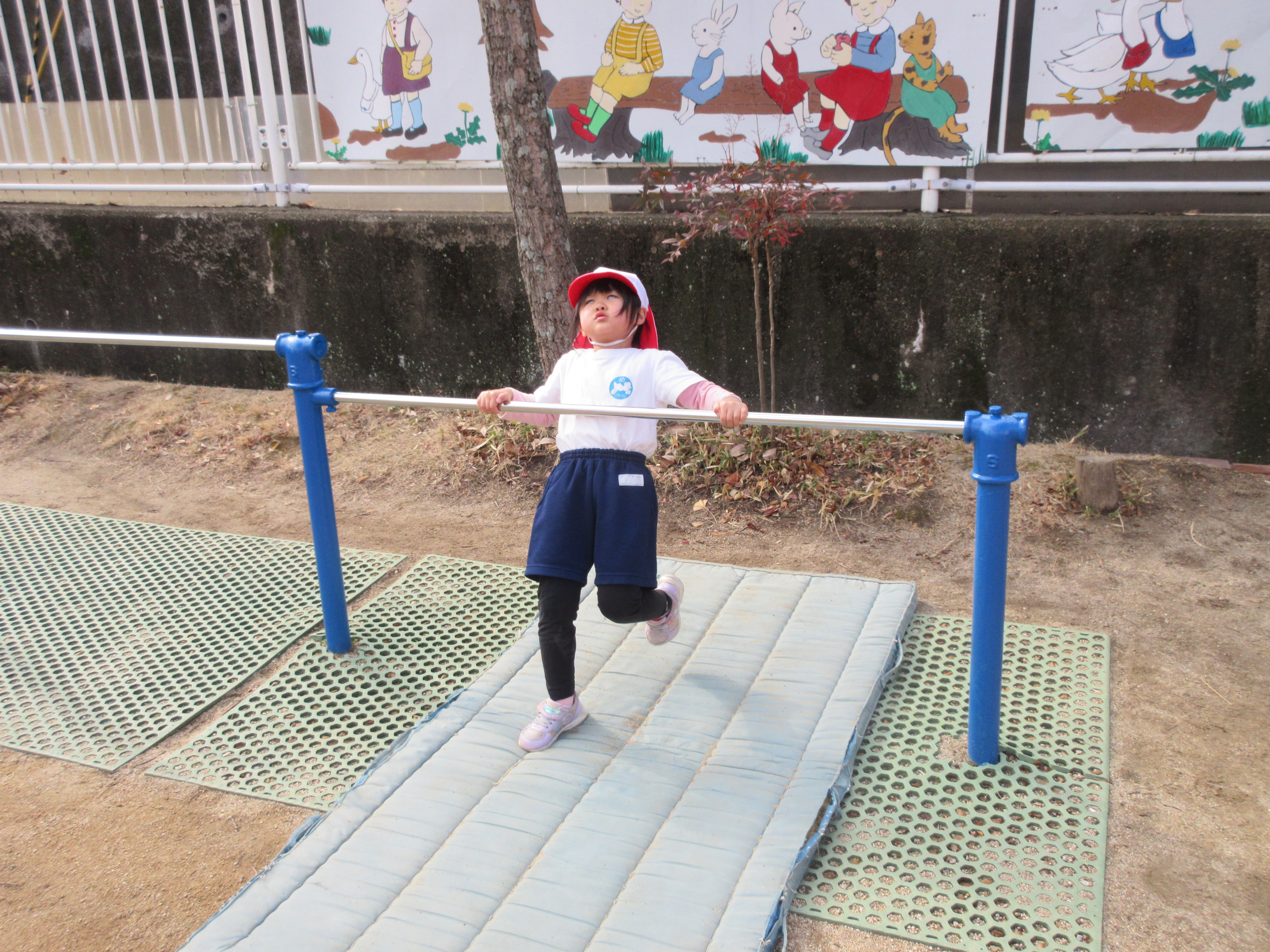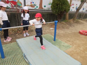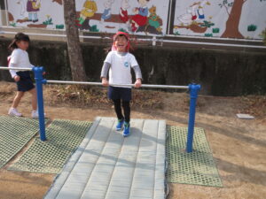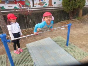 鉄棒では自分のできない技を練習したり、できる技を繰り返ししてみたりといろんな技ができるようになりました(^^♪