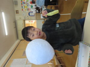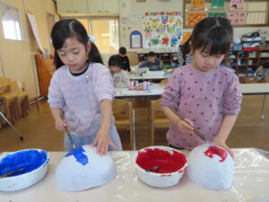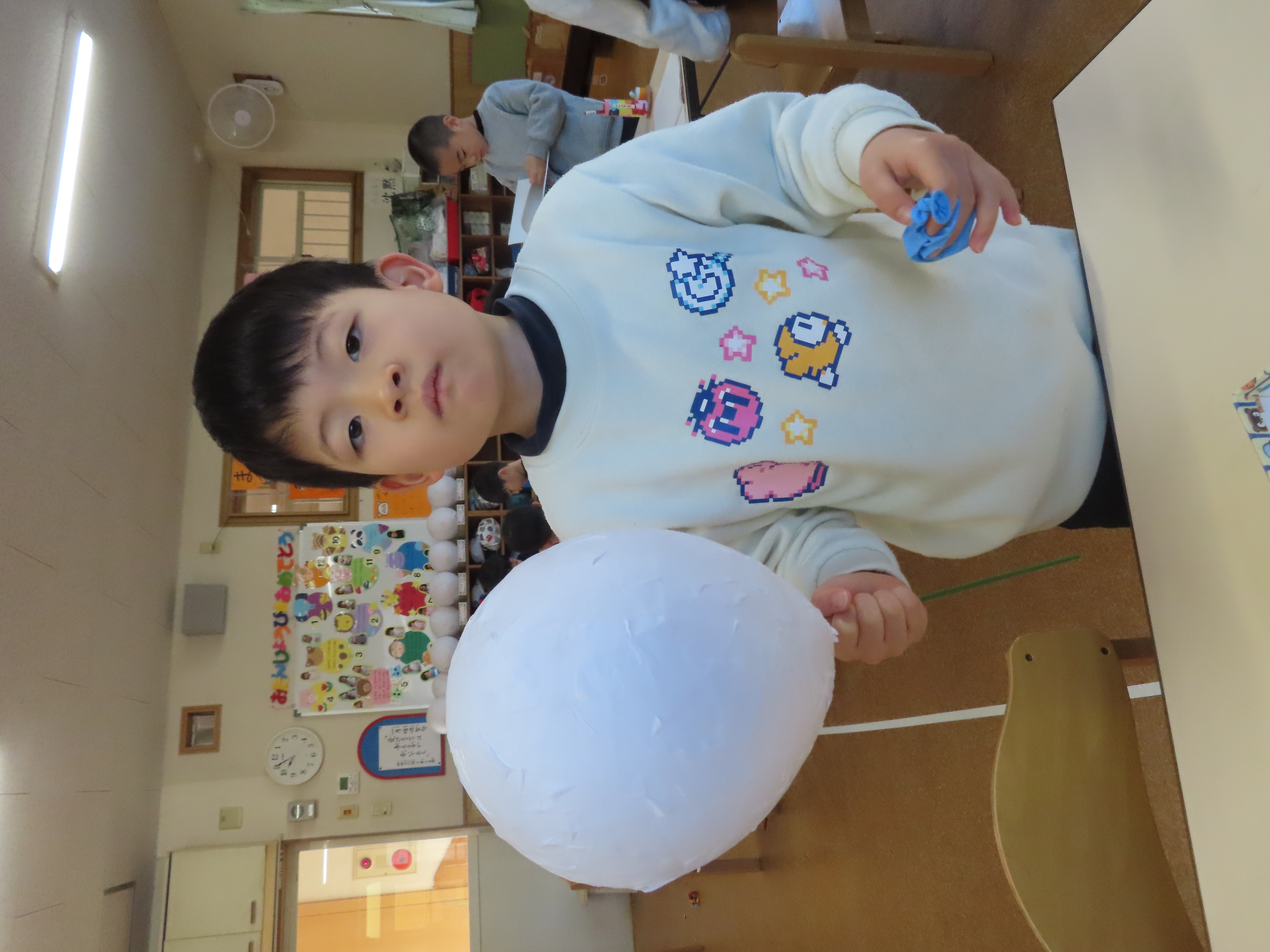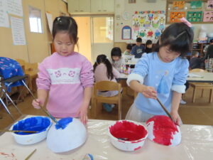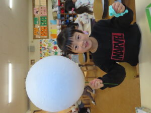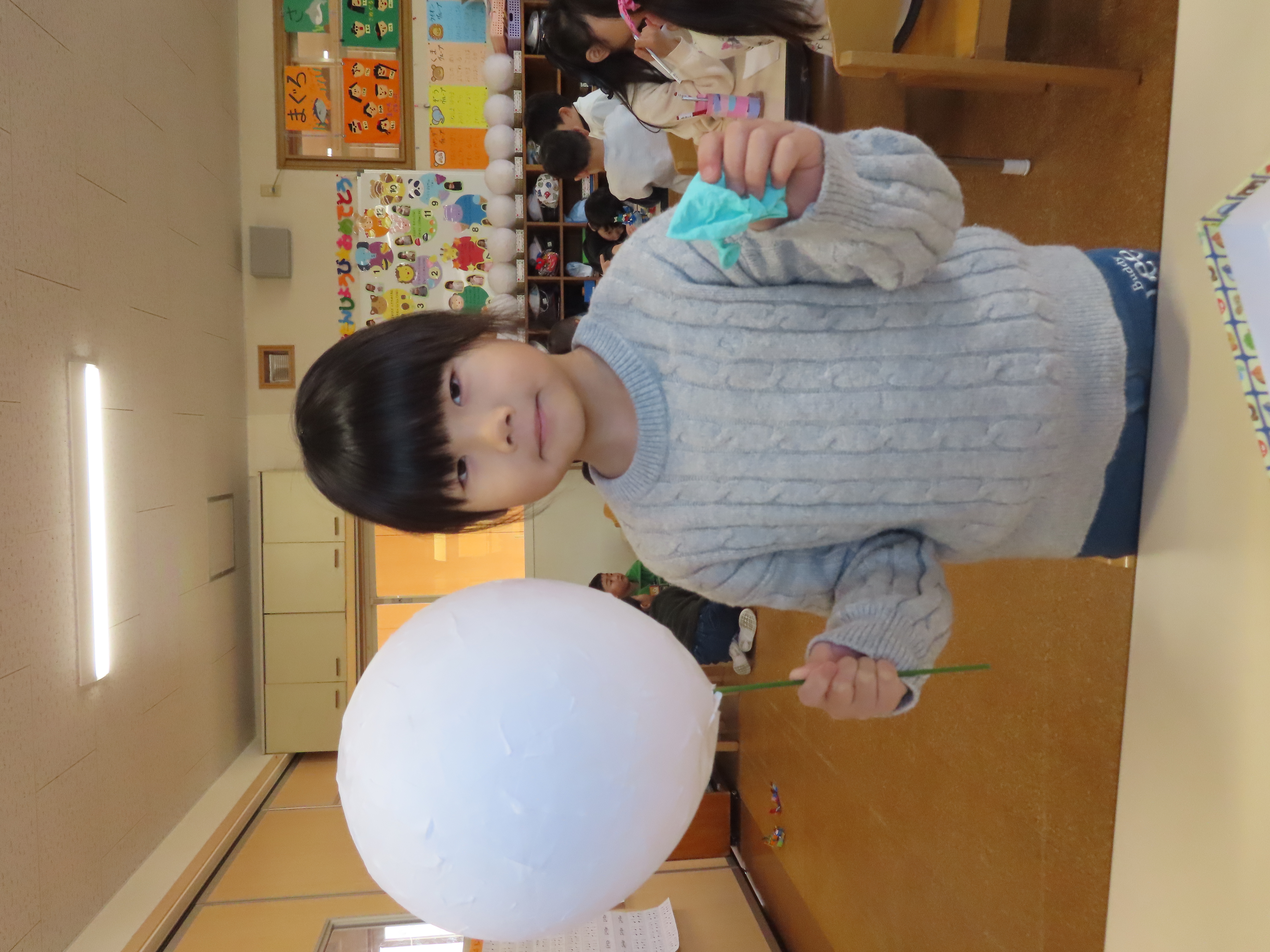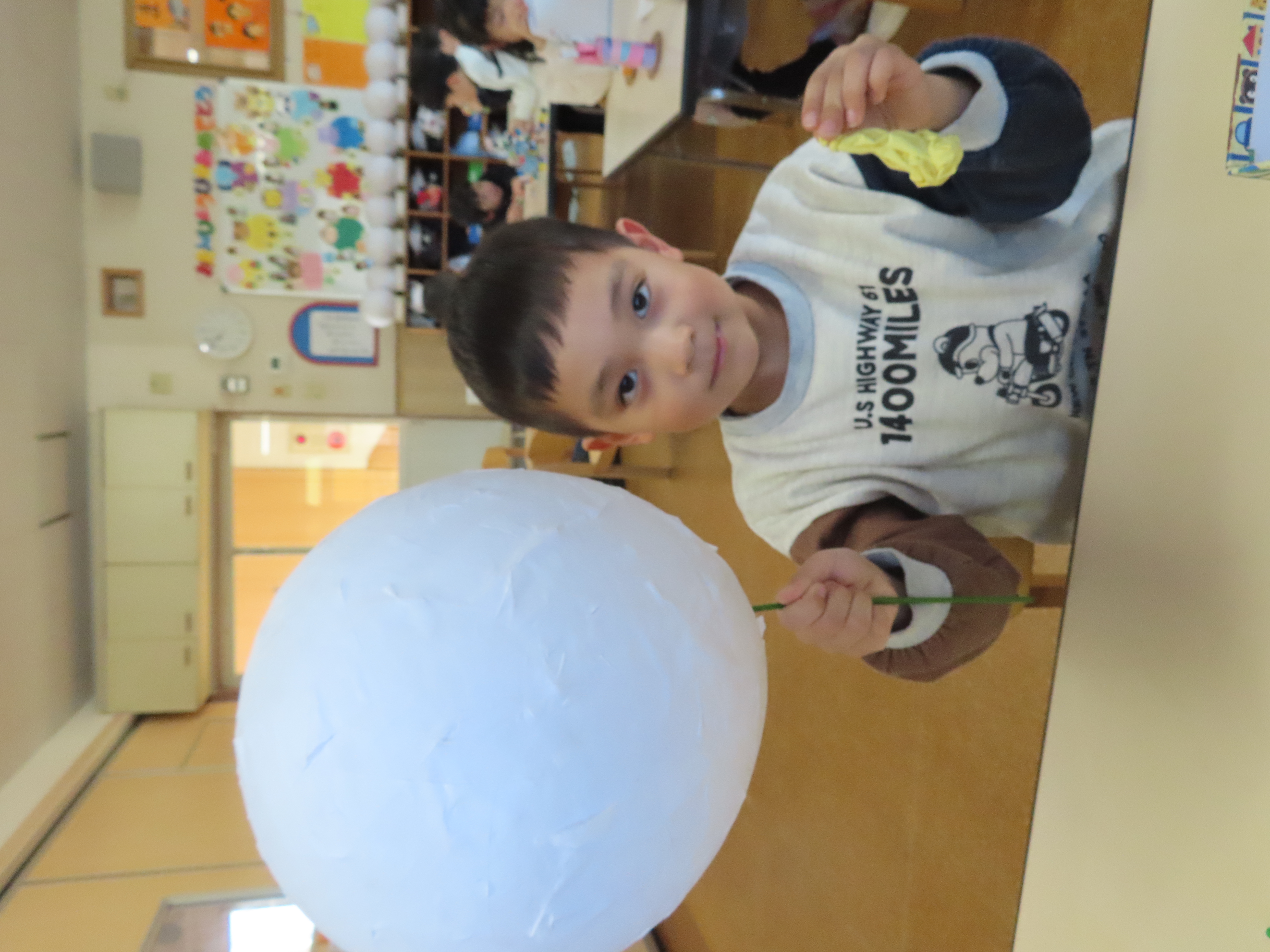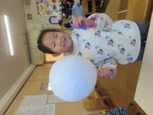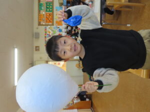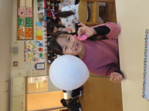 先日に引き続き鬼面の風船はがし。「なんかメリメリ音がするなぁ~」「もうすぐとれるわ」と楽しそうでした。