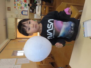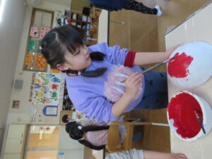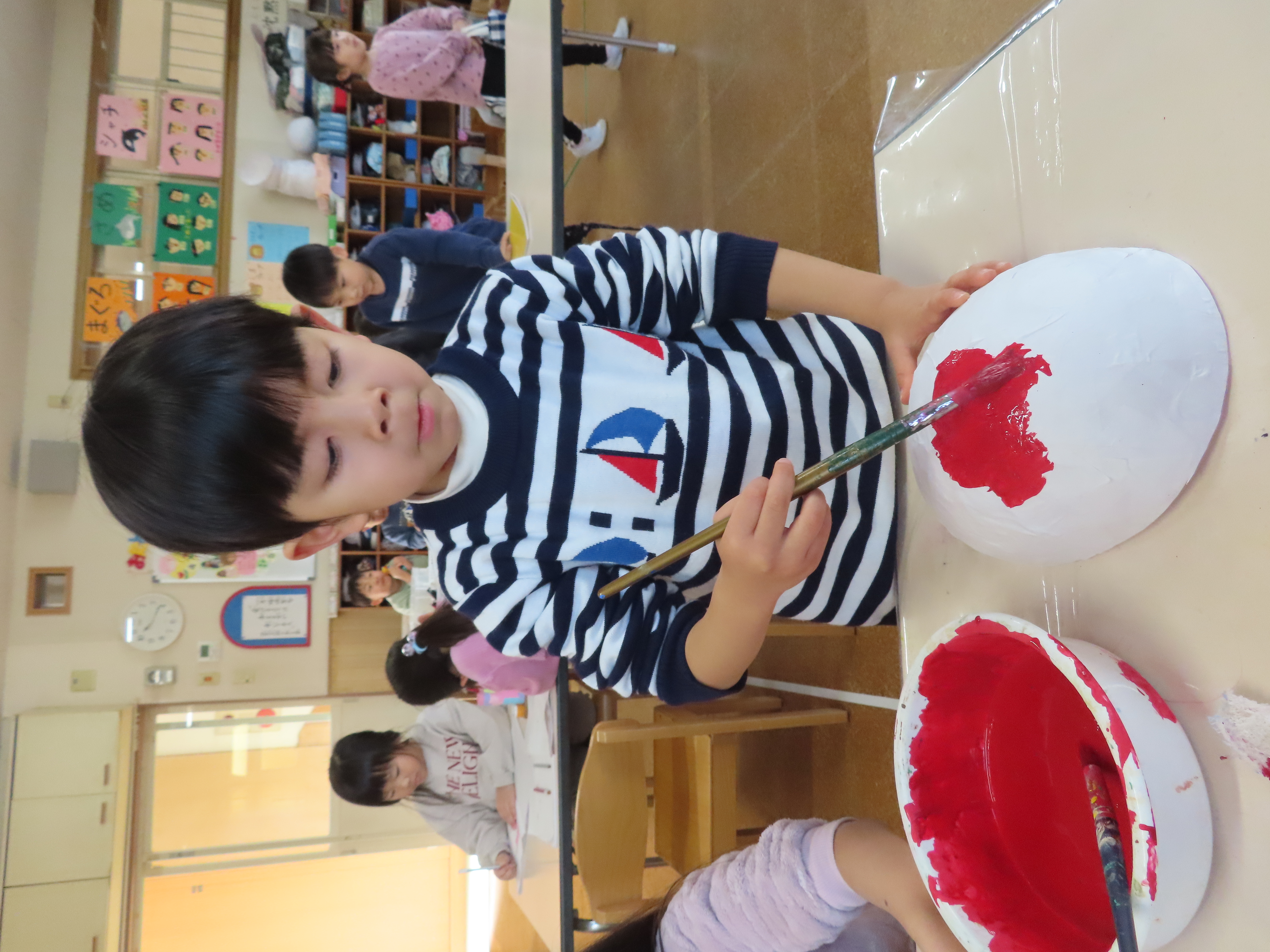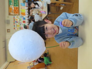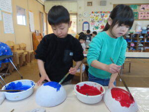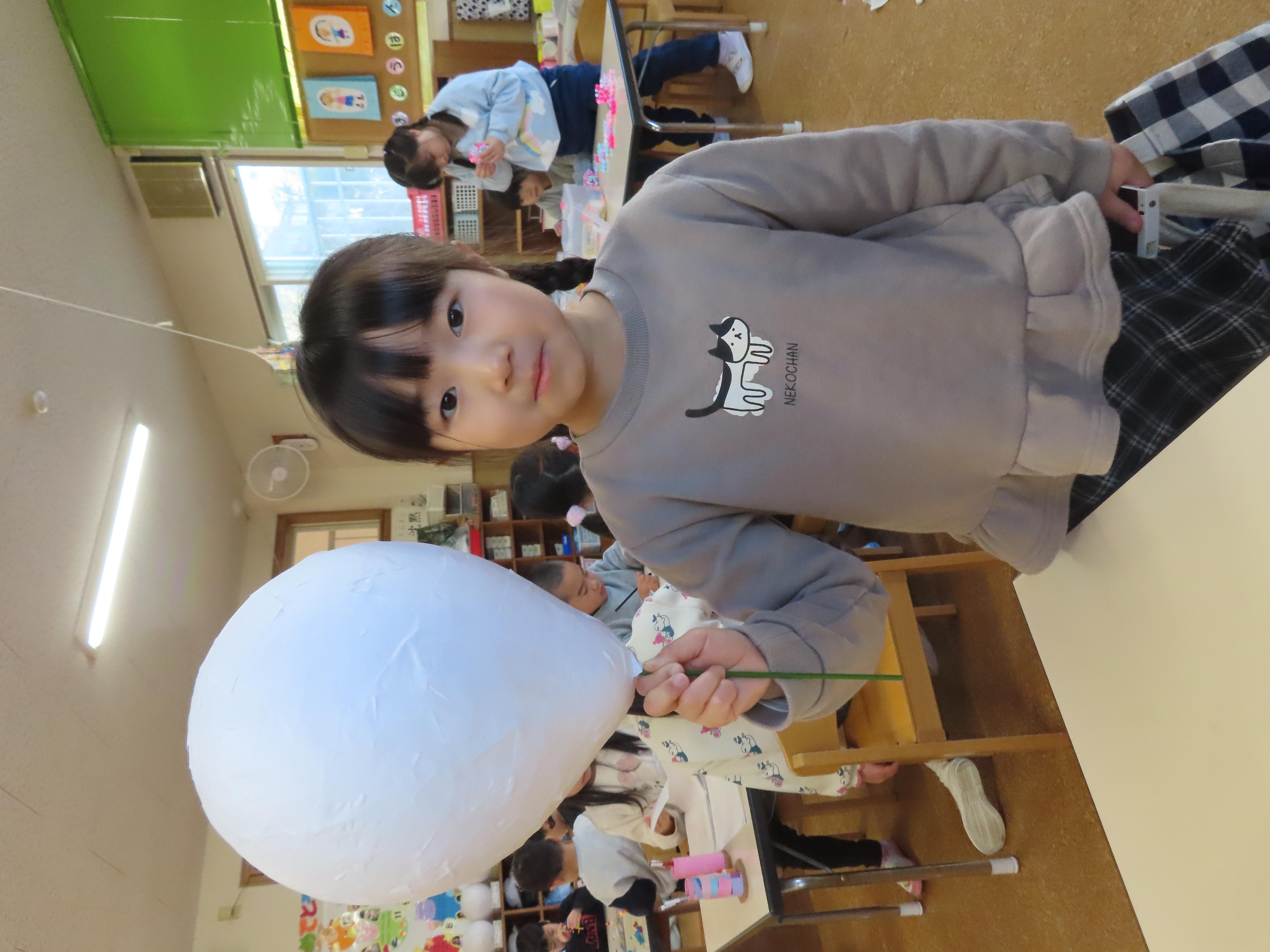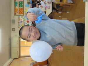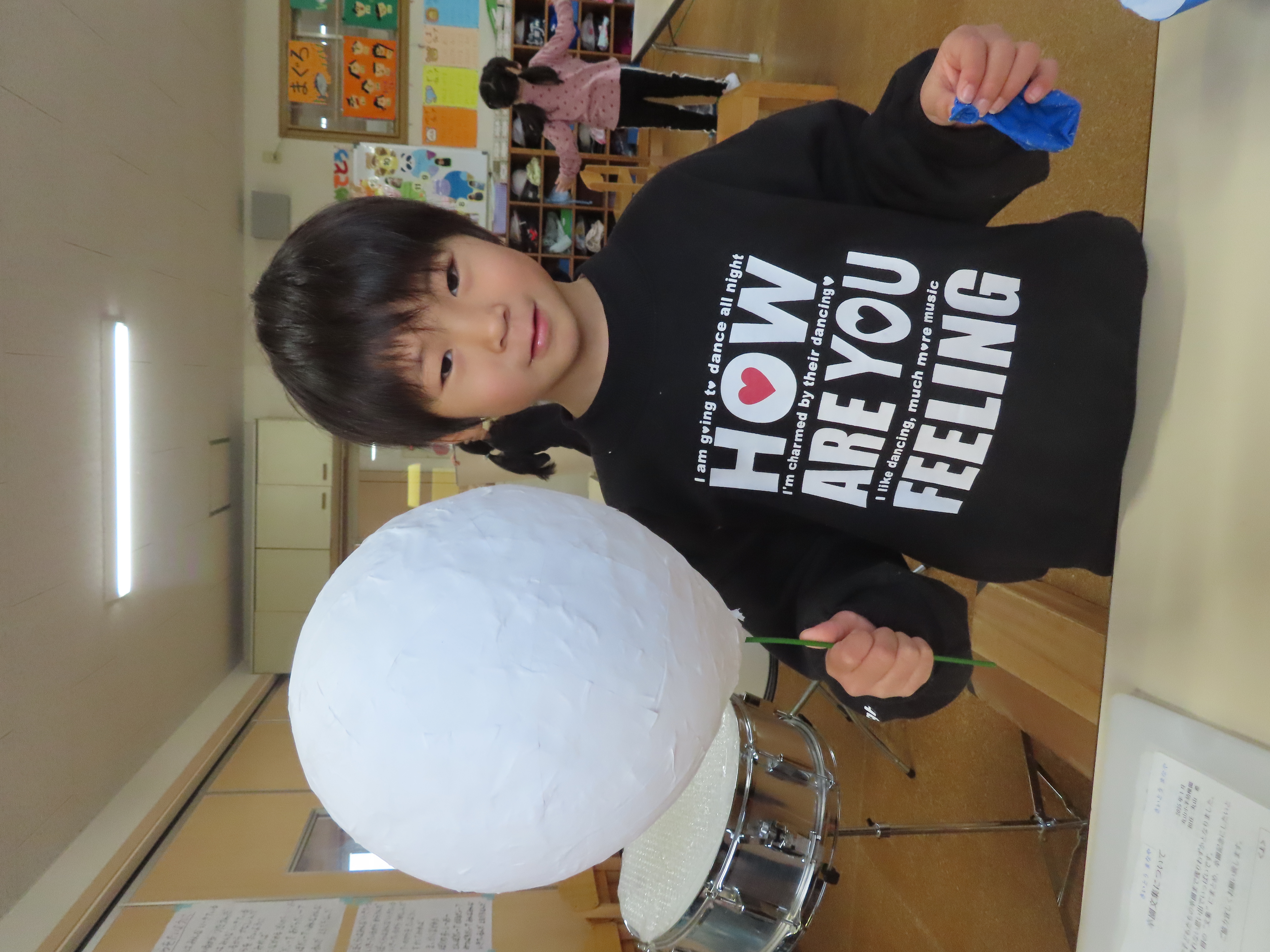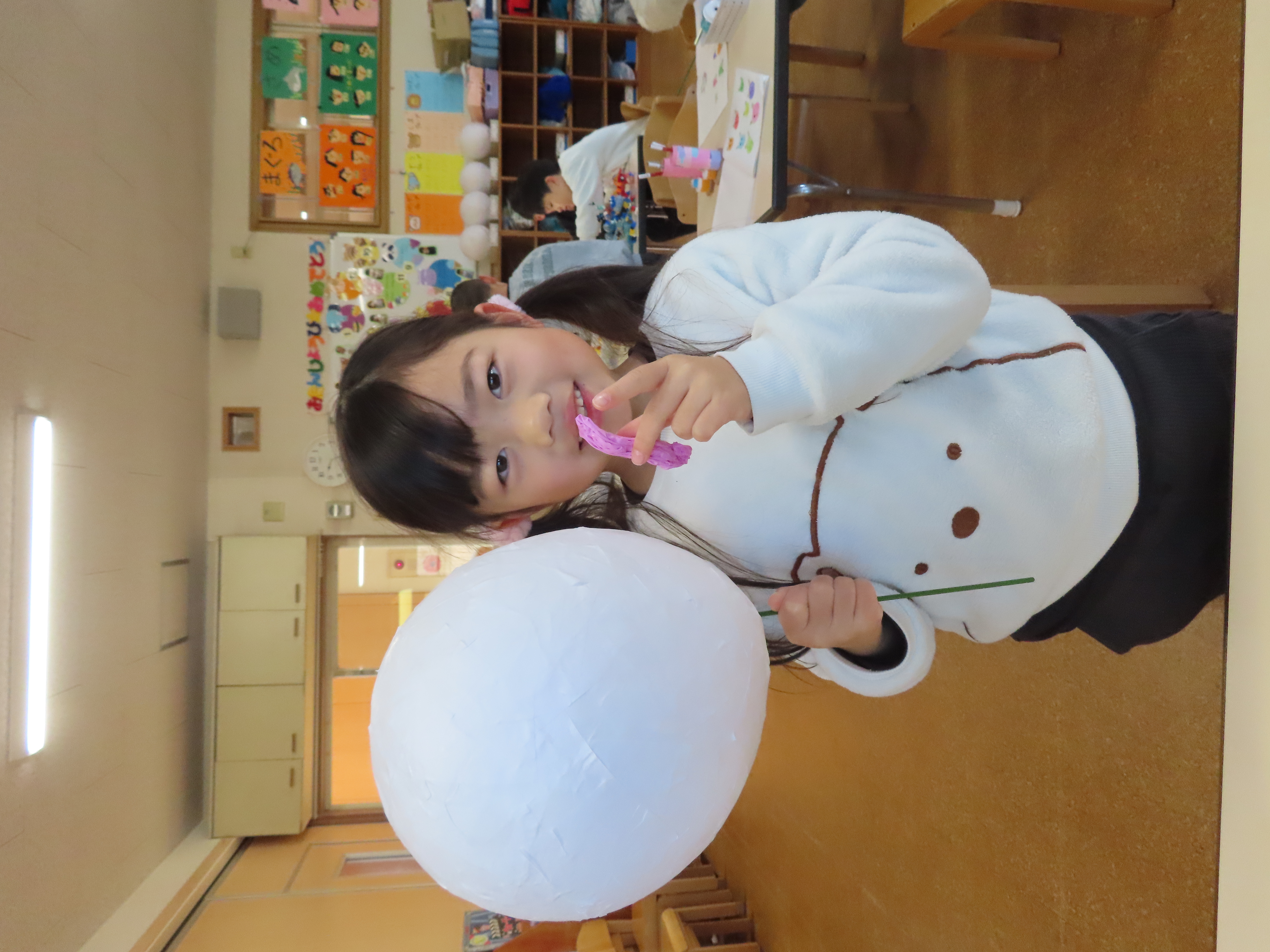先日に引き続き鬼面の風船はがし。「なんかメリメリ音がするなぁ~」「もうすぐとれるわ」と楽しそうでした。