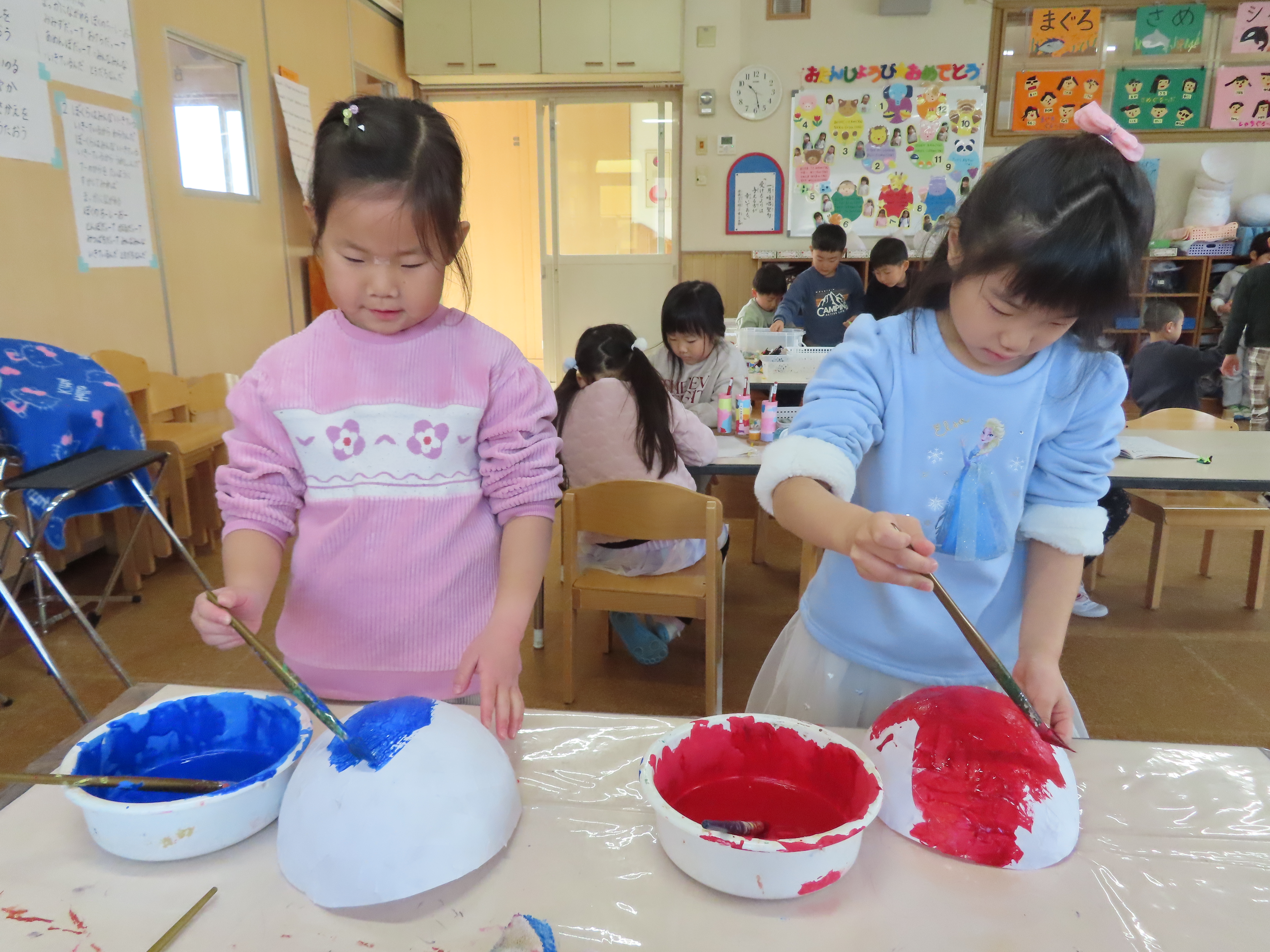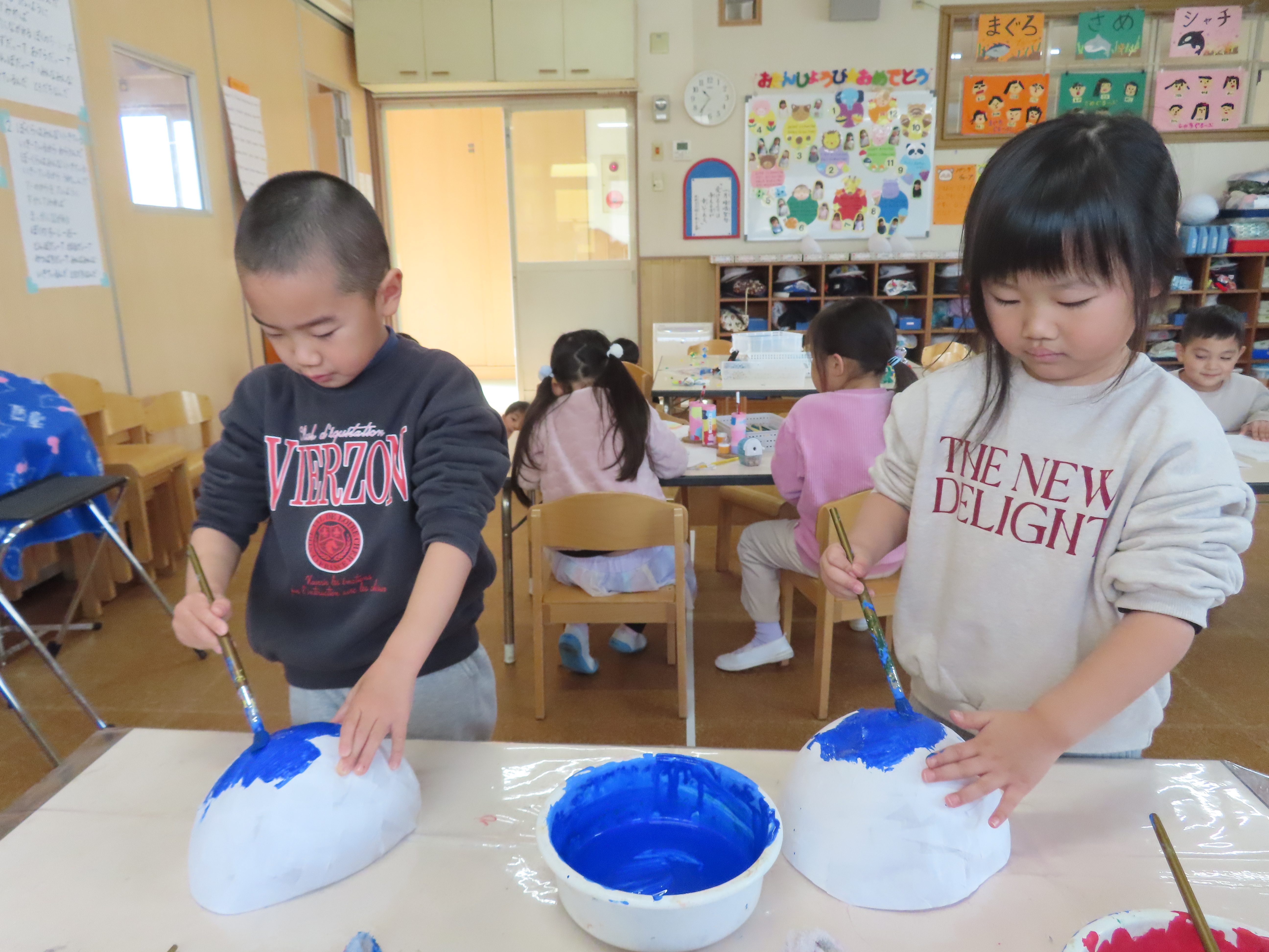 子どもたちも今日は、お休みなしで全員揃いました。子どもたちもお休みのお友だちがいなくて、嬉しそうでした。
