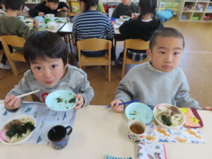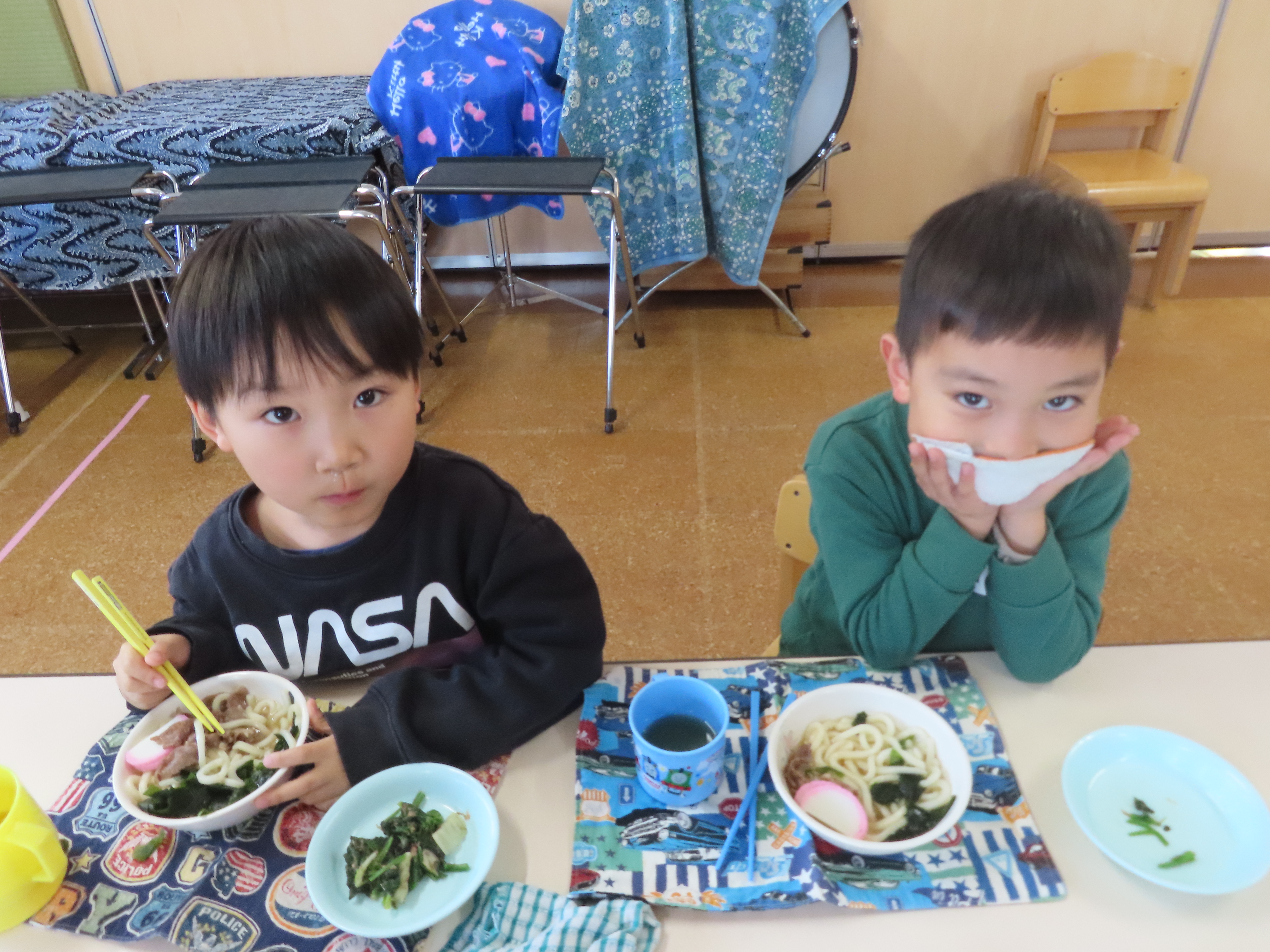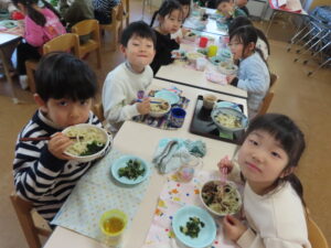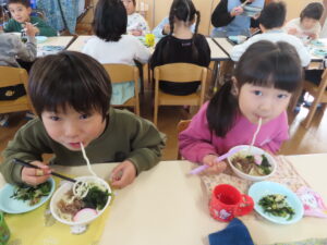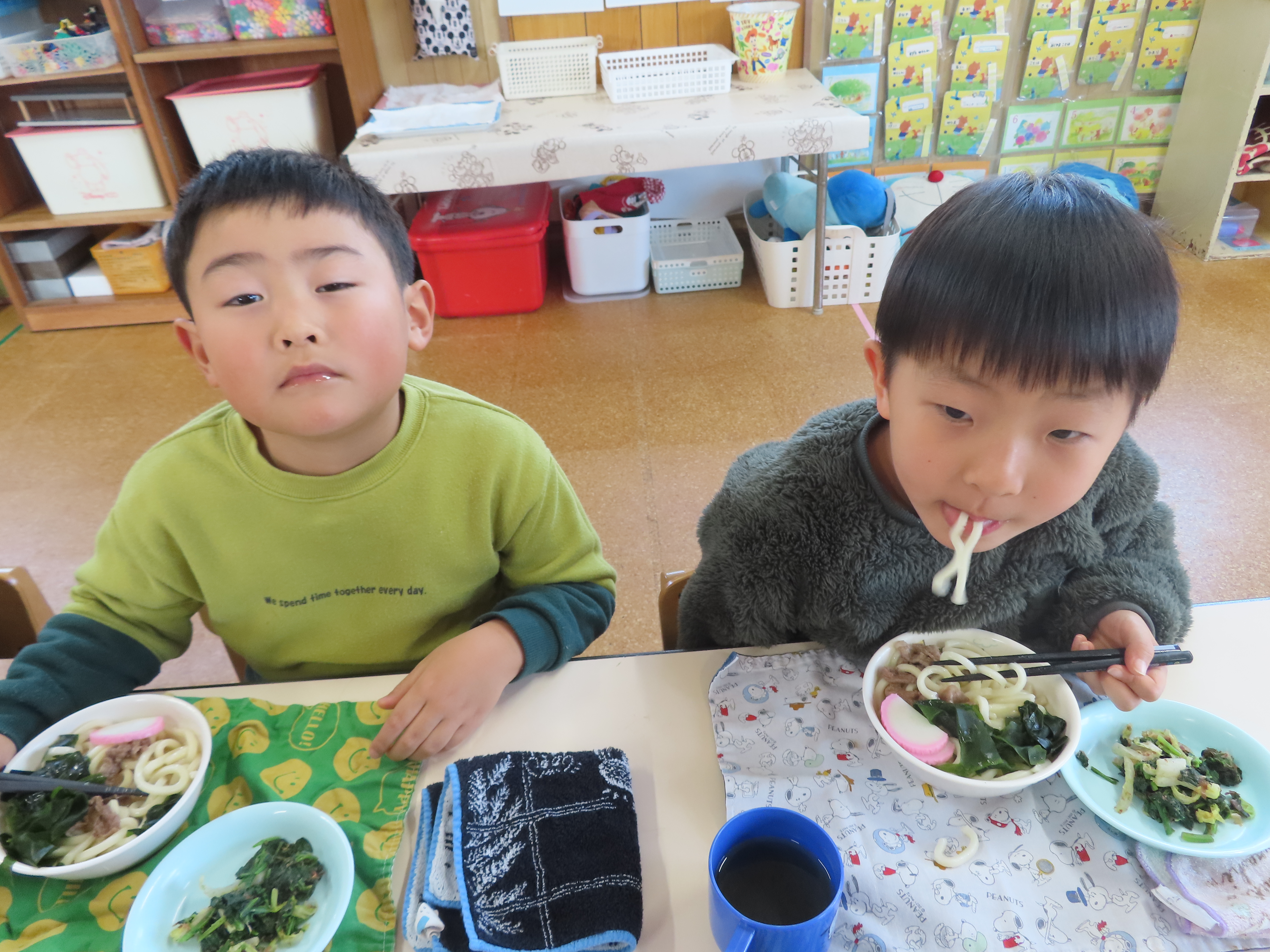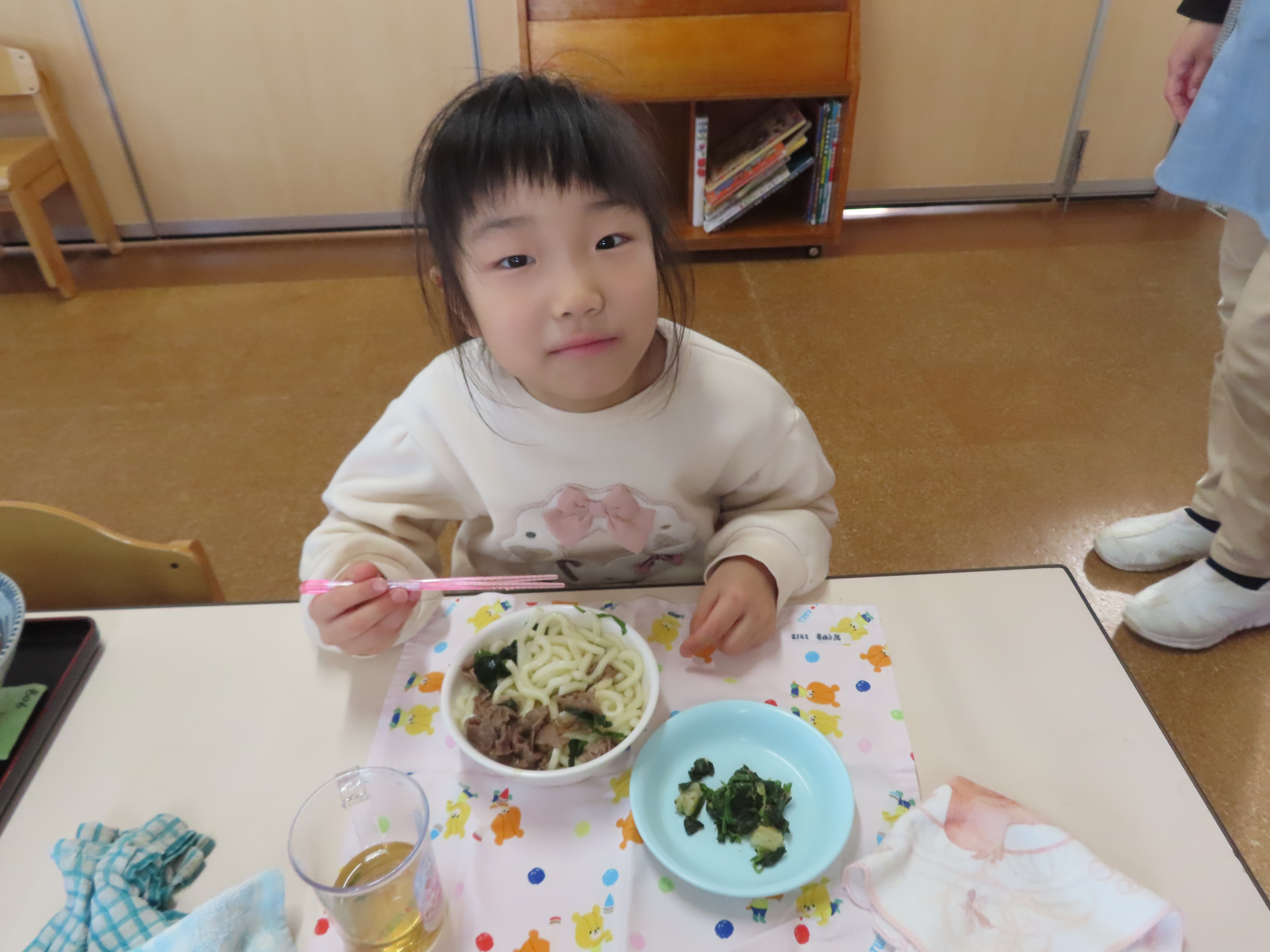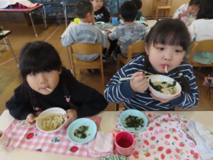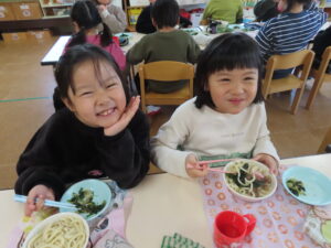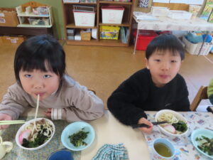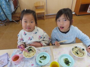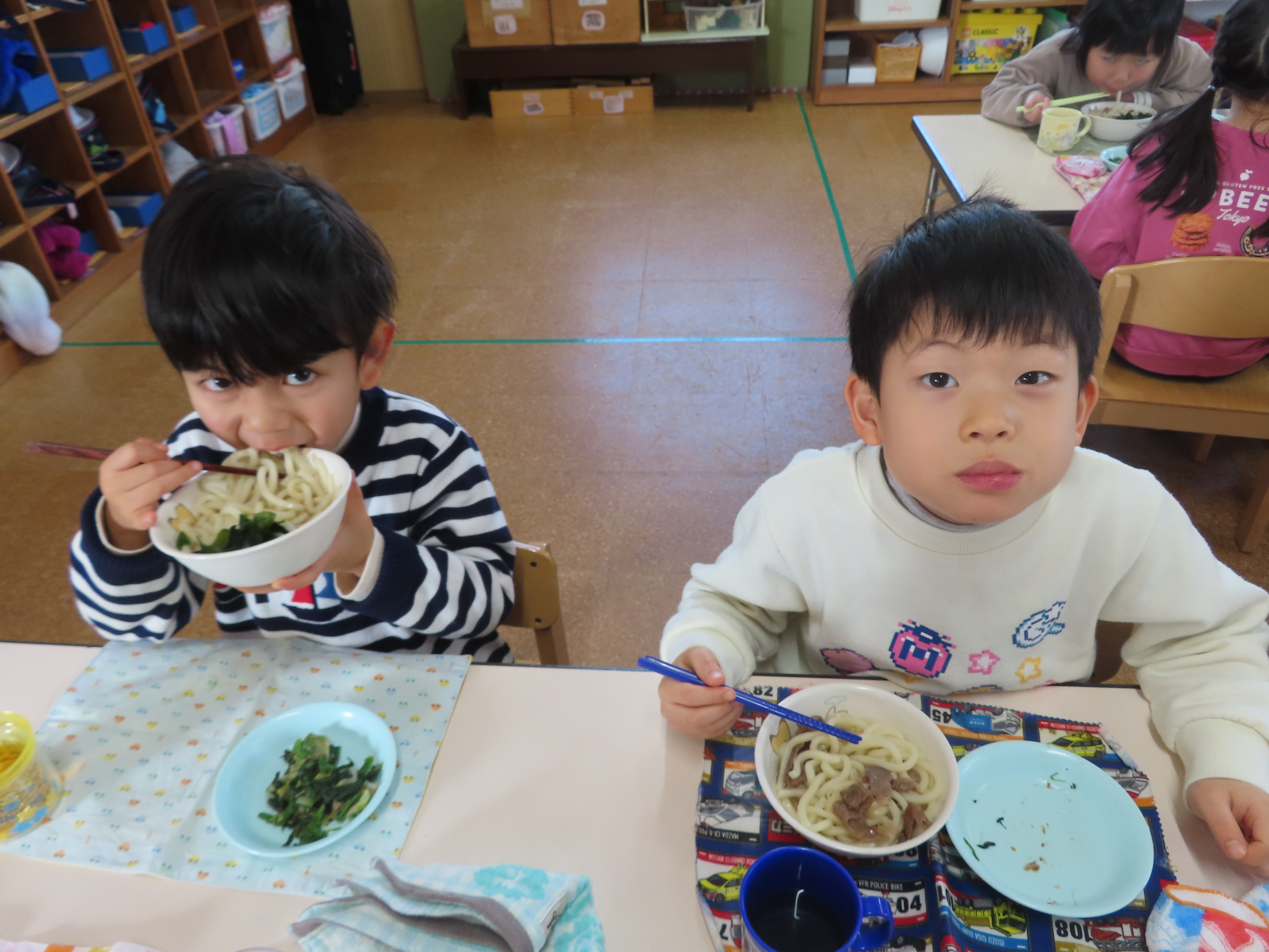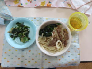 今日はおうどんだったので、子どもたちも頑張って食べていました。