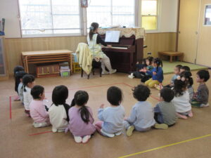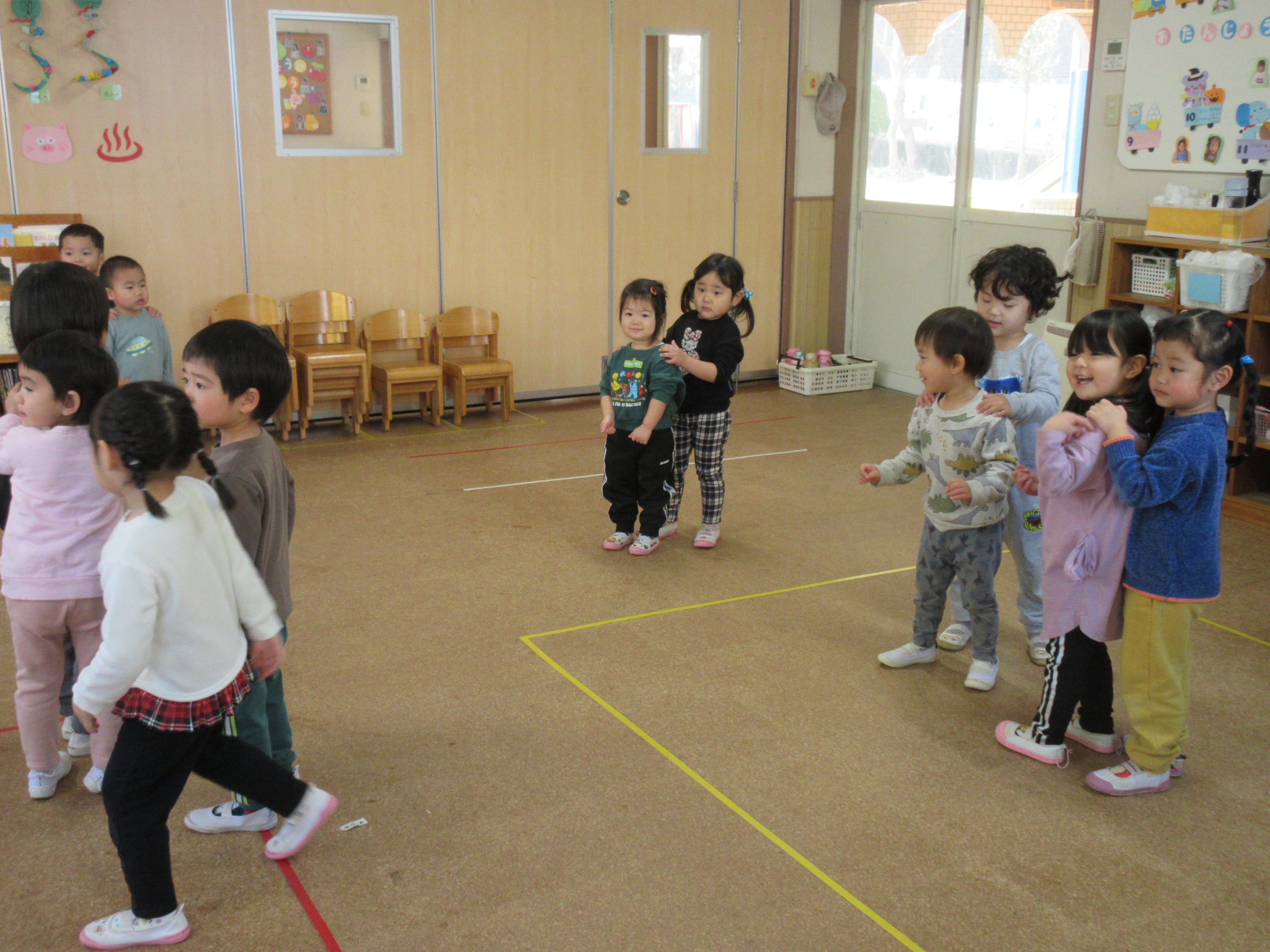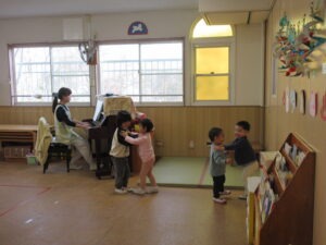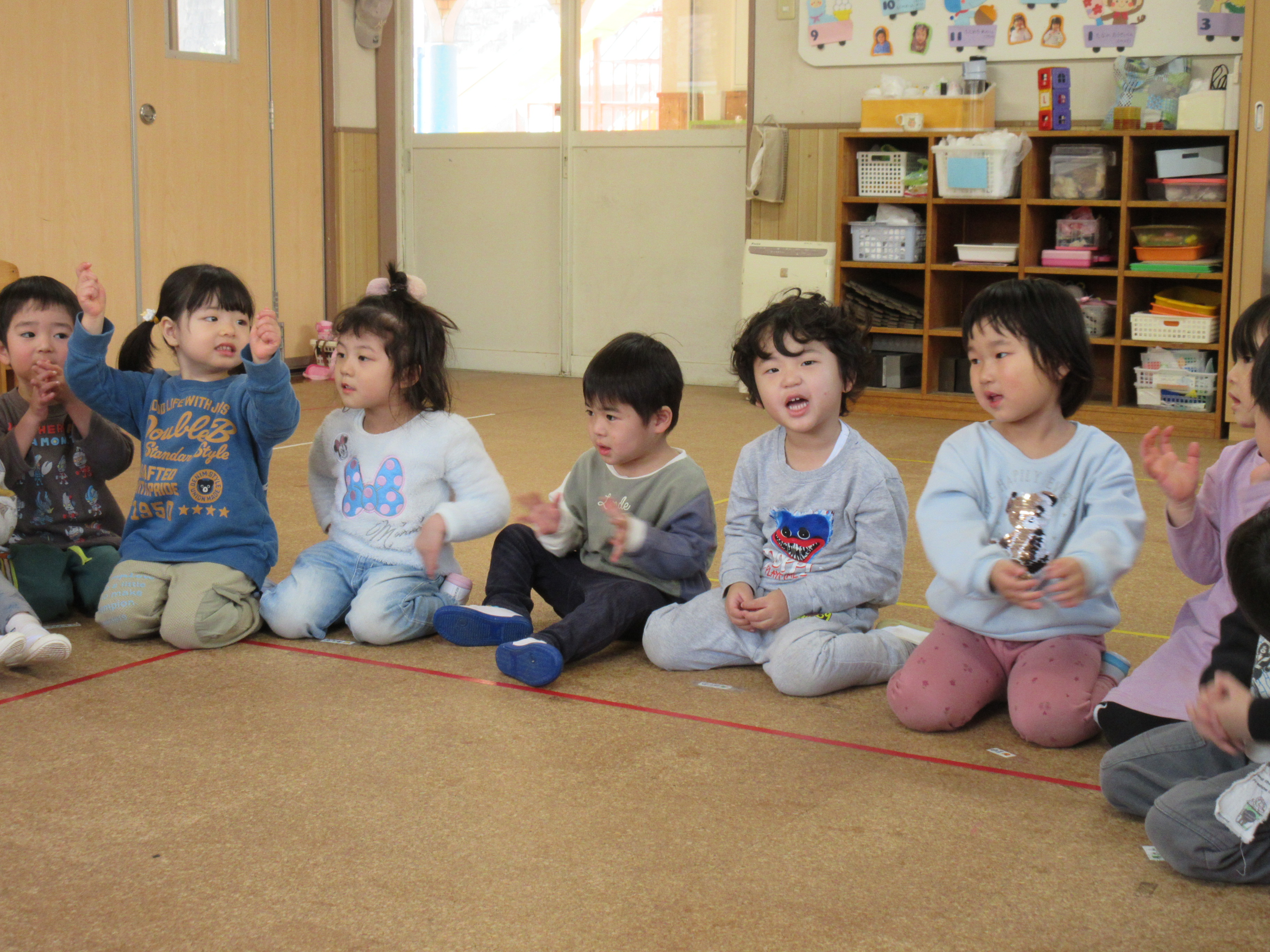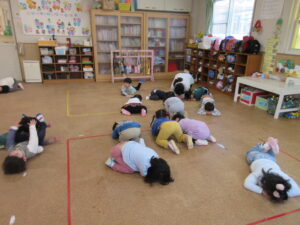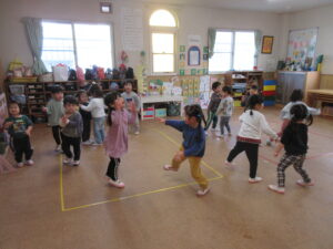 お部屋ではリトミックやお集まりをしました(^^♪