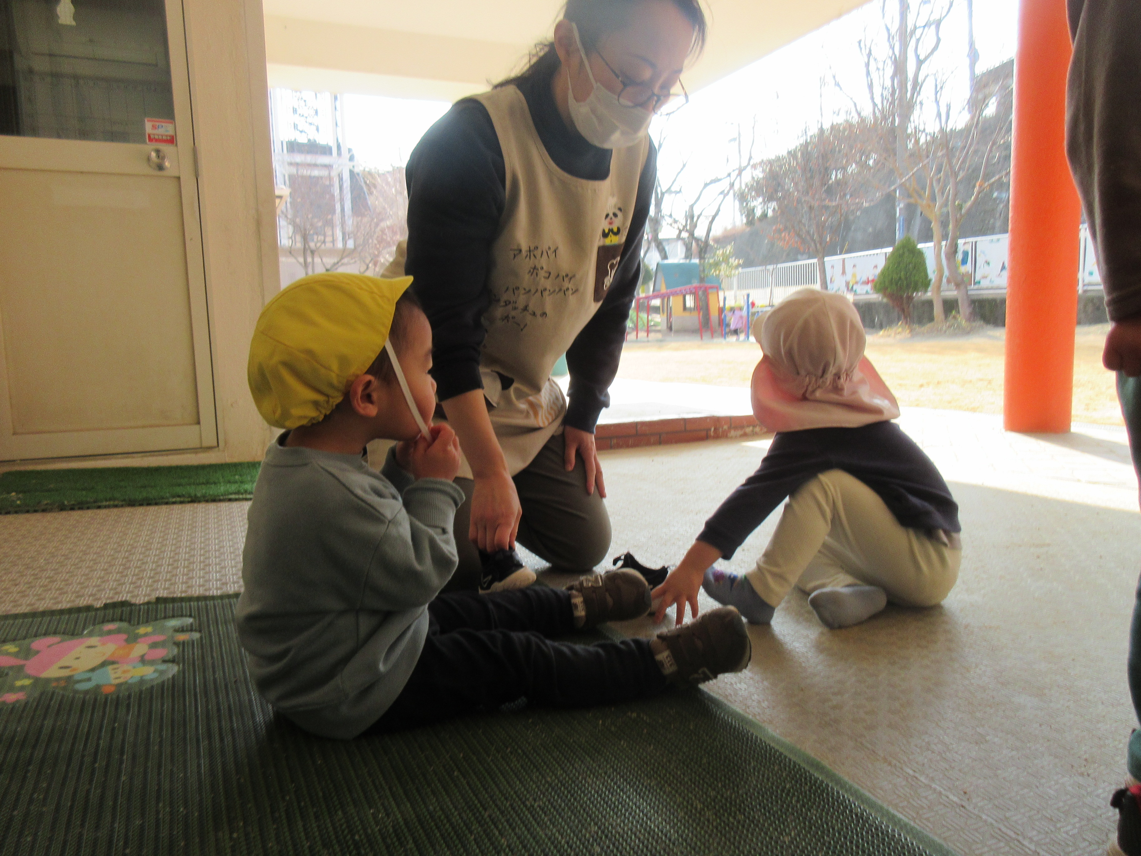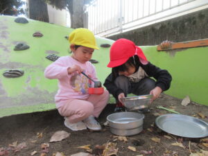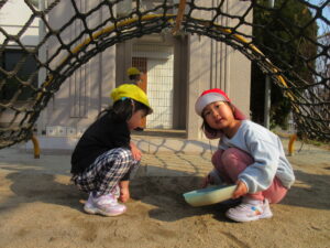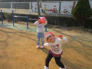 お外では、お砂遊びやボール遊び好きな遊びを見つけて楽しみました♡お部屋に戻る前に少しマラソンもしました(^^♪マラソン後は体がポカポカしている子どもたちでした🎵