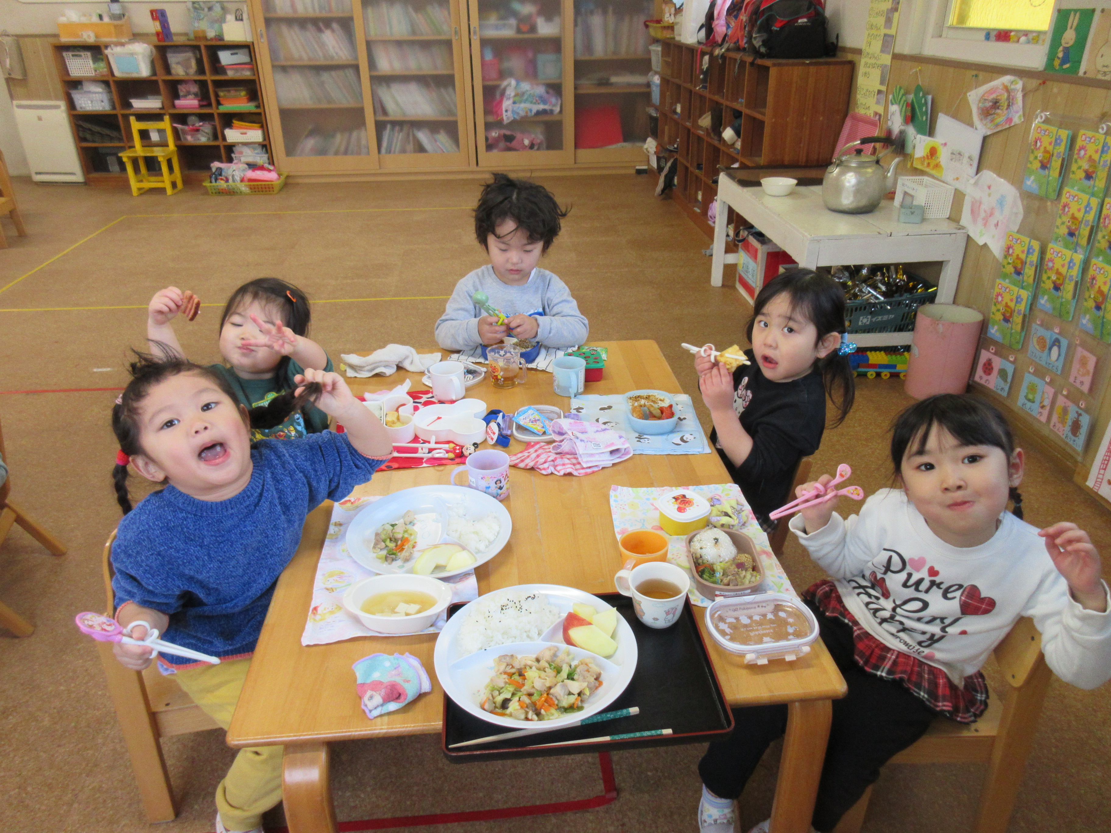 お弁当も給食もみんなで食べて美味しかったね(^▽^)/