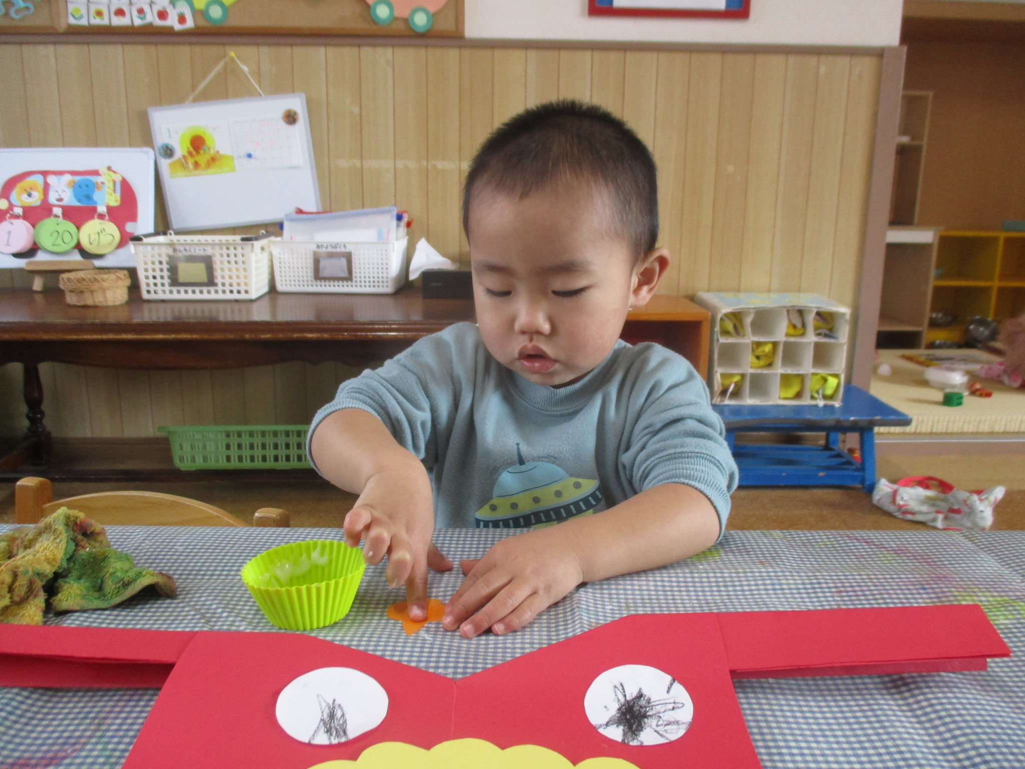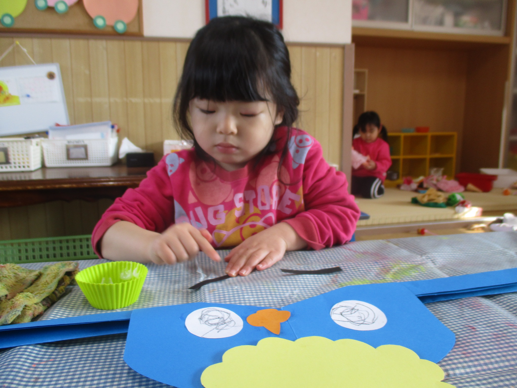 赤鬼・青鬼のどっちかを選んでお顔を貼りつけました👹