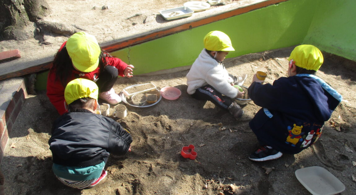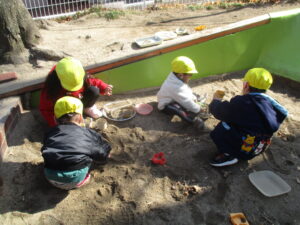 子どもたちはお外でもお部屋でものびのびと遊んでいました。お外遊びでは太陽が出ていたのでお砂遊びをしました!大好きなお砂遊びにみんな夢中で遊びこみ素敵なお料理を食べさせてくれました!お部屋遊びではお友達やお兄さんお姉さんたちと一緒に遊びました。