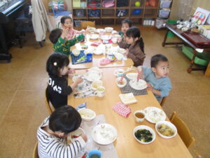 水曜日からひよこ組の子どもたちは年少組に向けて午睡をやめて遊んで過ごそうと思います。その分お家で疲れて寝ることもあるかと思いますがご協力をお願いします。週末などこどもたちが疲れていたら幼稚園で午睡しようと思います。ご相談がありましたらお声掛けください。