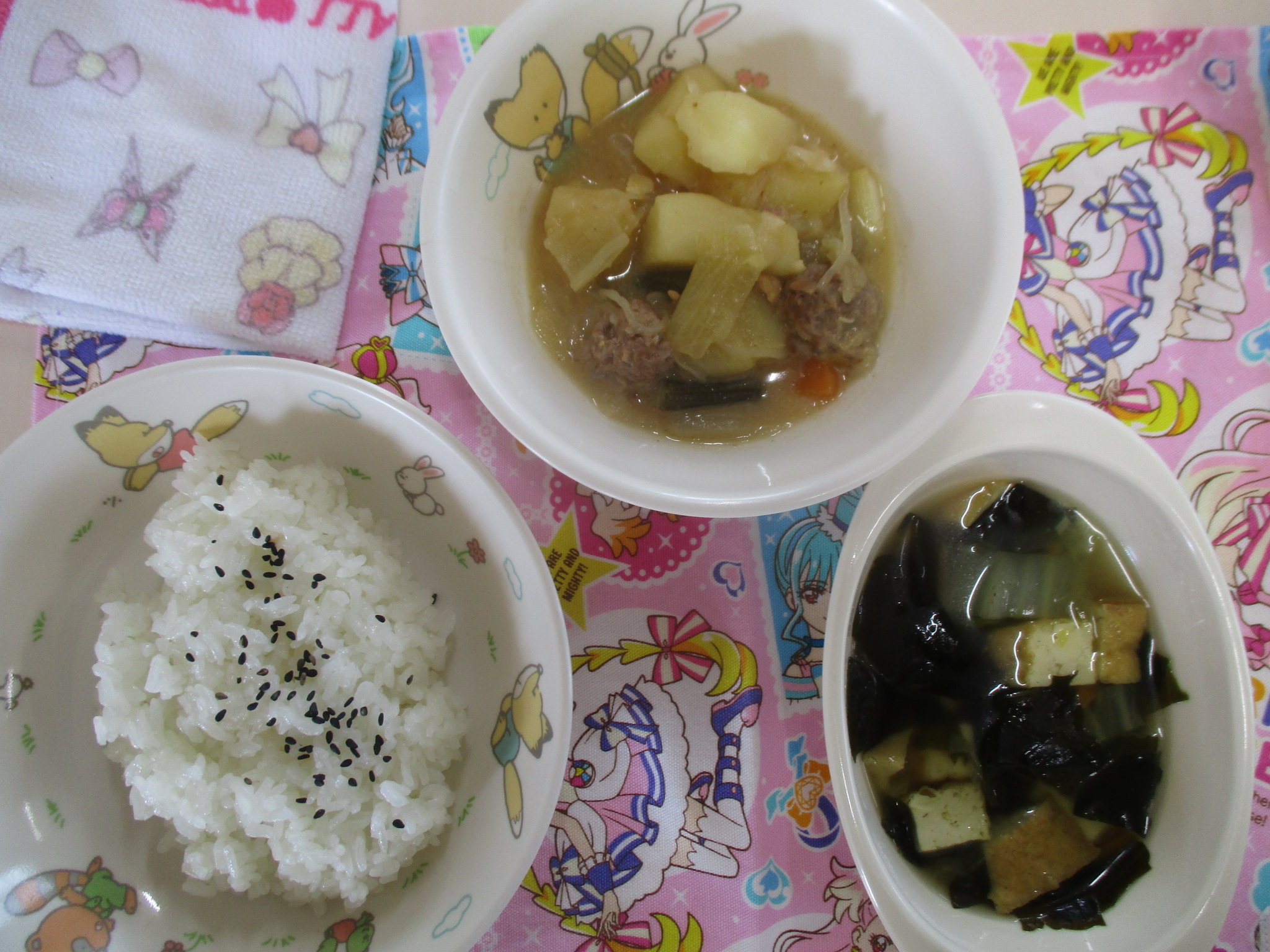 今日の給食はごはん・すまし汁・味噌肉じゃがでした。