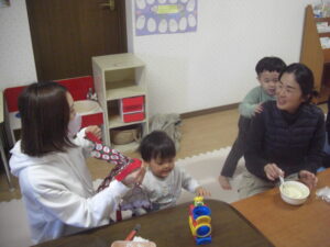 バレンタインは、愛を伝える日♡先生たちは、たまごクラブのみんなのこと、ママたちのことが、だ~~~い好き♡バレンタイン当日に、愛おしい時間を過ごせたこと♡感謝です♡クッキングのご協力ありがとうございました♡再来週は、お雛様作りを予定しています♡みんなで一緒に作れますように♡楽しみにしています(^^)
