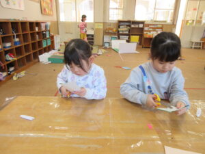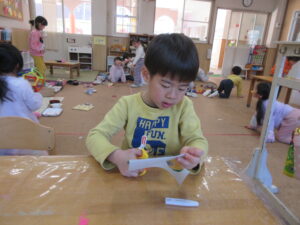 ハサミも文字を書くことも上手になりました。また、一つ一つの作業の時間も早くなり、成長を感じます✨