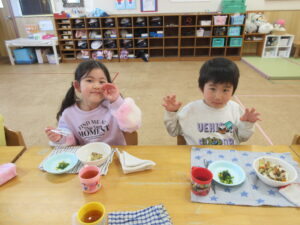 最近は時間内に全員が食べ終えることが多く、「ゆりさんやったら何時に食べ終わるの?」などとゆりさんに憧れているすみれさんです❤