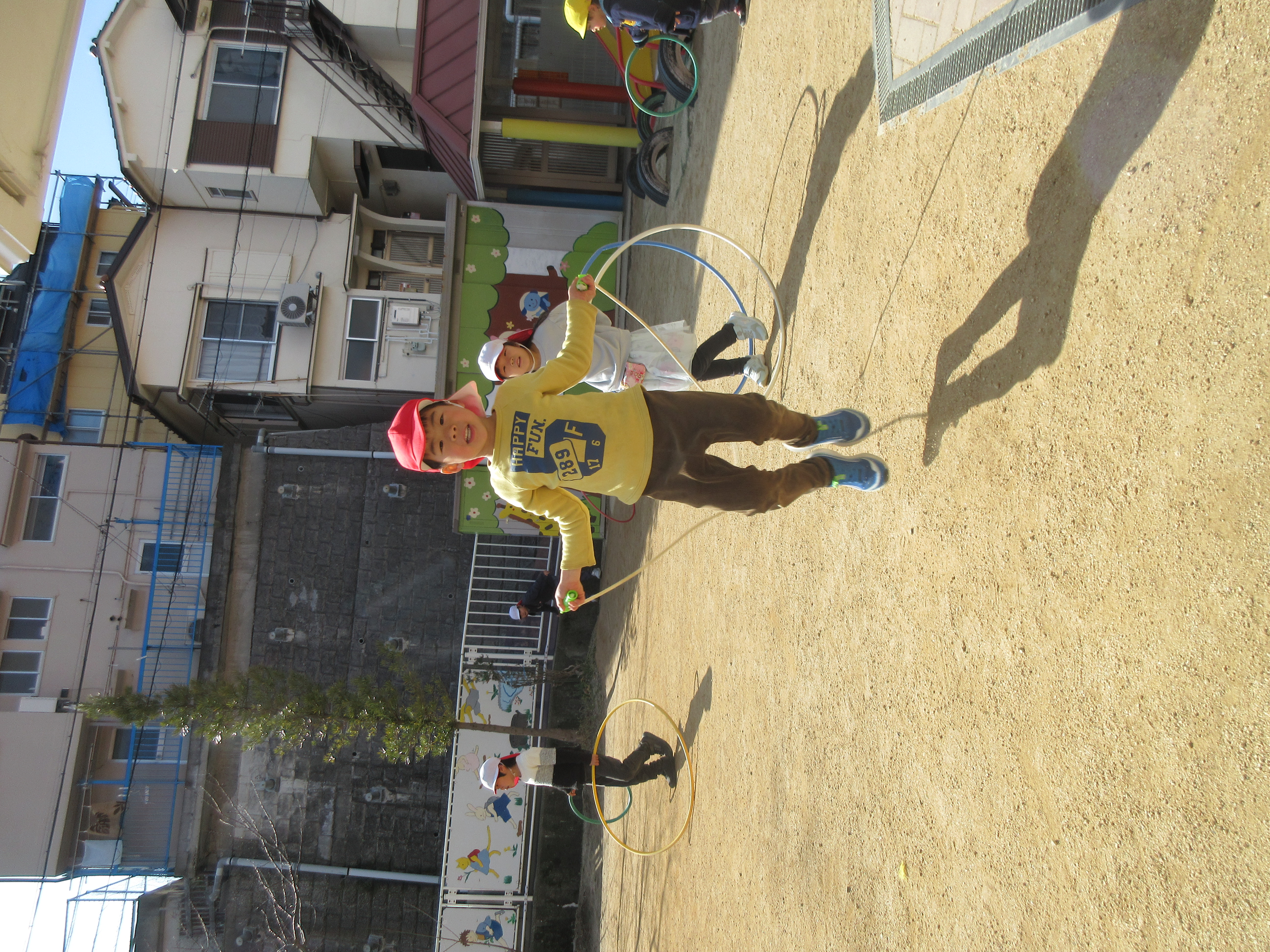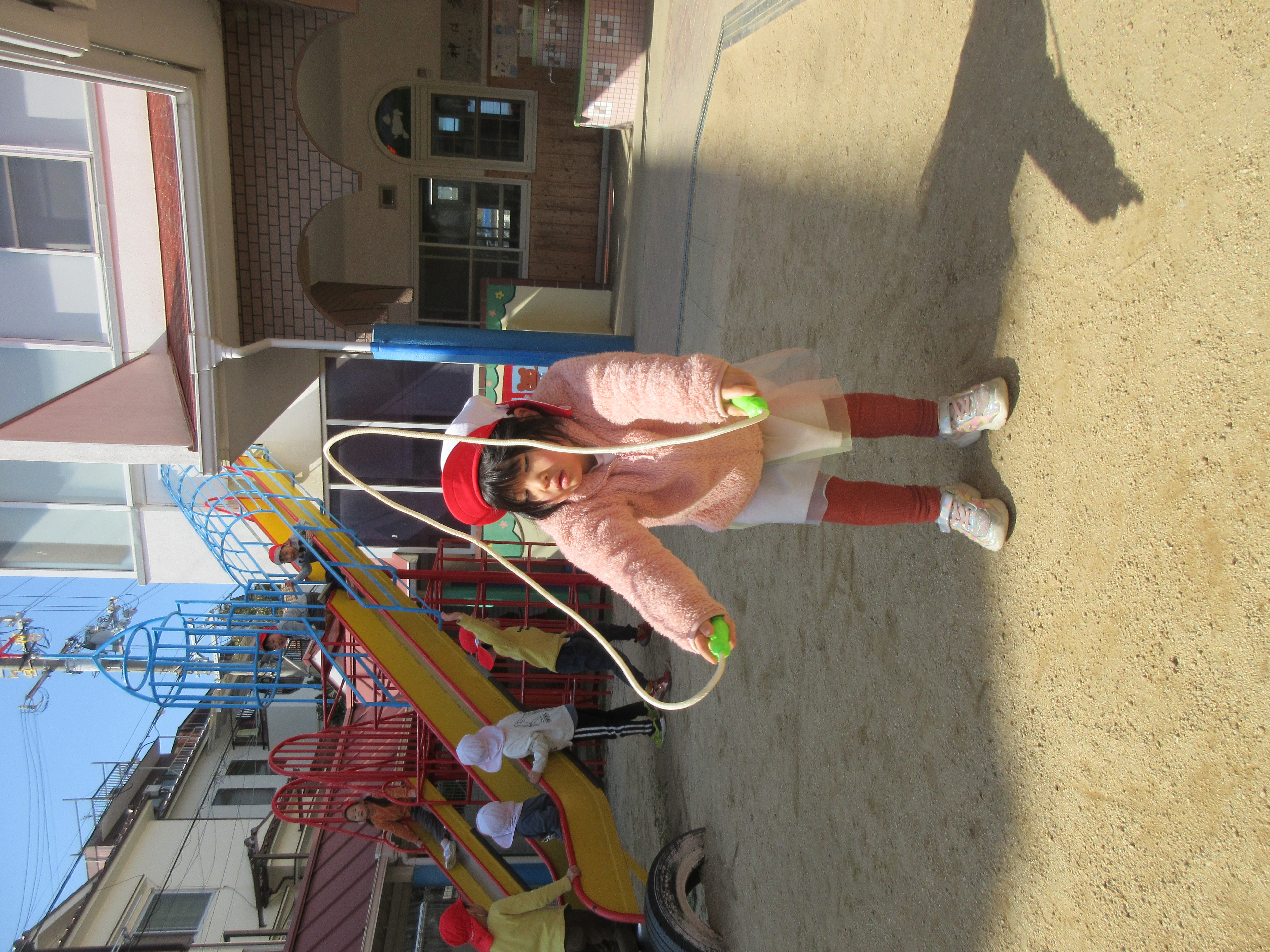 戸外遊びでは、自ら縄跳びの練習をするお友だちが増えました!