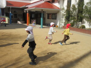 また鬼ごっこはゆり組さんに負けじと全力で走ったり、ひよこどんぐりさんたんぽぽさんには優しく声を掛けて遊んであげていたりと、寒さに負けず元気いっぱいの子どもたちです♪