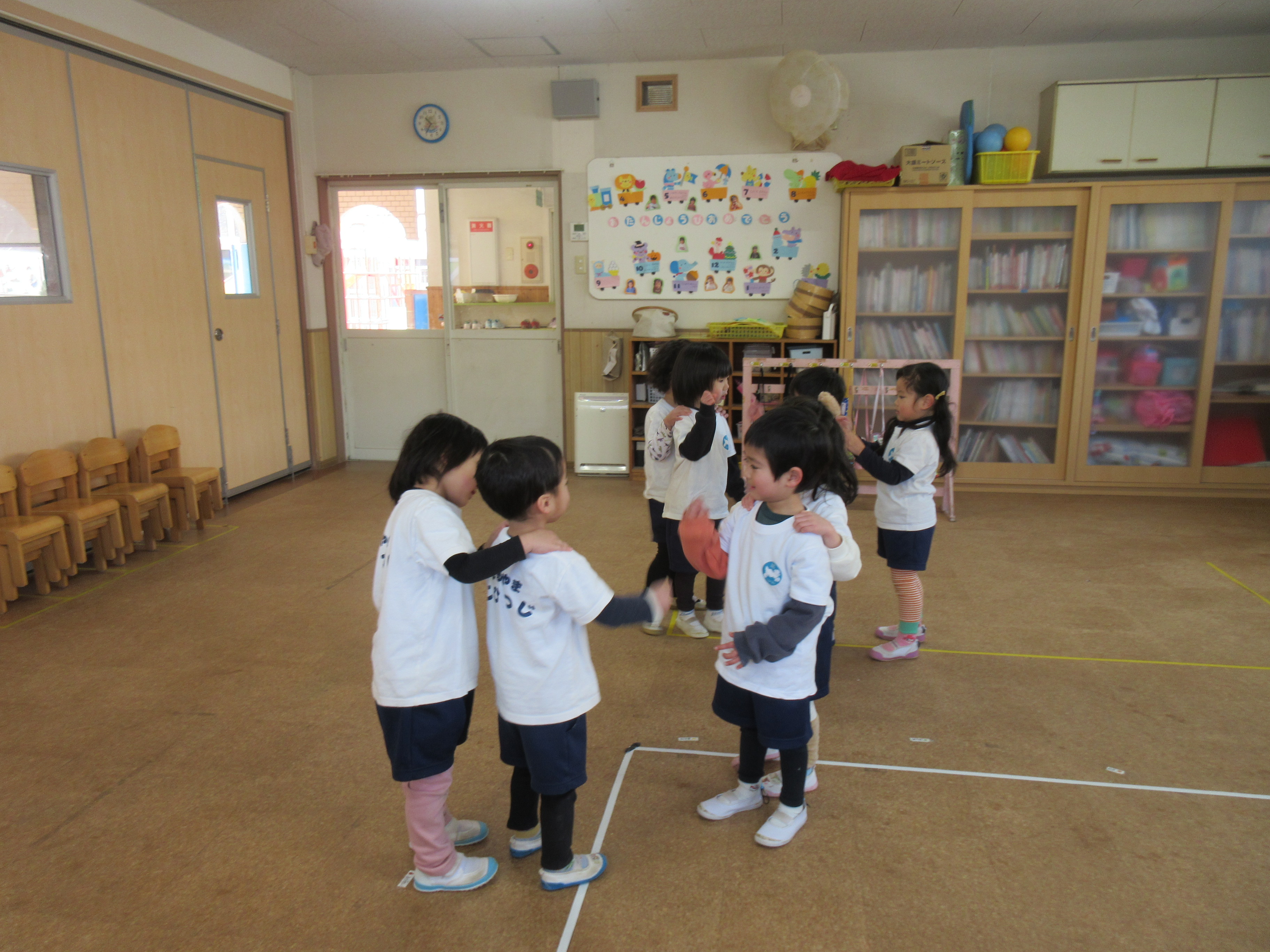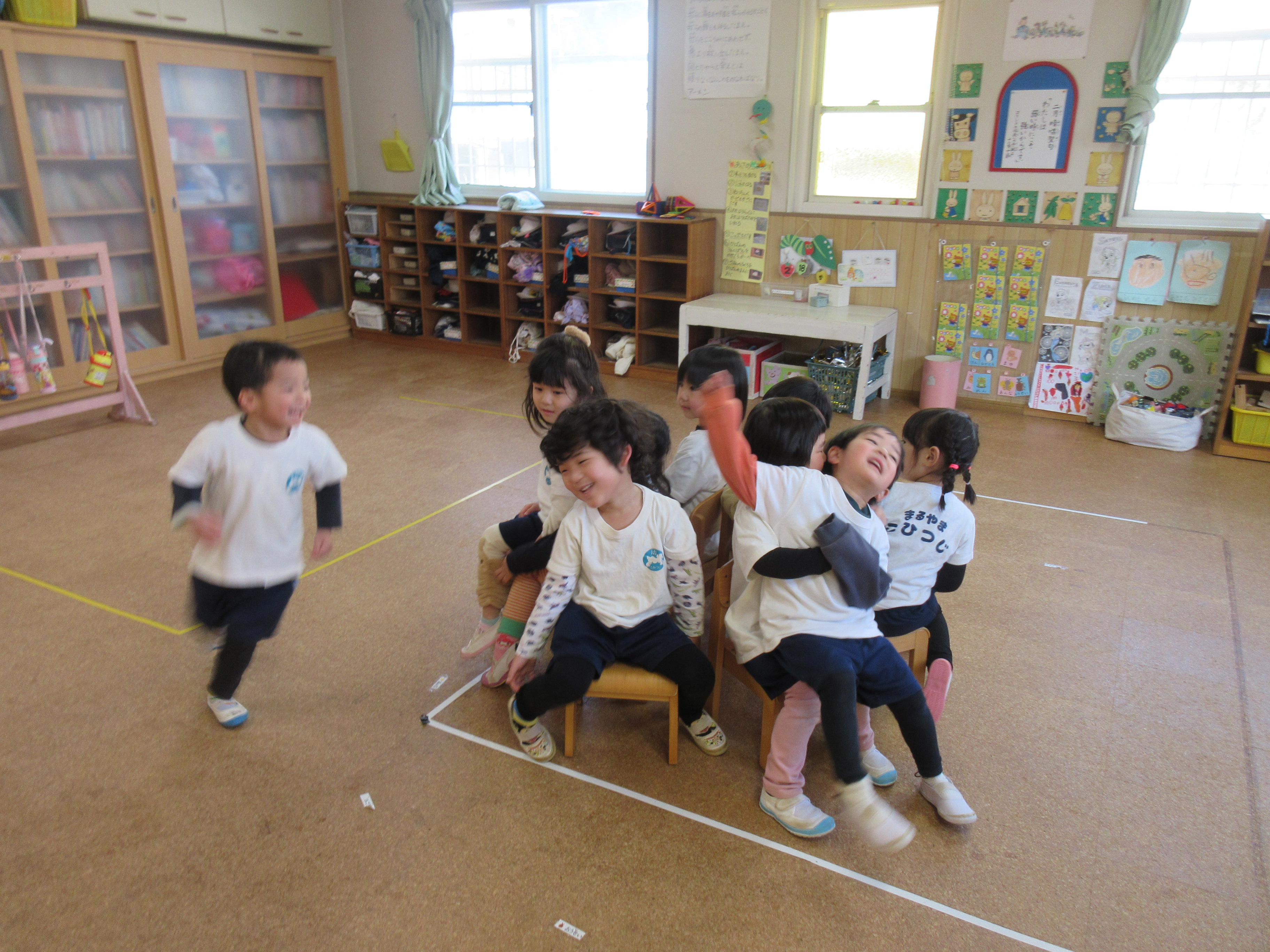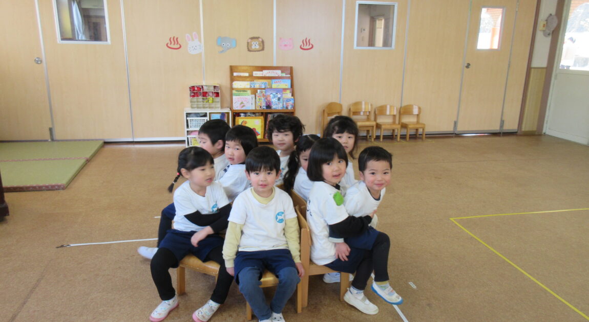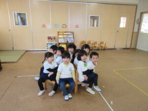 お部屋に戻ってからは子どもたちが好きなゲームをして遊びました(^^)/椅子取りゲームではみんなが座れるようにお膝の上にも座っていいよおいでーと優しい子どもたちです♡