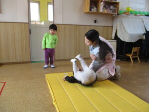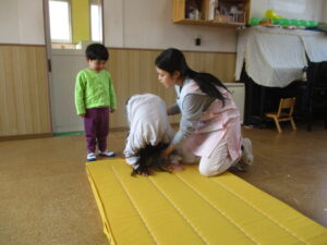 始めにお話をよく聞いてマットのお家からお家までお引越しをしました。その後はサーキット遊びをして子どもたちは体をたくさん動かせたと思います!!来月にある最後の一回を大西先生とみんなで楽しみたいと思います💪