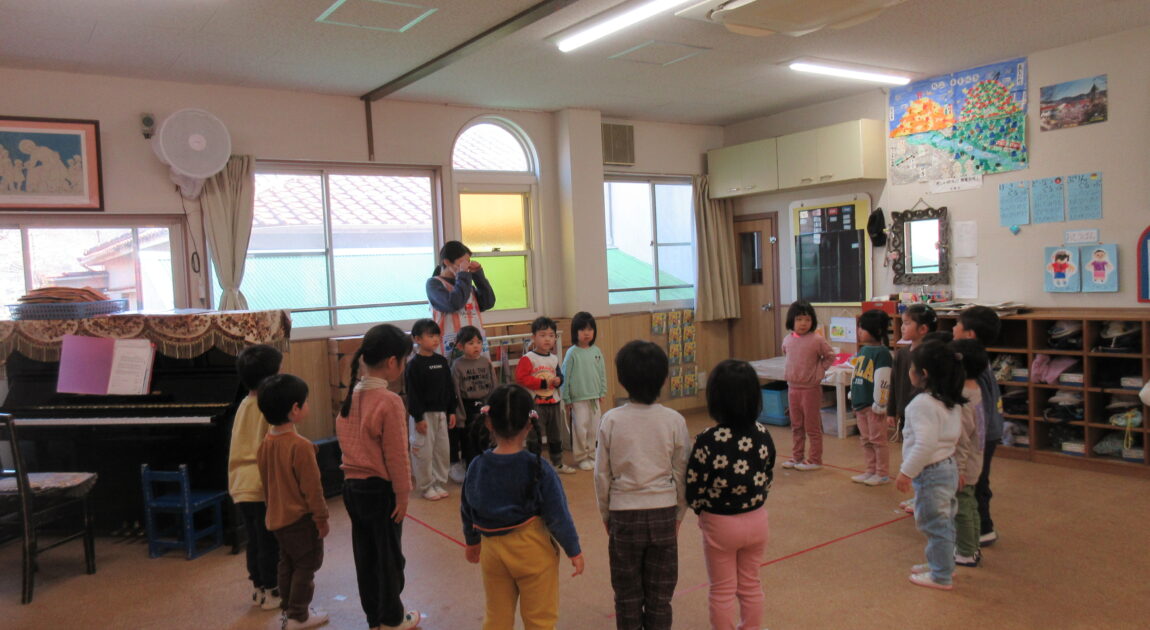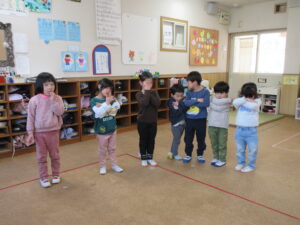 終園まで残りわずかとなりました、、、「もうすぐすみれさんだね」と進級することを楽しみにしている子どもたちです(^^)/今日はすみれさんと一緒にお集まりをしたり、ゲームをして遊びました♪