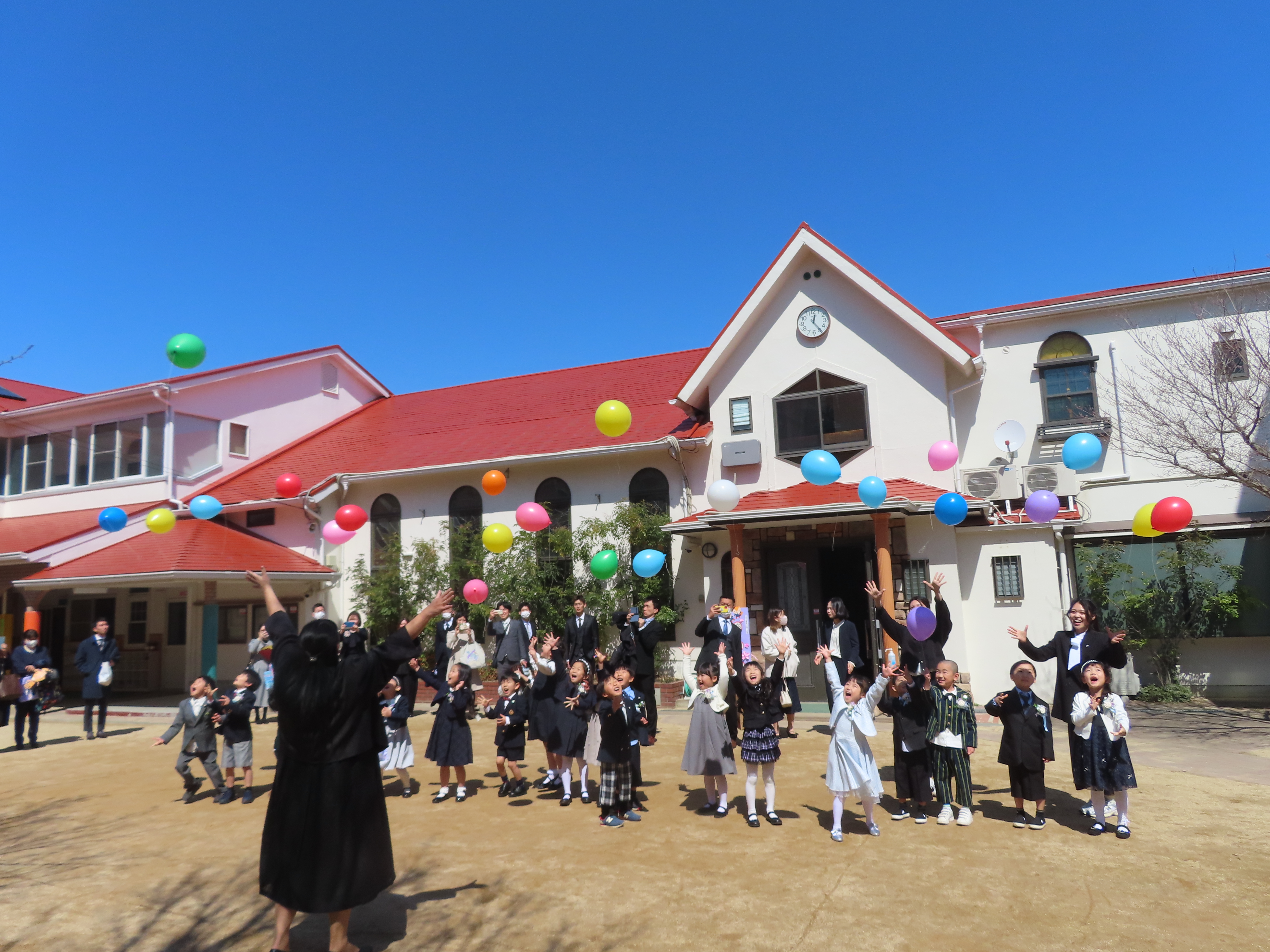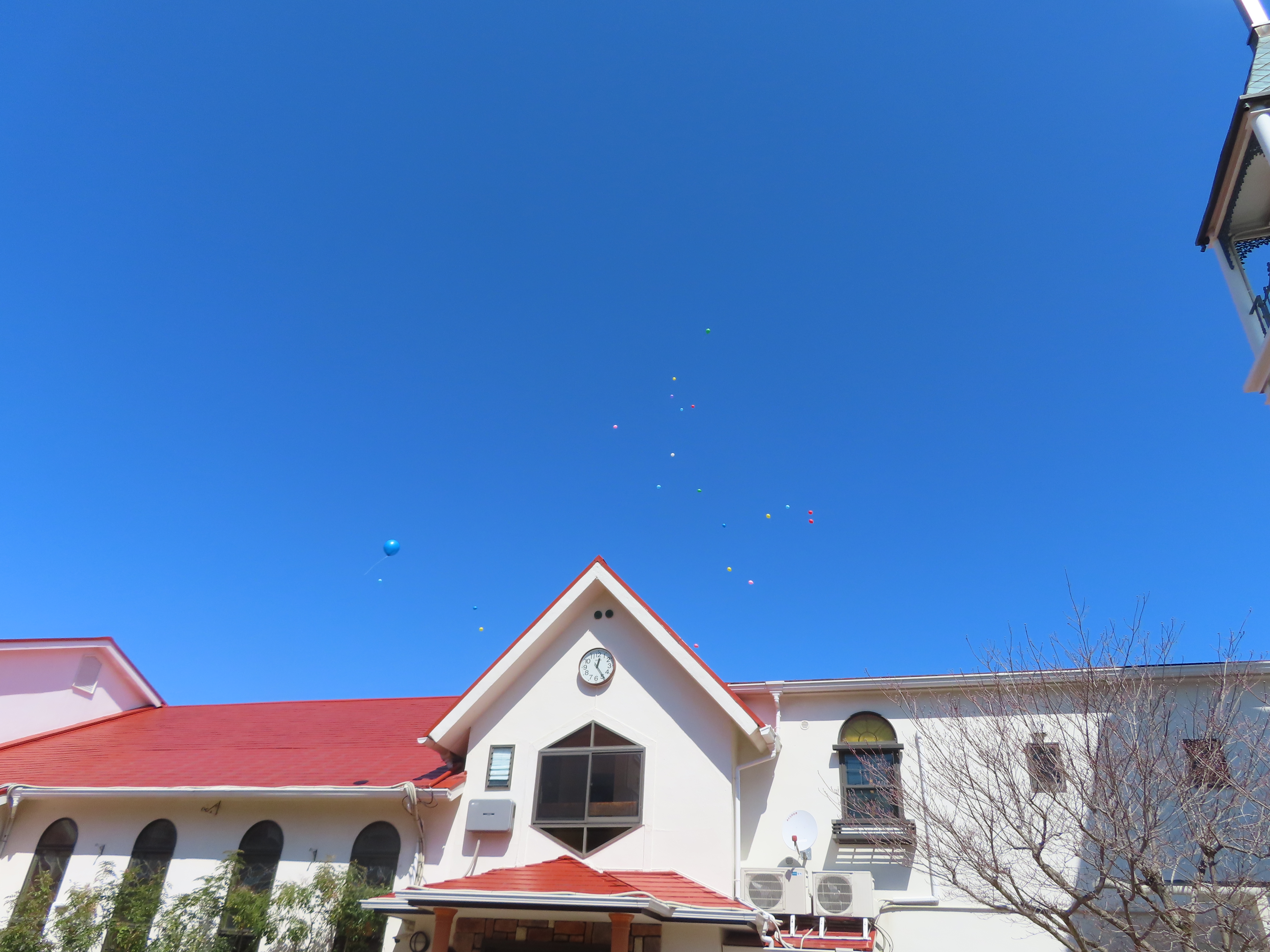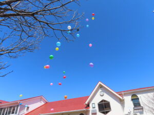 最後は、園庭で風船飛ばし