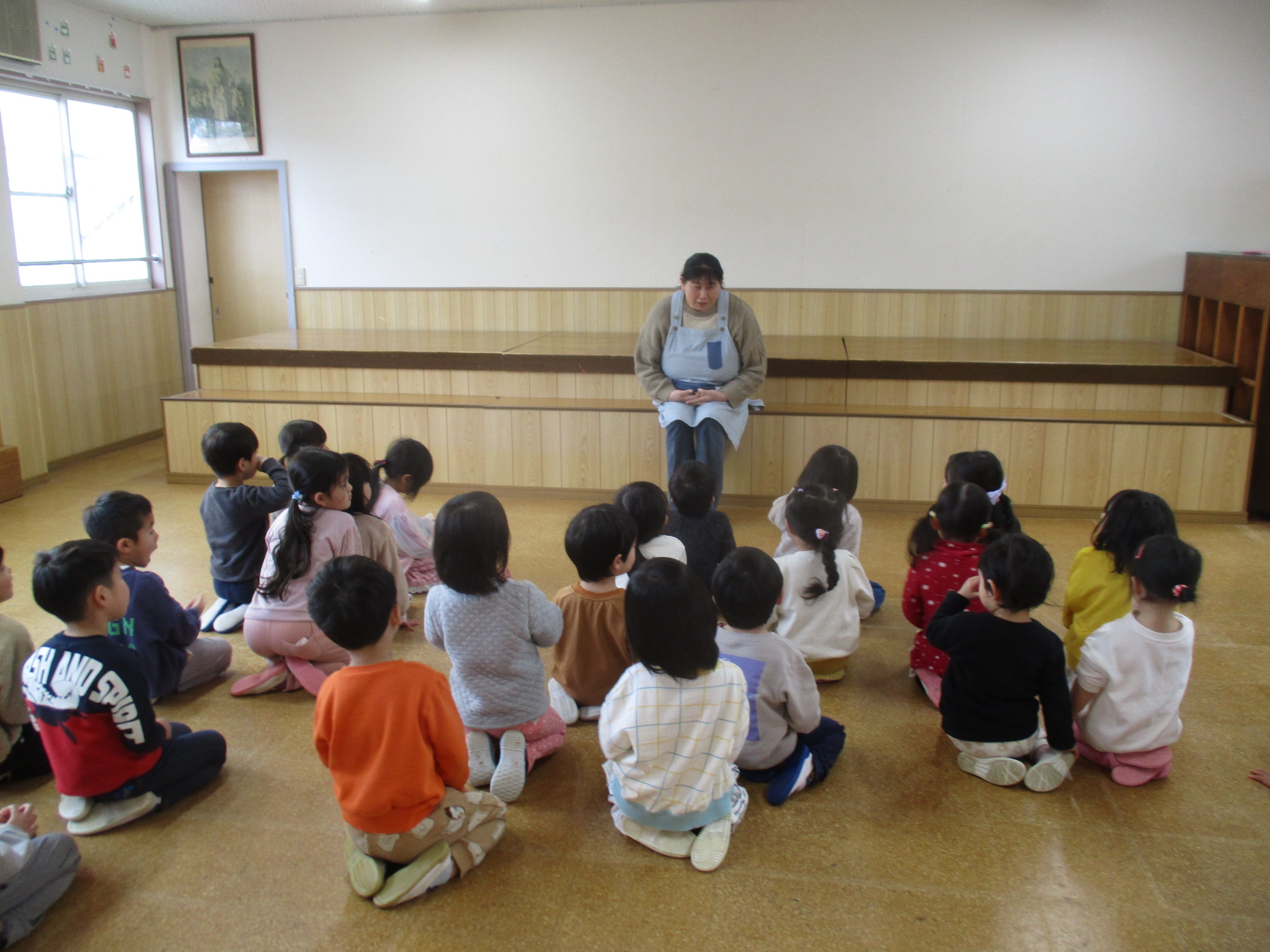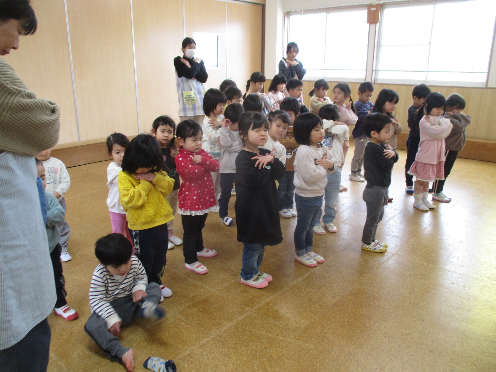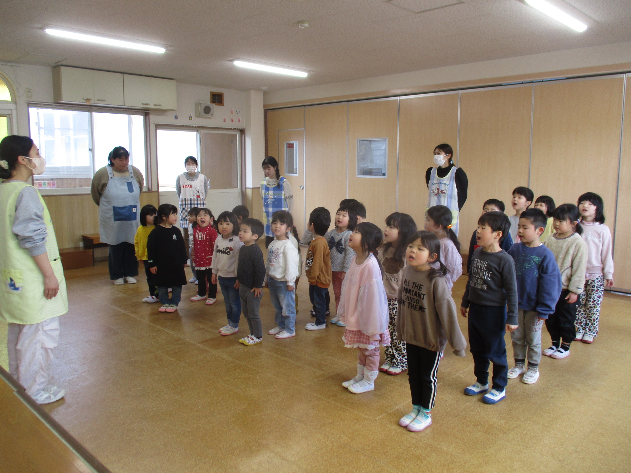 ゆり組さんがいないことに不思議そうにしながらも終園式をしました。1年を振り返りをして新しいクラスの発表、お部屋に行きました。4月から新しい先生・場所を楽しみにしている様子でした。