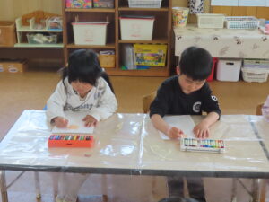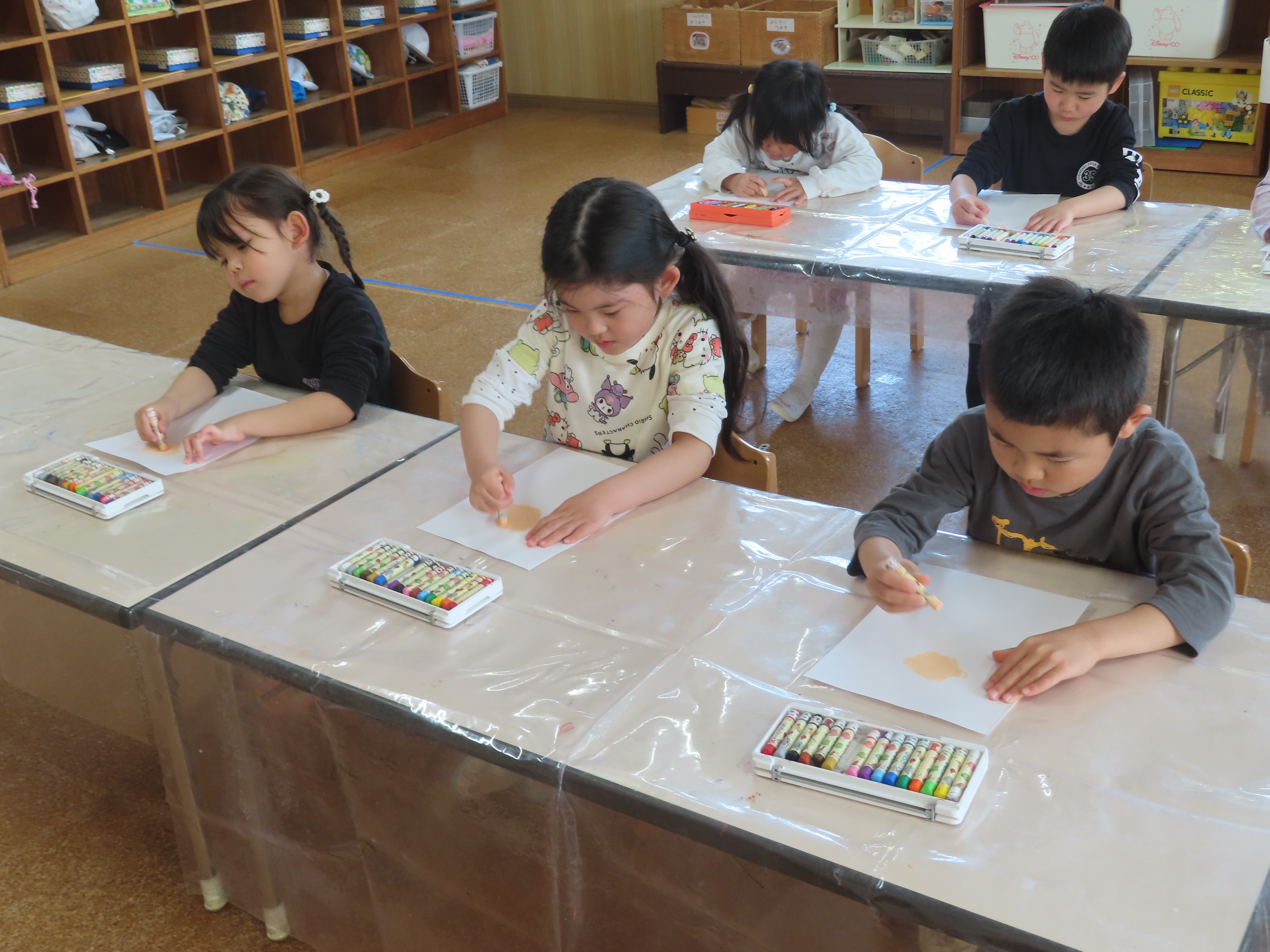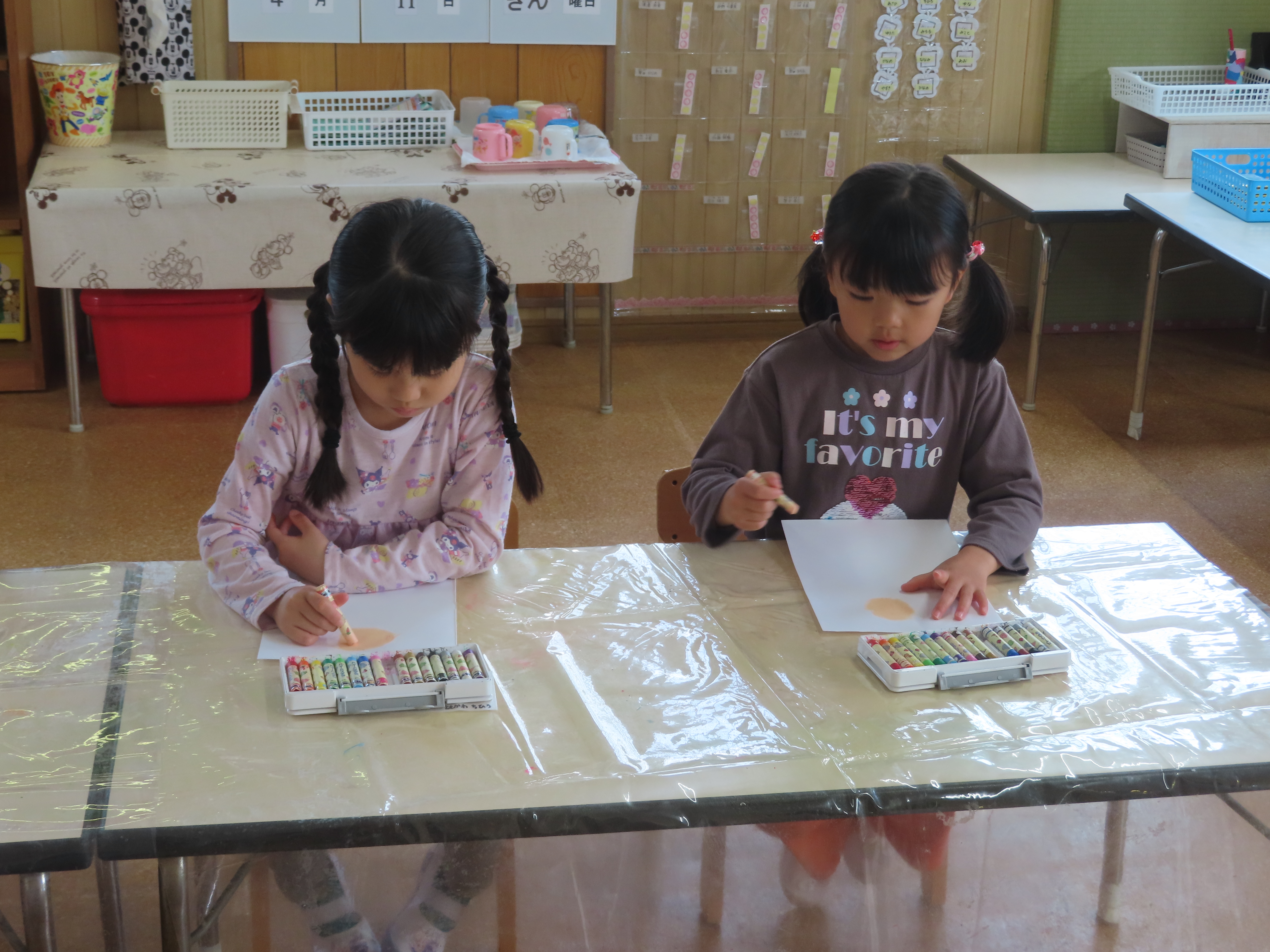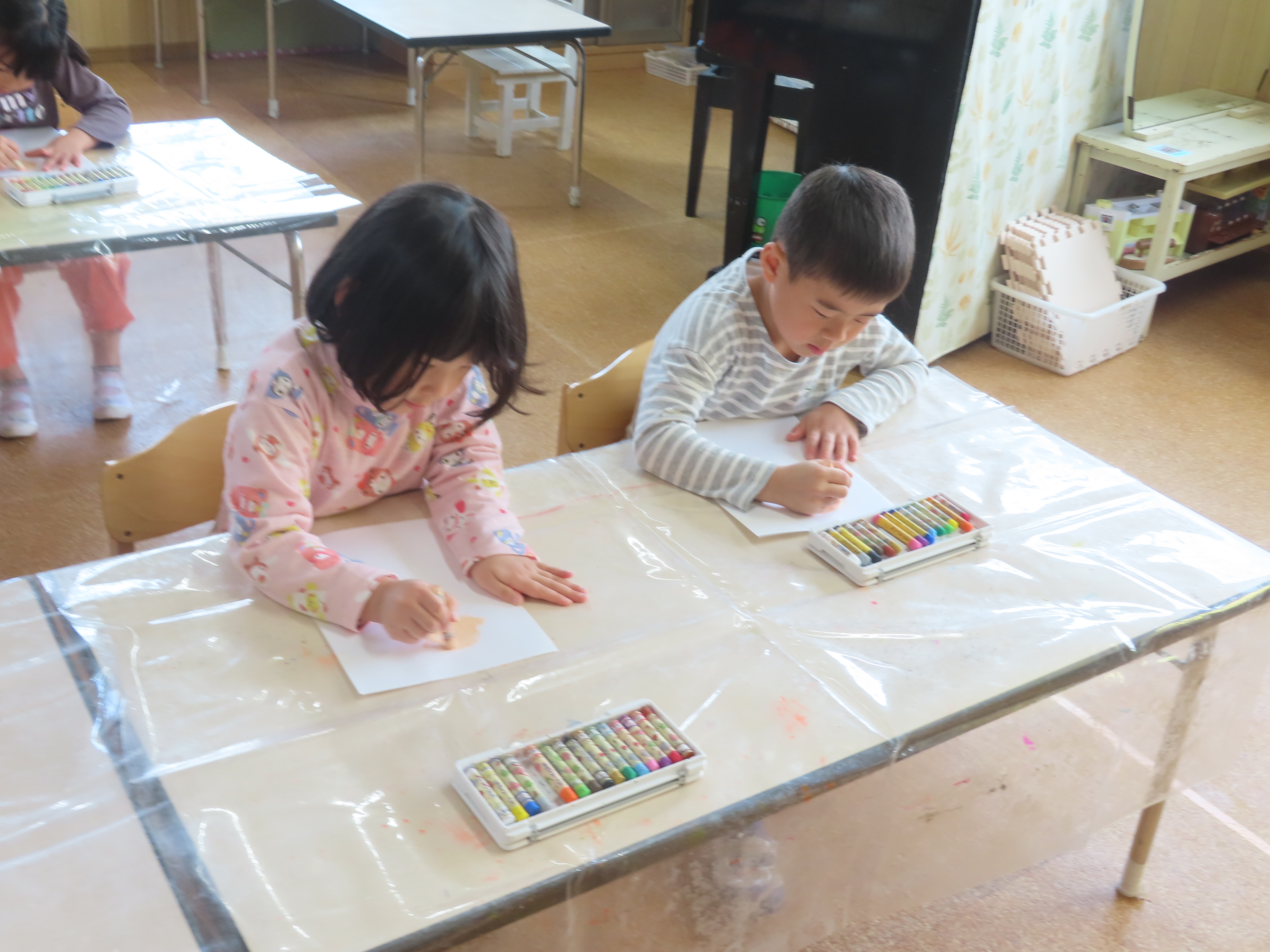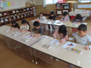 今日の約束は、「先生とひとつづつ書いていこうね。」でした。みんなお約束を守って順番に一緒に描くことができました。