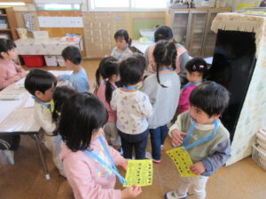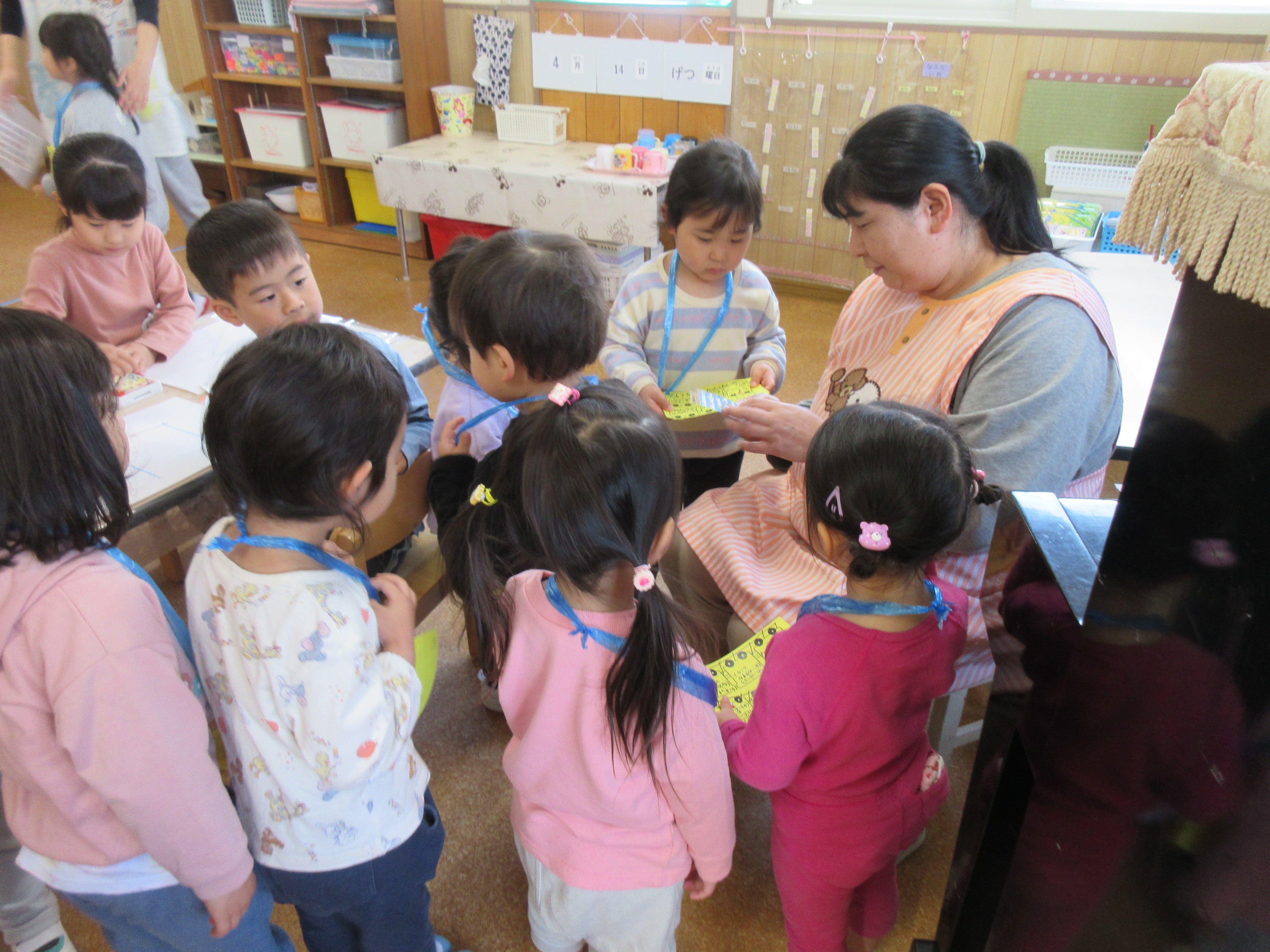 先日は探検シートを持って幼稚園探検に出かけました♪お部屋の確認をして、そのクラスの先生にシールを張ってもらい嬉しそうな子どもたちでした(^^)/