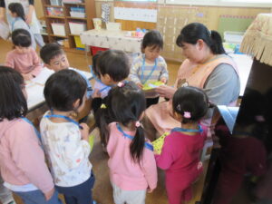 今日はお誕生日会がありました♪4月生まれのお友だちは2人でした!ハッピーバースデーのお歌を歌ったり、先生からのお楽しみを見たり楽しい時間を過ごしました(^^♪