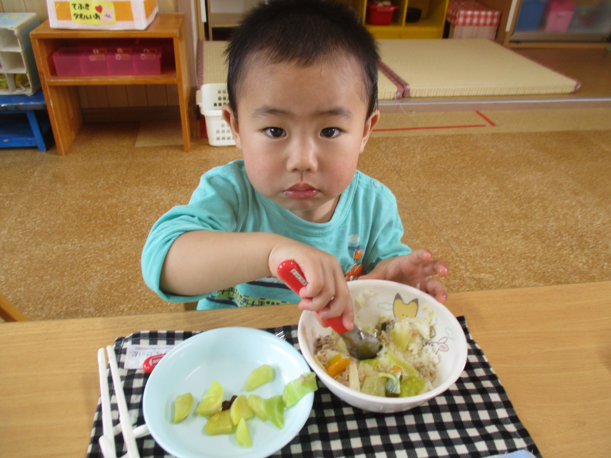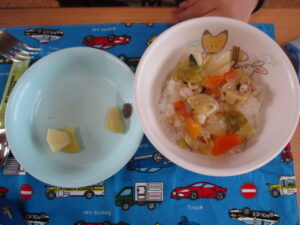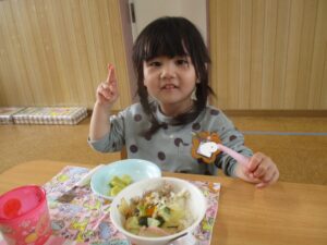 今日の給食は、中華丼と重ね煮でした!毎日みんなと一緒に楽しく給食を食べています。おかわりをするお友だちも増え、とっても嬉しいです✨