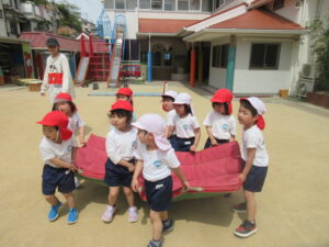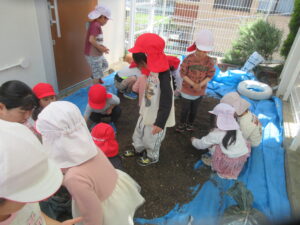 だんだんと暖かくなり、汗をかきながら楽しそうにお外遊びをしている子どもたちです。今日は年長組さんと野菜を育てる準備をしました!土を出して明日は種を植えます🌱