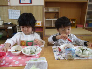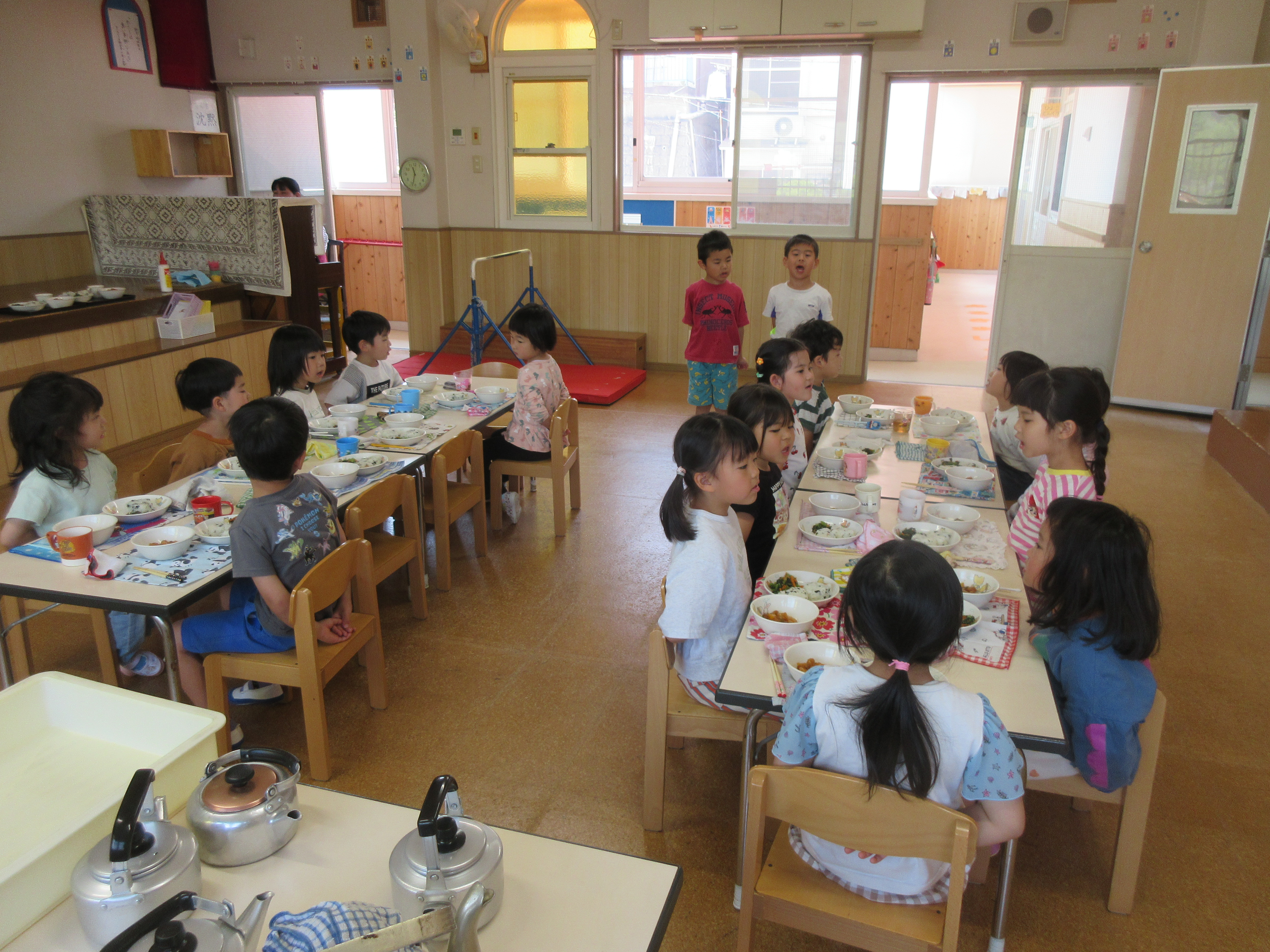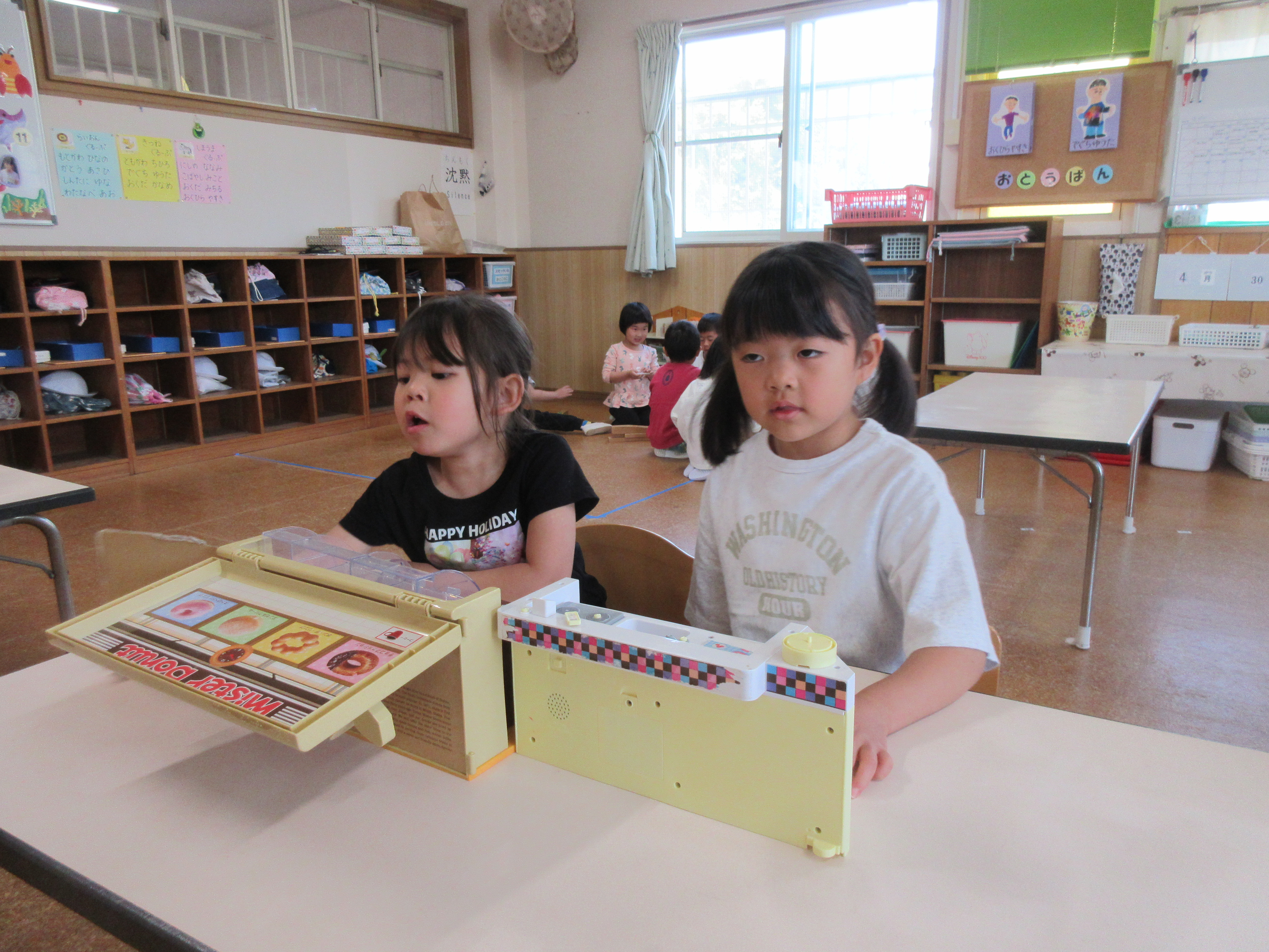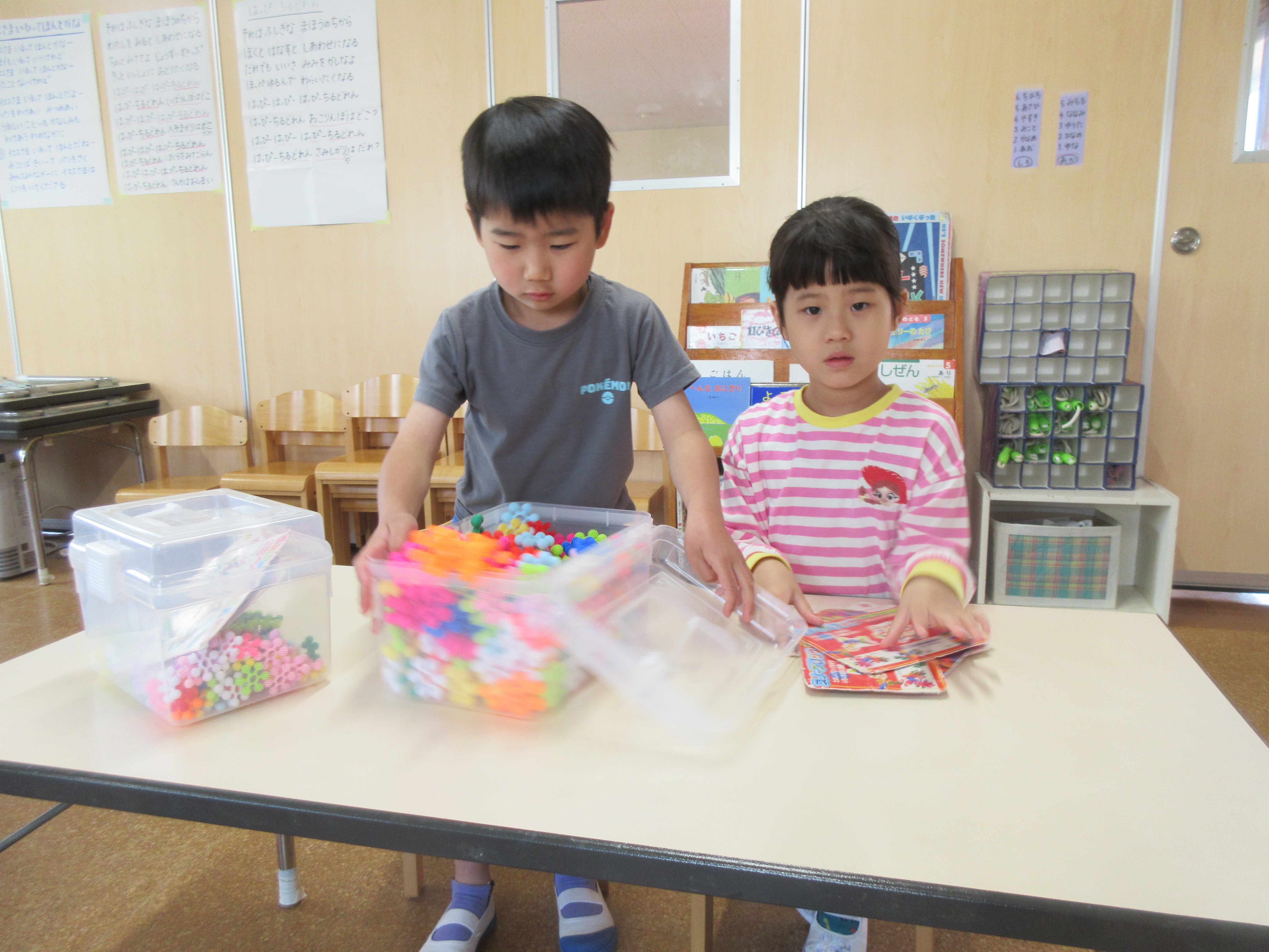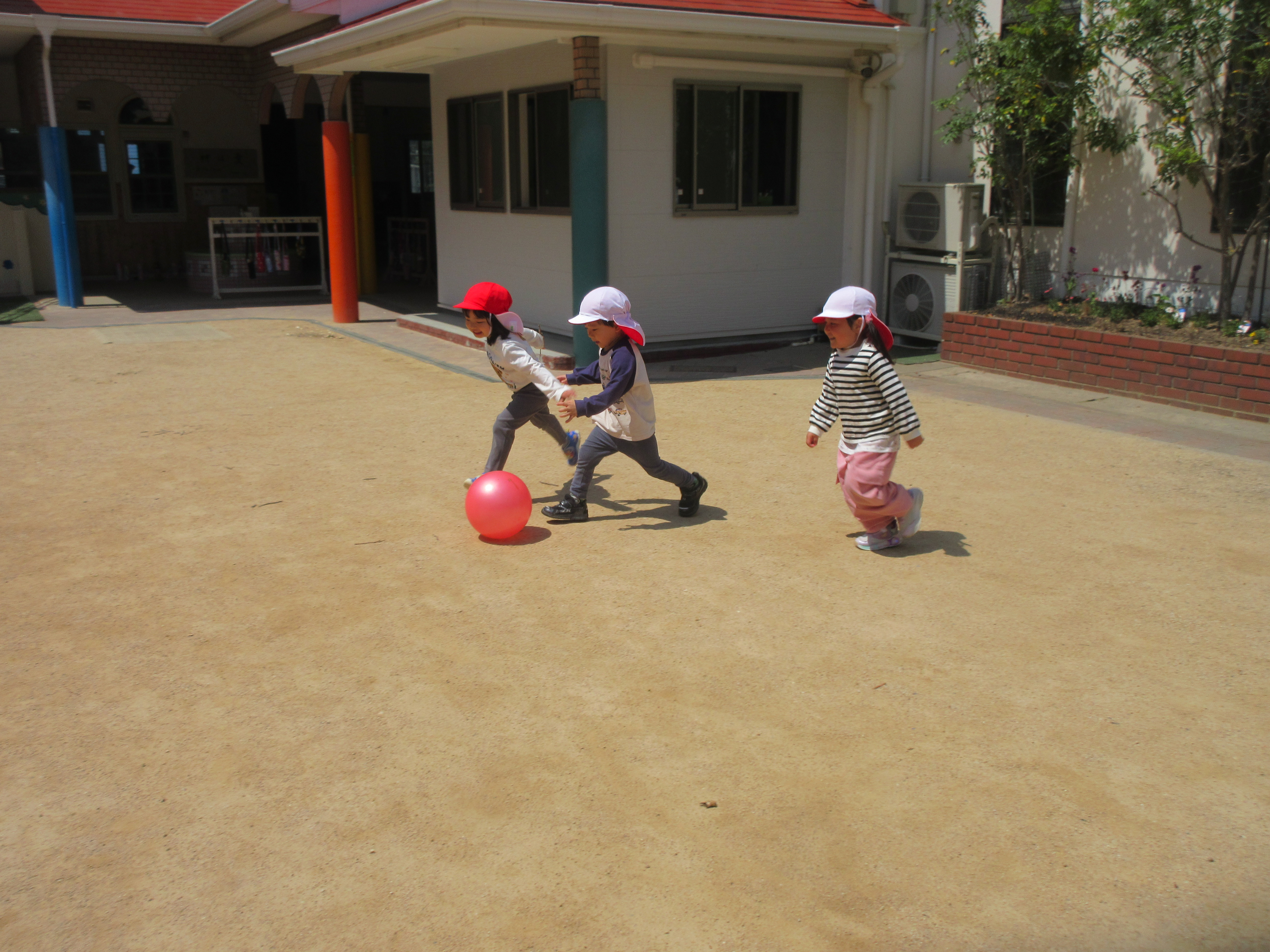 今日は今年度初めての英語遊びがありました。ABCや色、動物などを声に出している子どもたち!