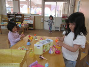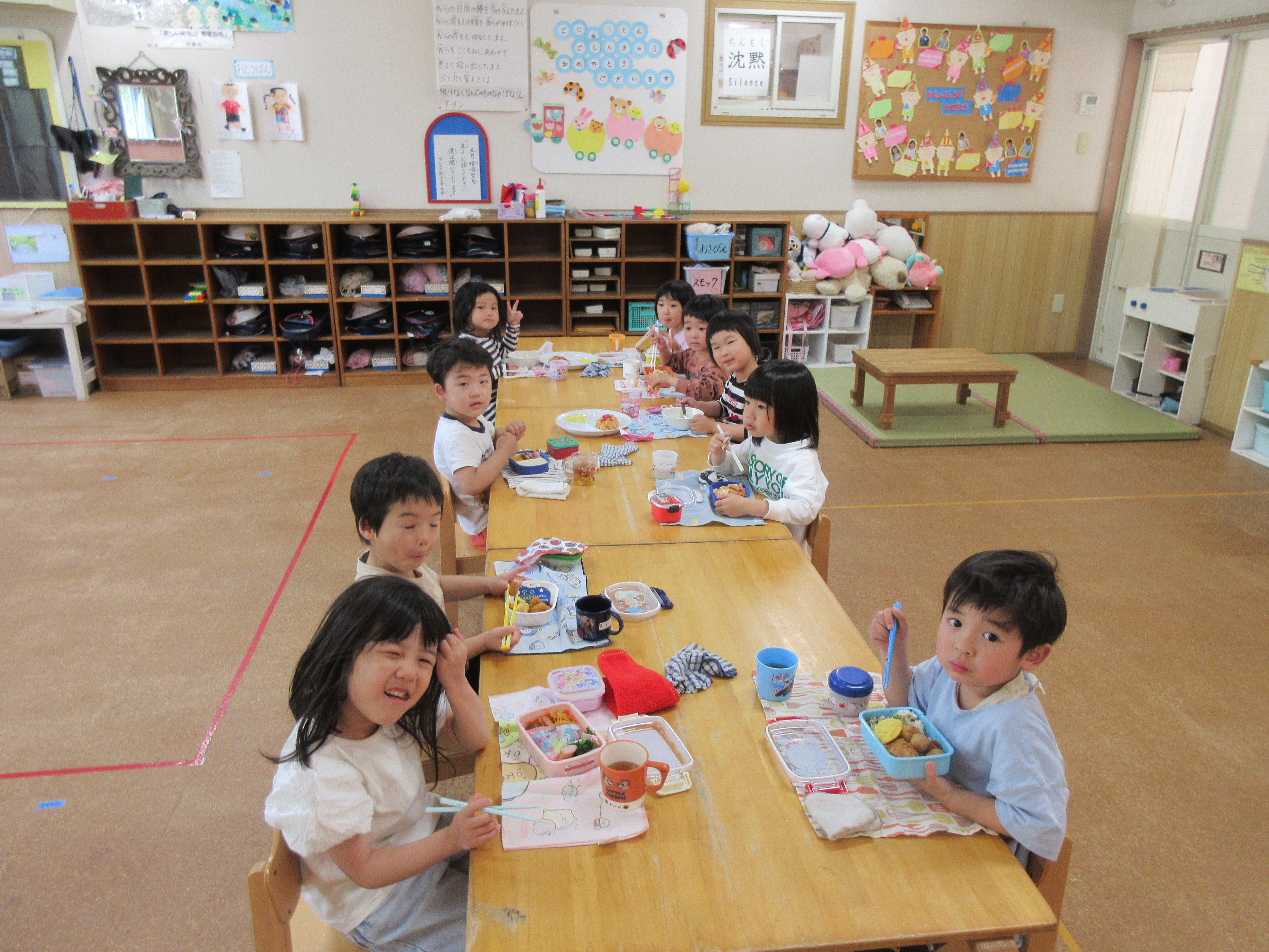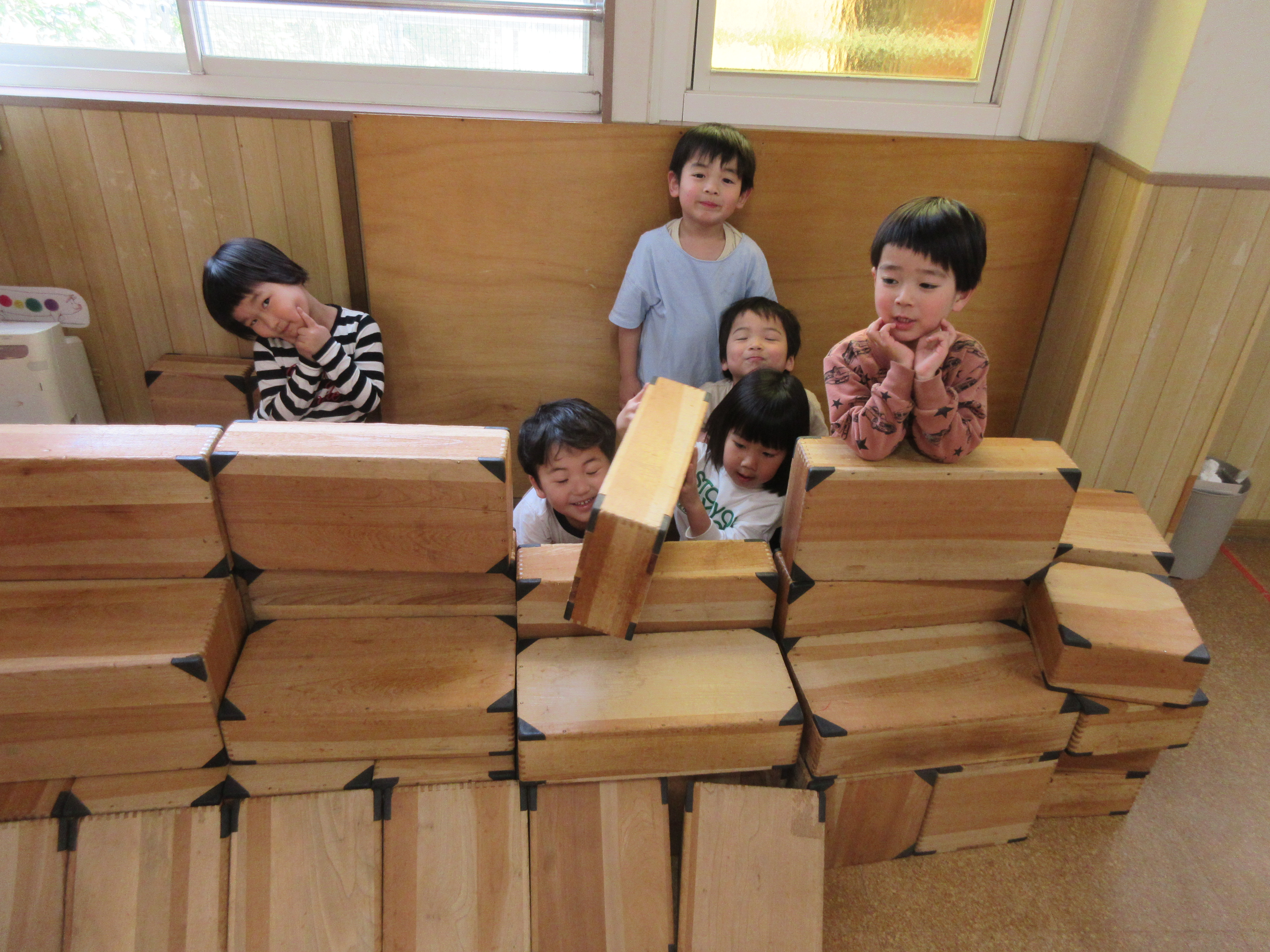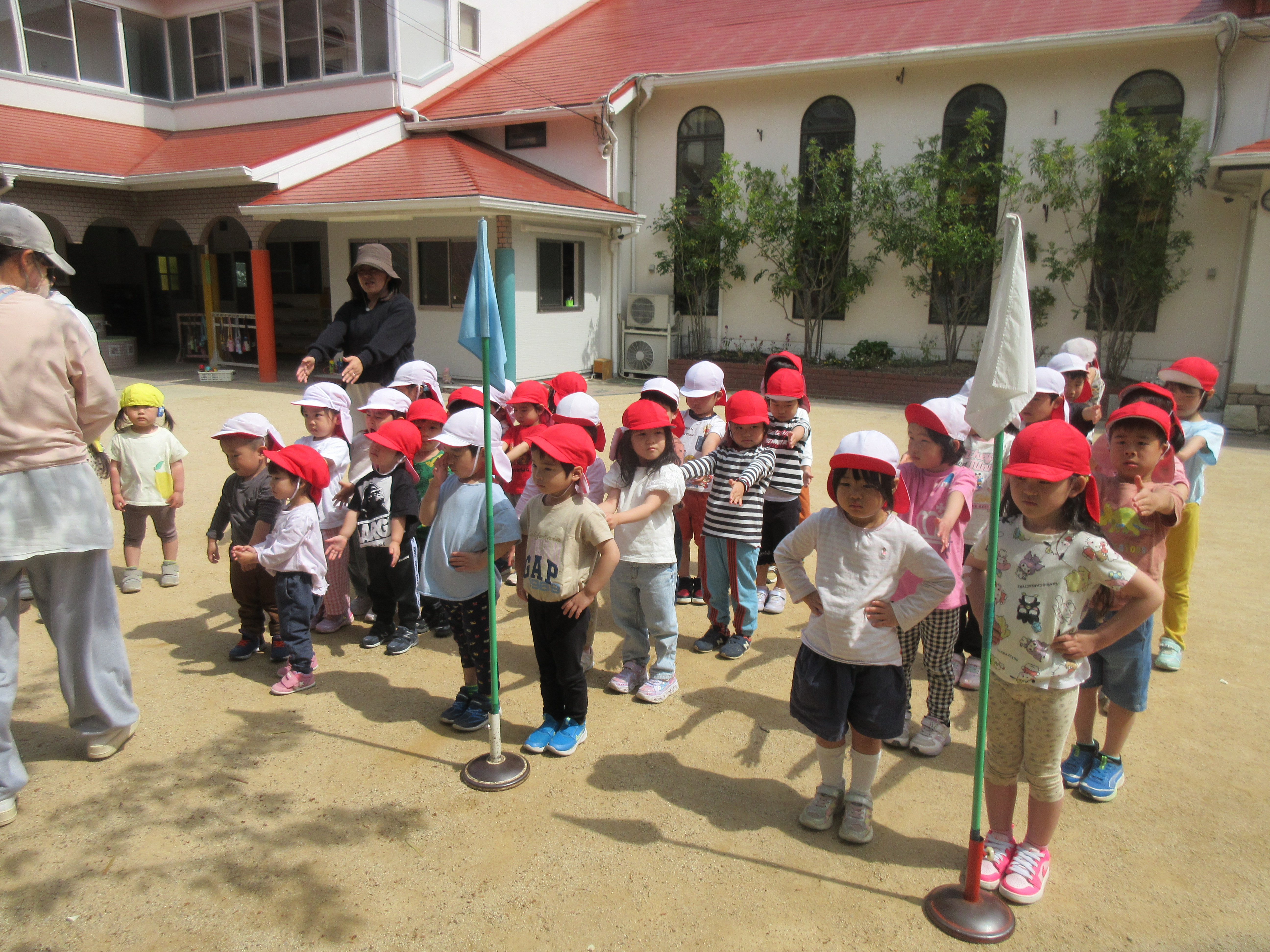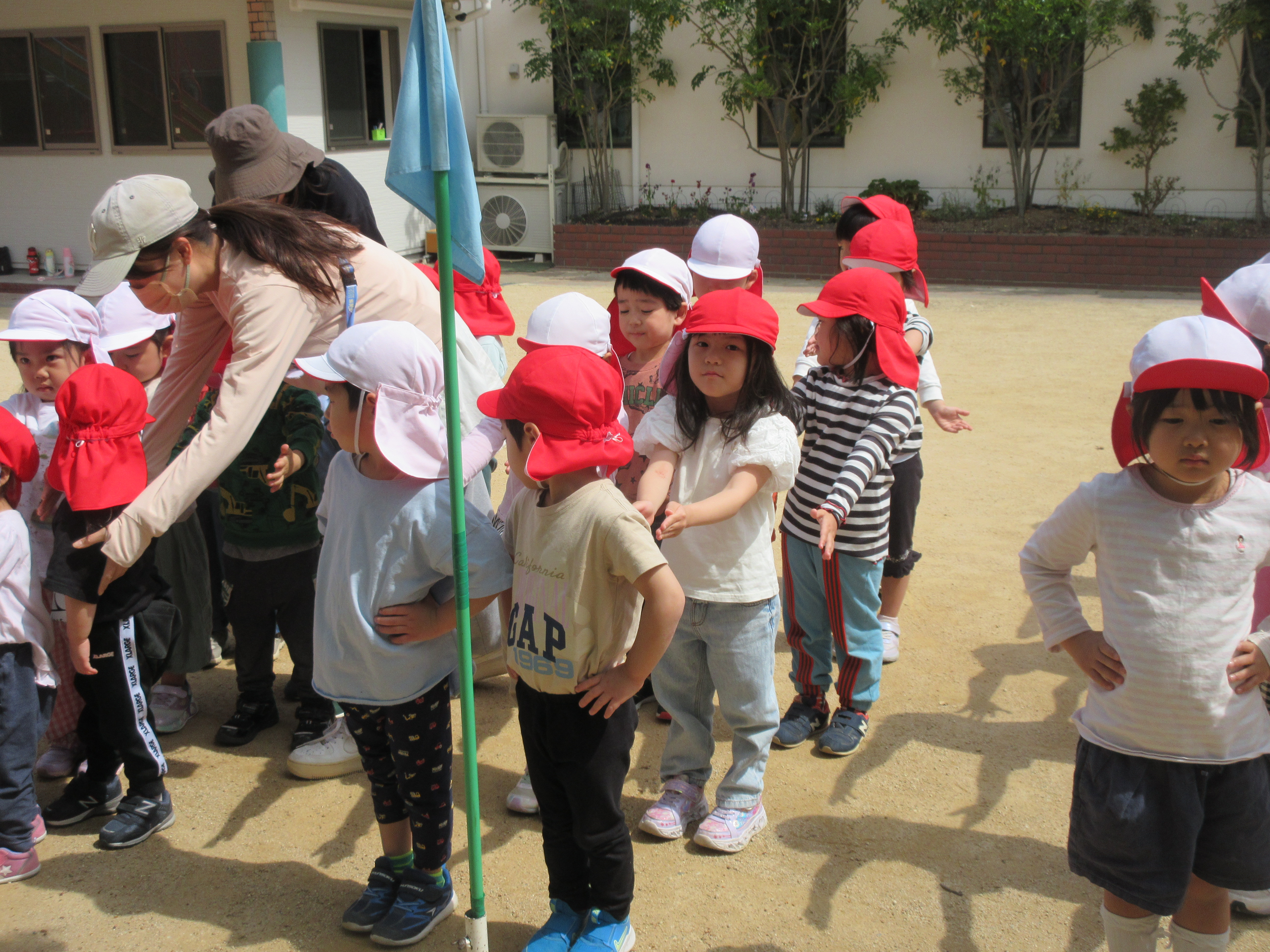 今日から園庭でのお集まりを始めました。お外でもお部屋でもあそびました。