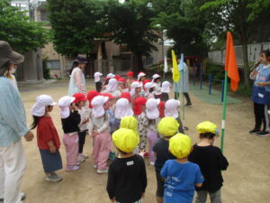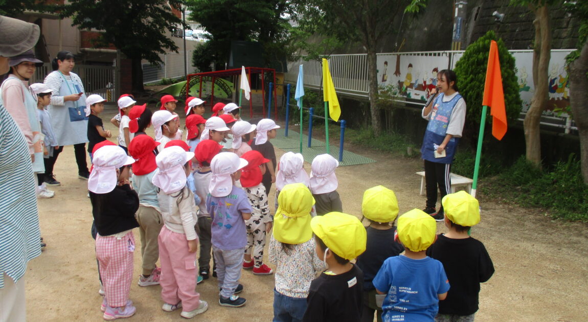 今日はお天気に恵まれ、在園児さんと一緒に園庭でお集まりをしました!