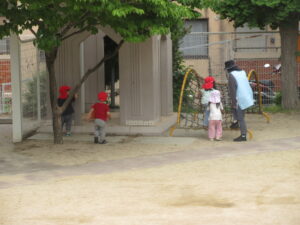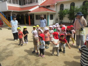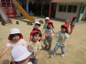 今日もお庭のお集まりをしました。その後は「1・2」の大きな声で行進の練習をしました!お隣のお友だちと列をそろえながら進むのに気を付けながらする子どもたちでした♡